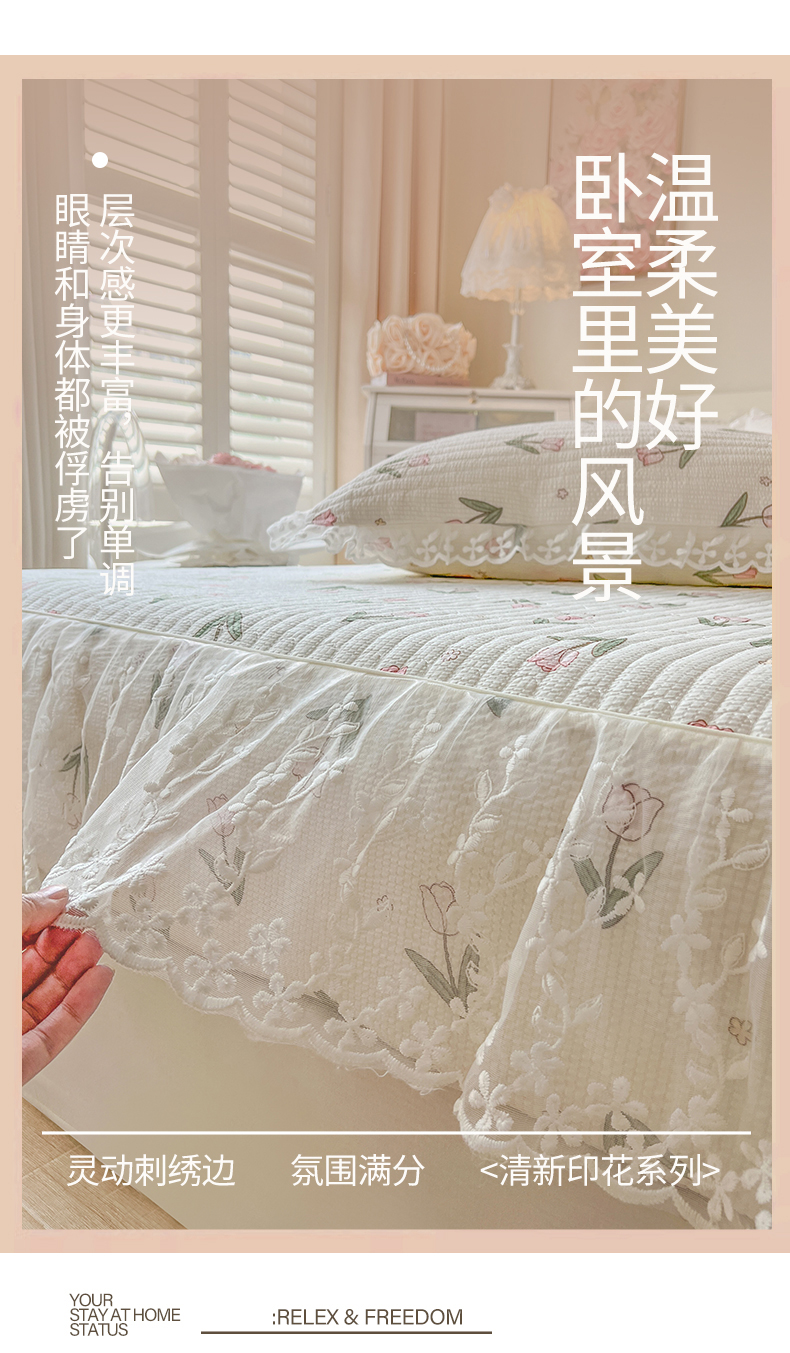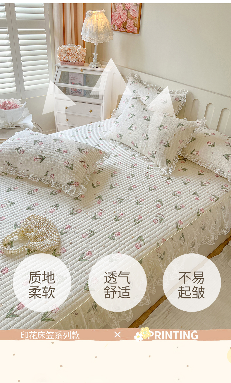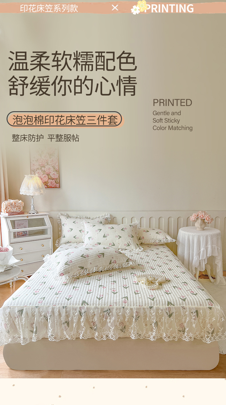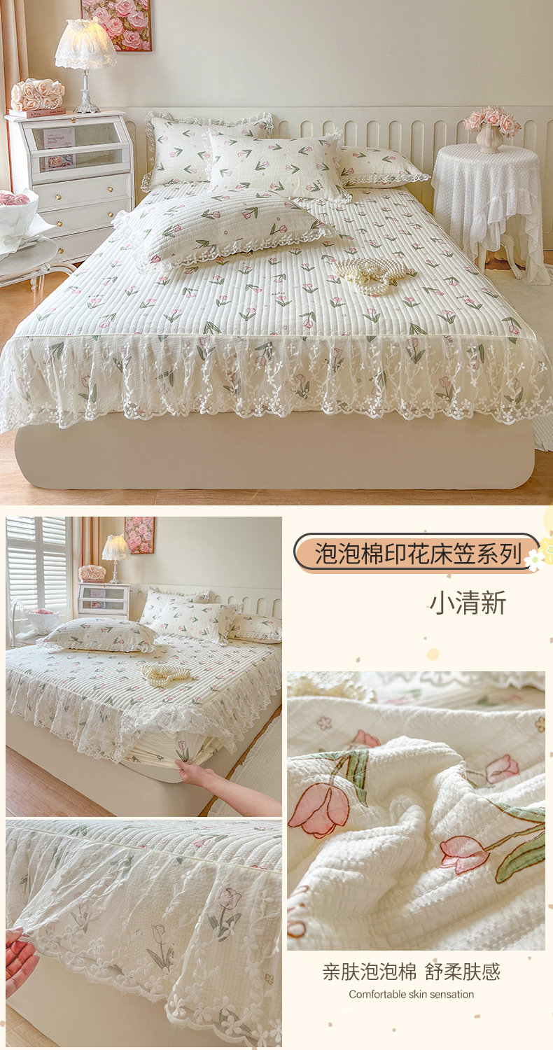 麒豆豆 2025新款泡泡棉印花床笠 小清新