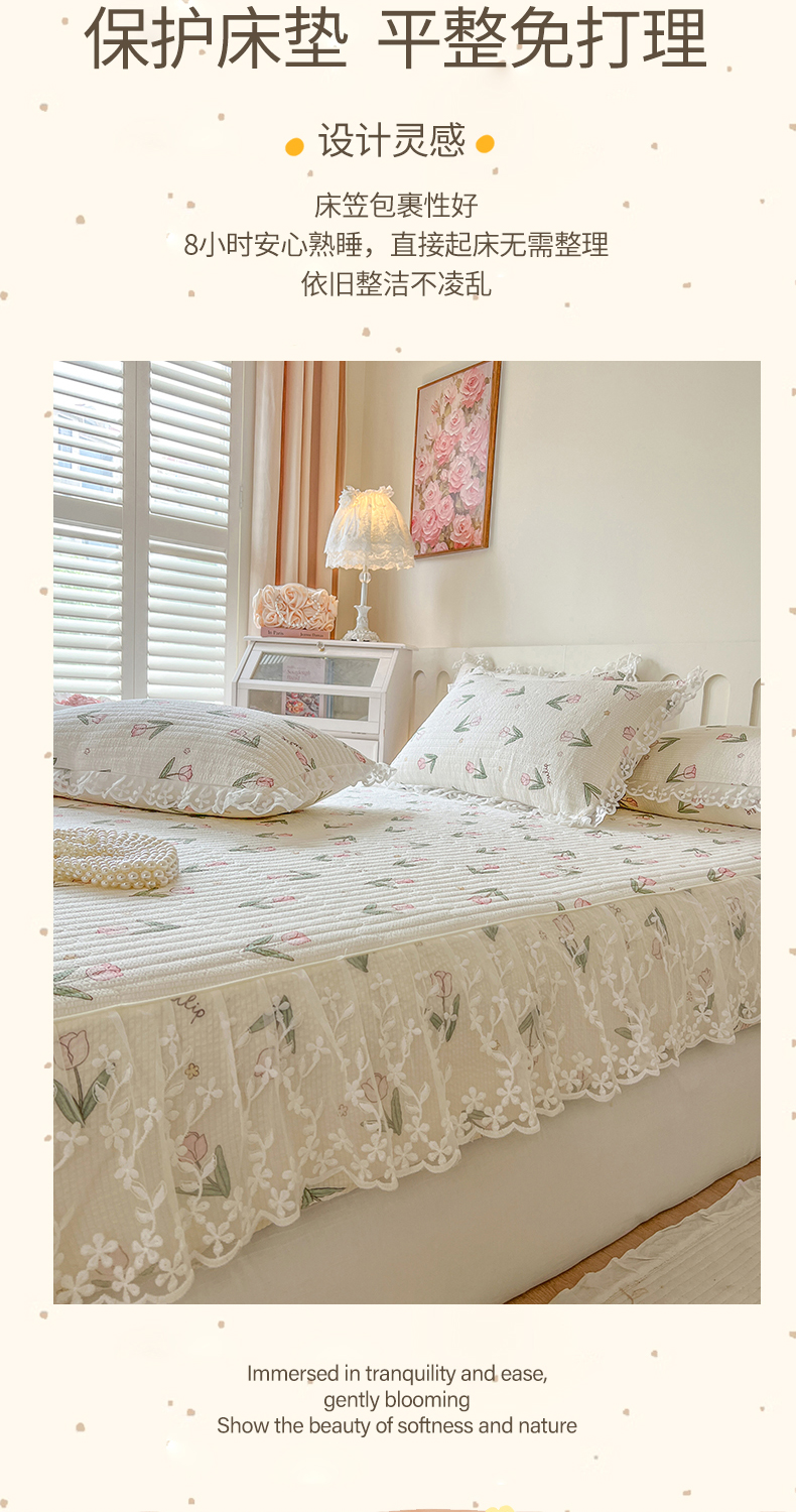 (总)麒豆豆 2025新款全棉蕾丝边床裙款床笠-晨暮花间,晨暮花间-绯红,晨暮花间-粉色,晨暮花间-麦绿,晨暮花间-米色,晨暮花间-浅紫,晨暮花间-雾蓝