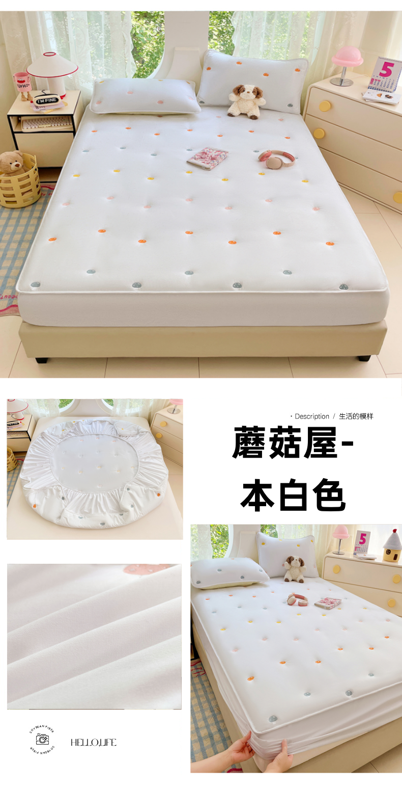 • 91家纺网 家纺一手货源 找家纺 梦舒羽 2025新款水洗棉刺绣夹棉床笠床笠防滑床罩床垫保护套榻榻米宿舍三件套 蘑菇屋-藏青蓝