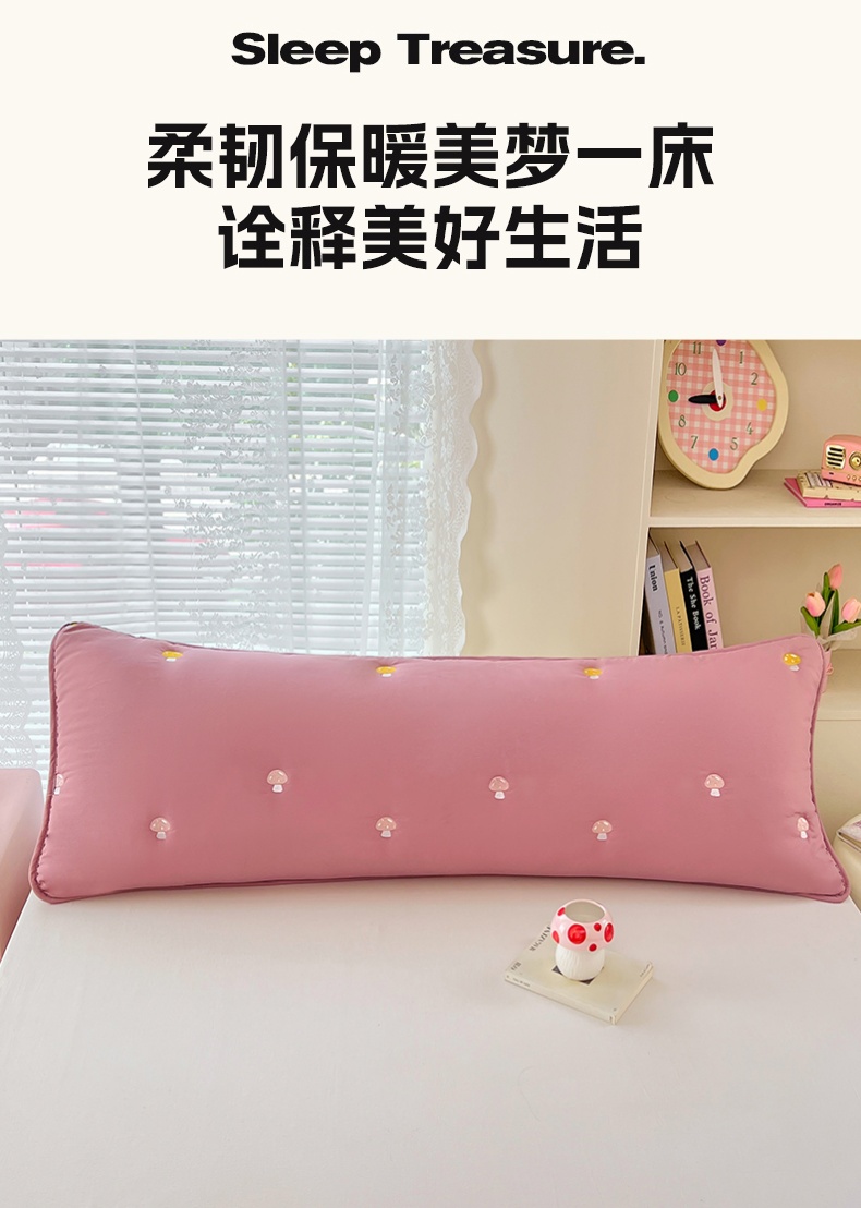 商品名称:圣比熊 2025新款水洗棉刺绣双人夹棉枕套加厚学生情侣1.5m枕头套1.8米枕芯套 蘑菇屋-玫瑰红
