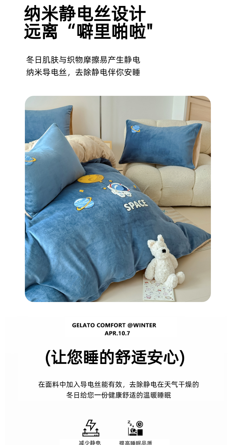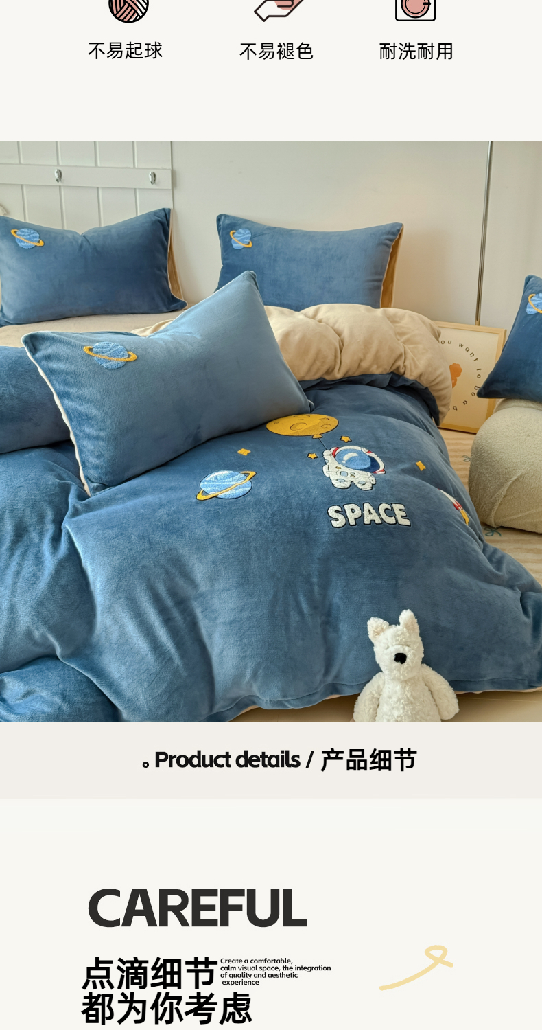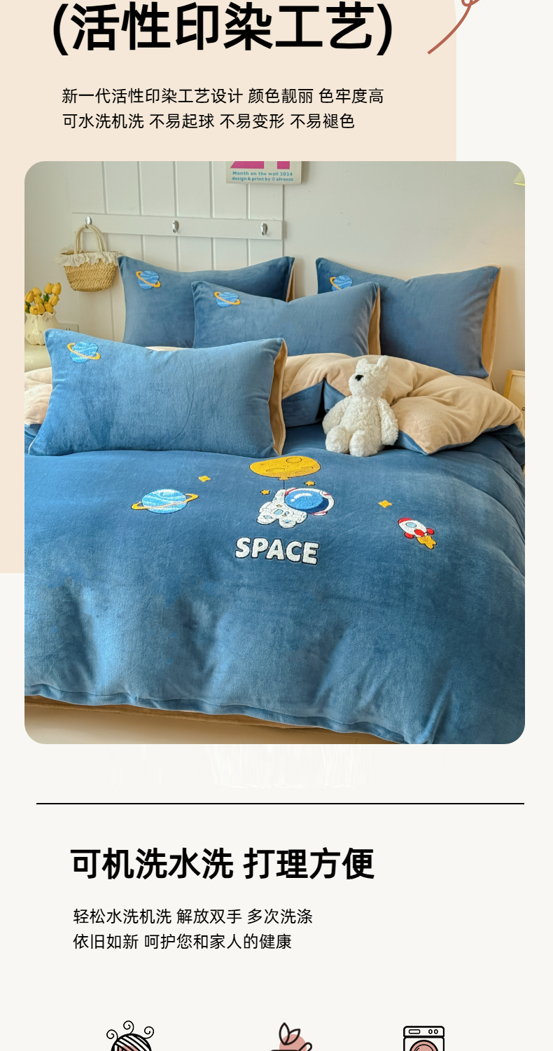 商品名称:莱凯家纺 2025新款毛巾绣牛奶绒四件套 遨游太空