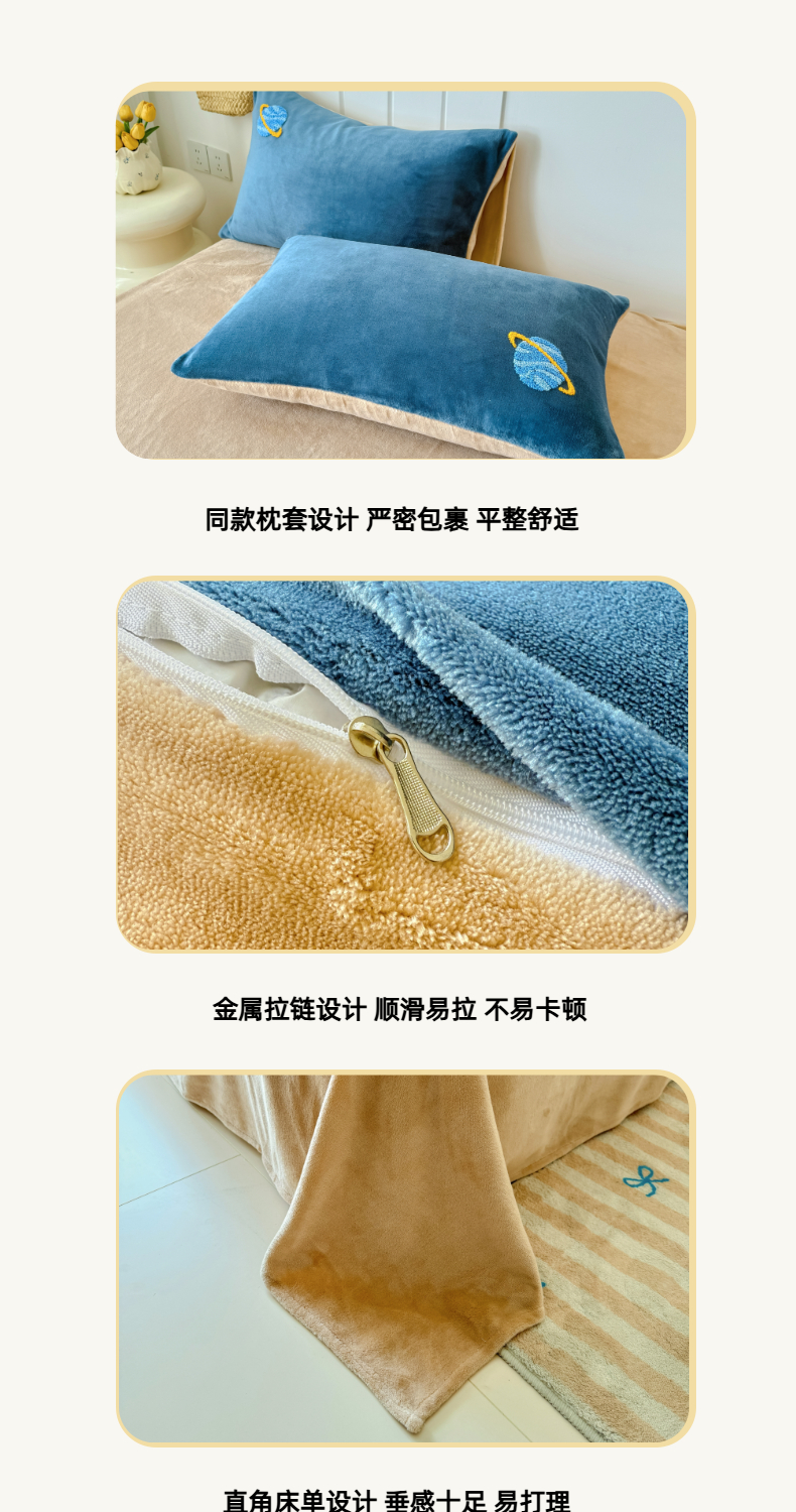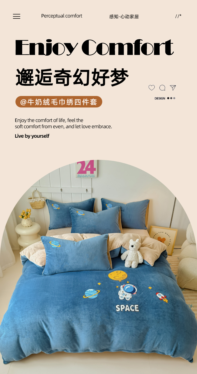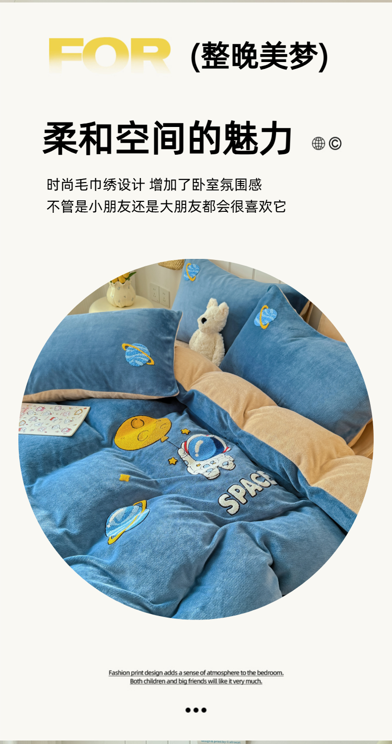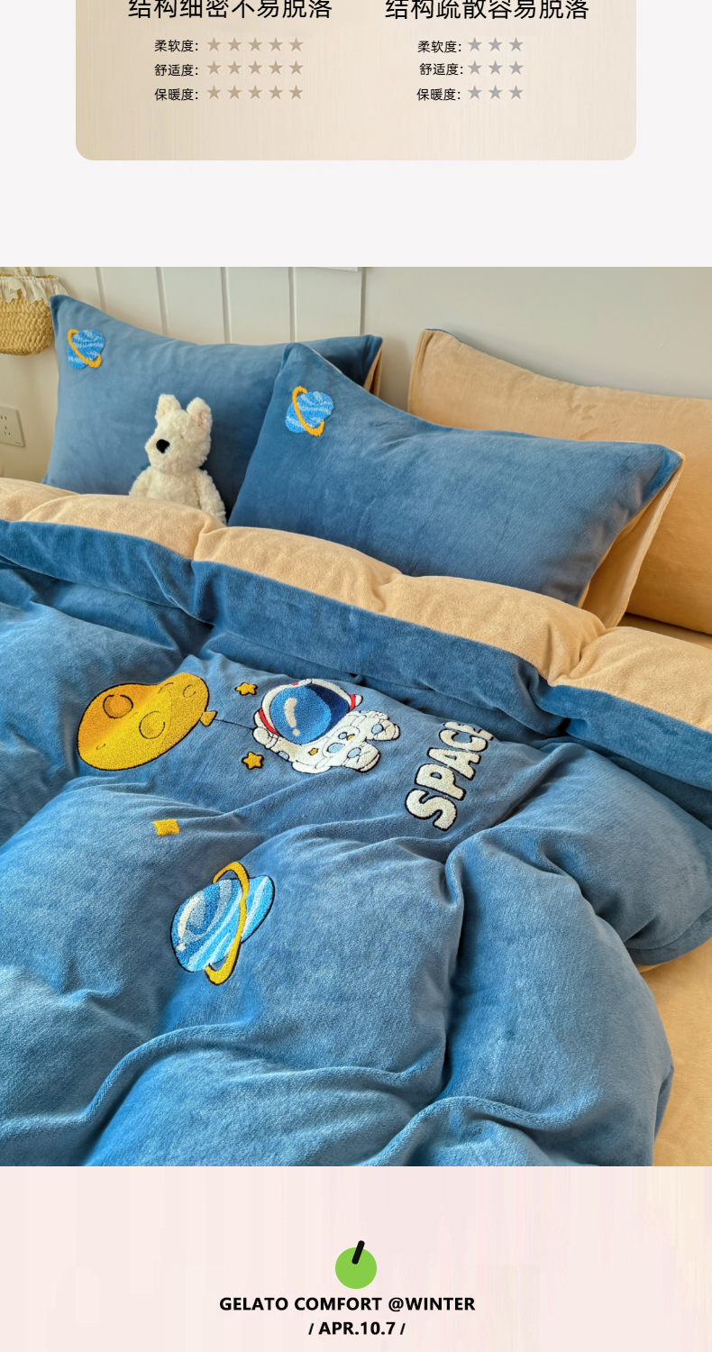 莱凯家纺 2025新款毛巾绣牛奶绒四件套 遨游太空