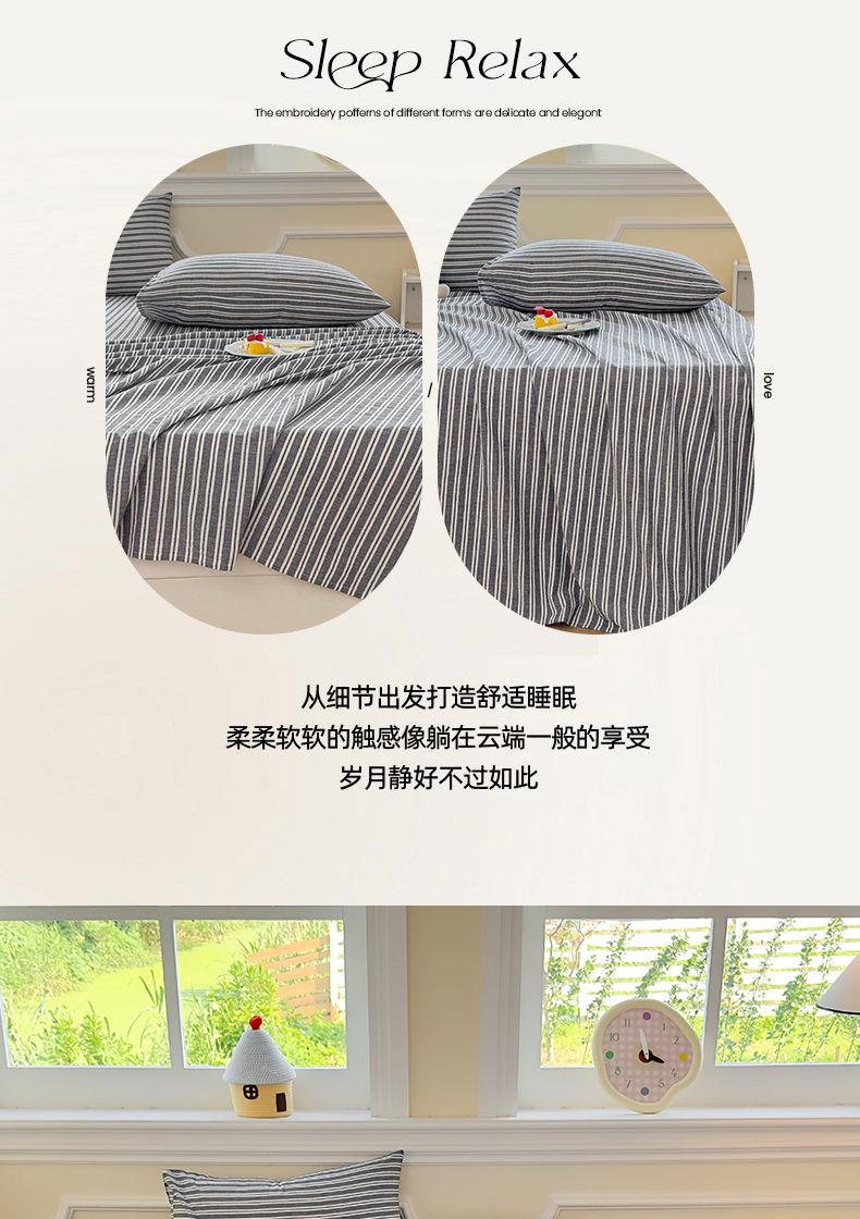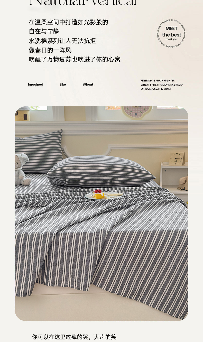 商品名称:菡宝 2025新款全棉纯棉色织水洗棉单床单 牧野丈青灰