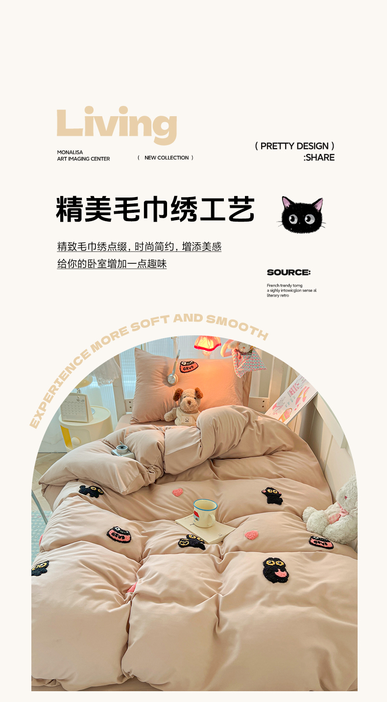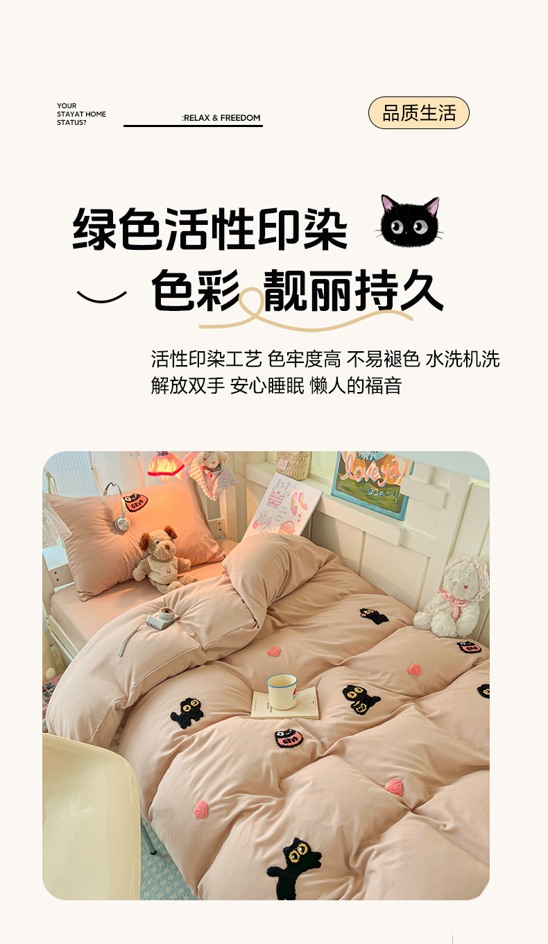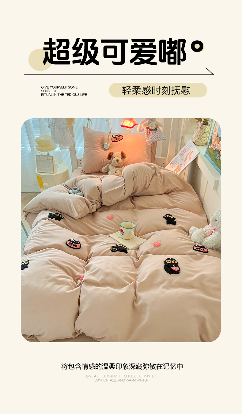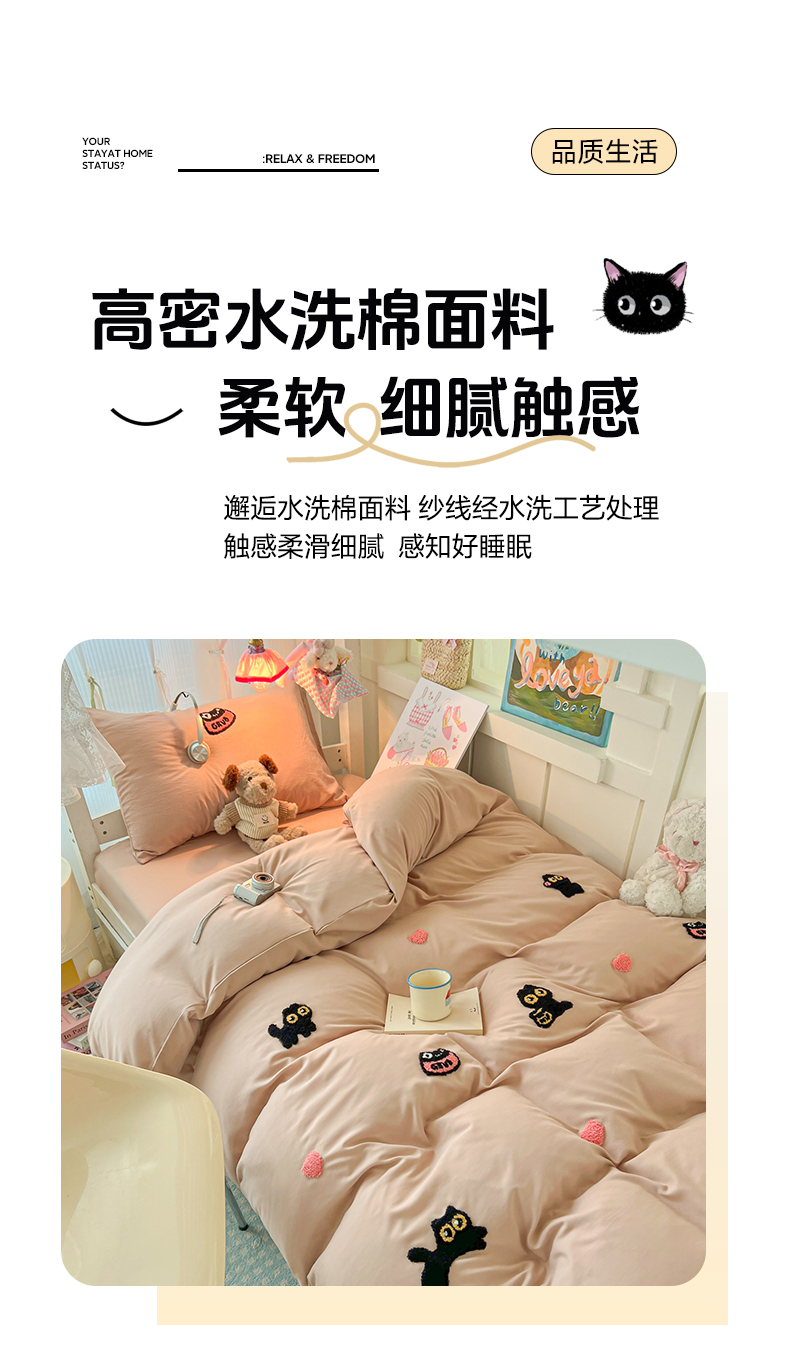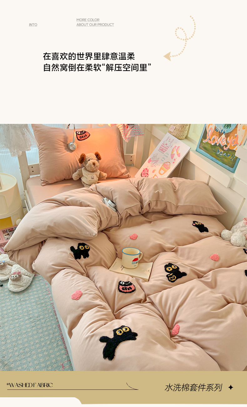 当前位置: 91家纺网 > 商品网购 > 床品套件 > 四件套 > 水洗棉四件套 > 韩巢家纺 2025新款学生宿舍寝室上下铺水洗棉毛巾绣被套床单三四件套-幸运猫 幸运猫奶咖