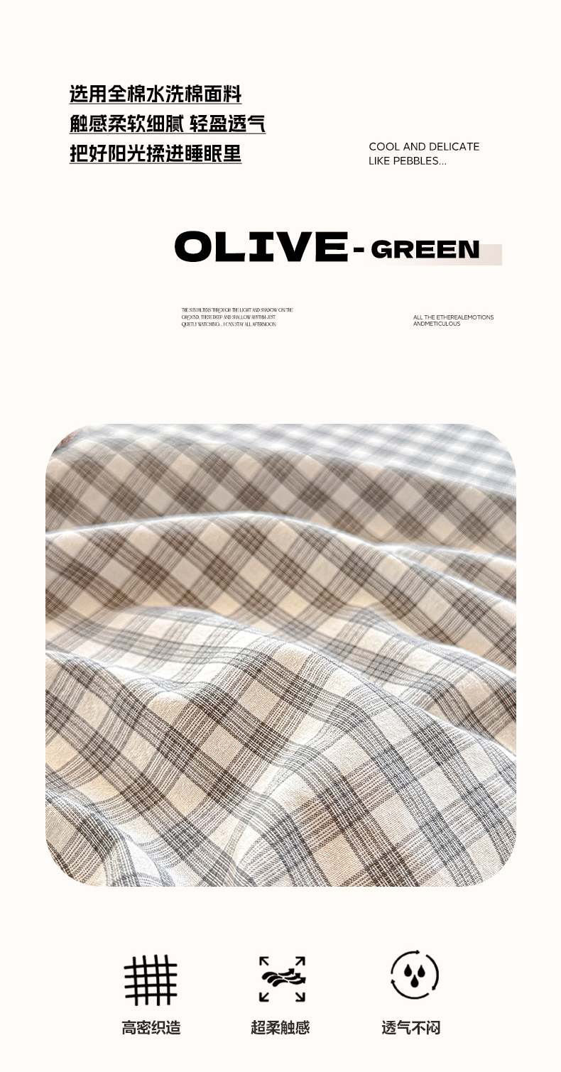 (总)佳汐蓝家纺 2026春夏新款棉麻皱皱双层纱四件套-栀子茉莉 控价:卷后不低于398,栀子茉莉-绿色床单,栀子茉莉-麻色床单
