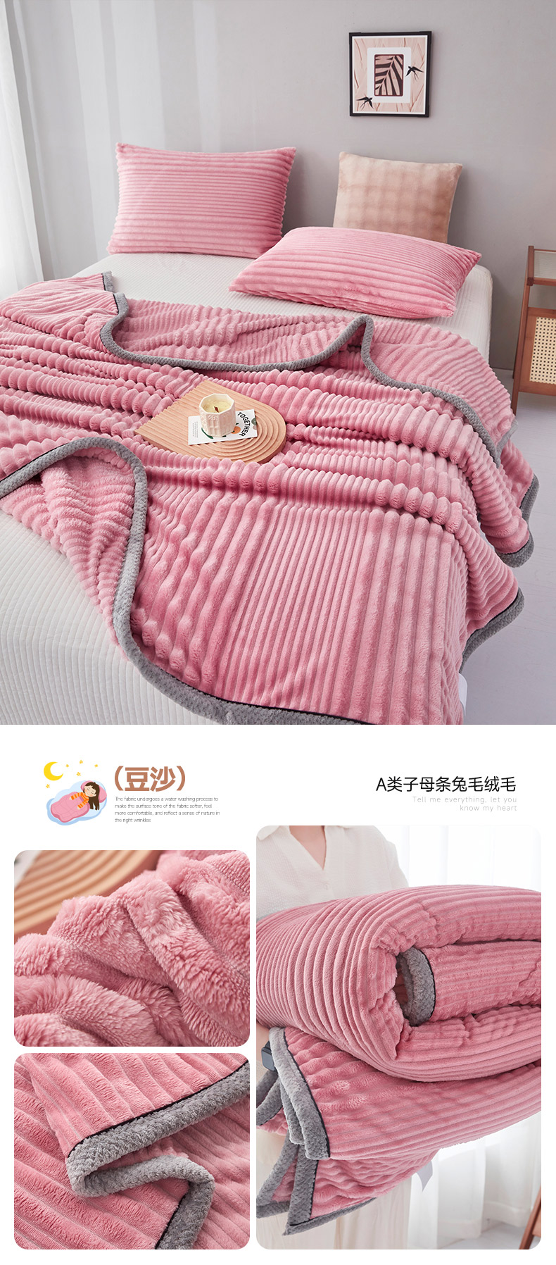 商品名称:肖恩毯业2025新款子母条兔毛绒毛毯盖毯休闲毯绒毯毯子跨境专供可打卷外贸出口可定制尺寸 子母-豆沙