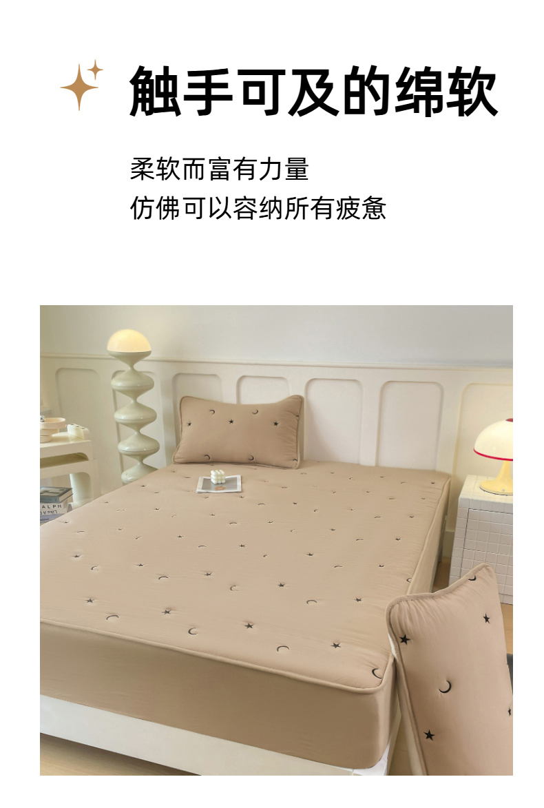 (总)贝拉梦家纺 2025水洗棉刺绣夹棉床笠防滑床罩床垫保护套,银河絮语-卡其,金缕扇-粉玉,蜜吻痕-奶白,星沙结-灰,云絮羽-天蓝
