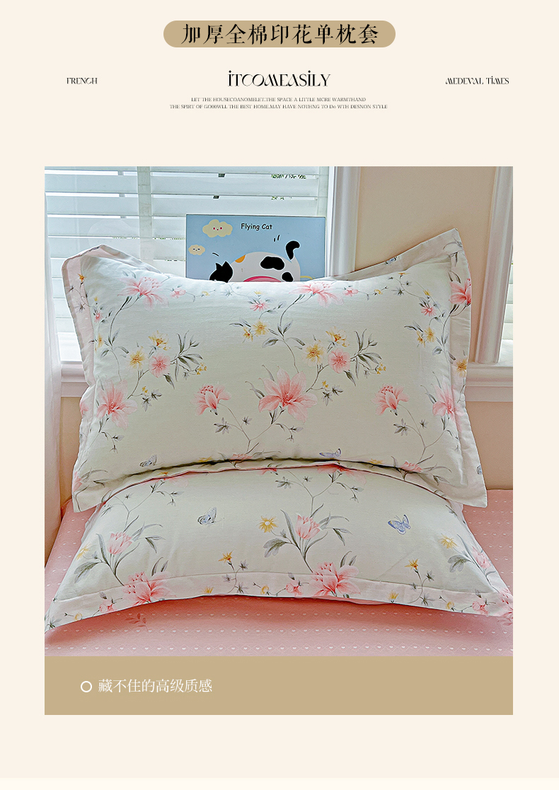 商品名称:恩泽家纺 2025新款加厚全棉纯棉印花系列枕套单件-单枕套 沐春风