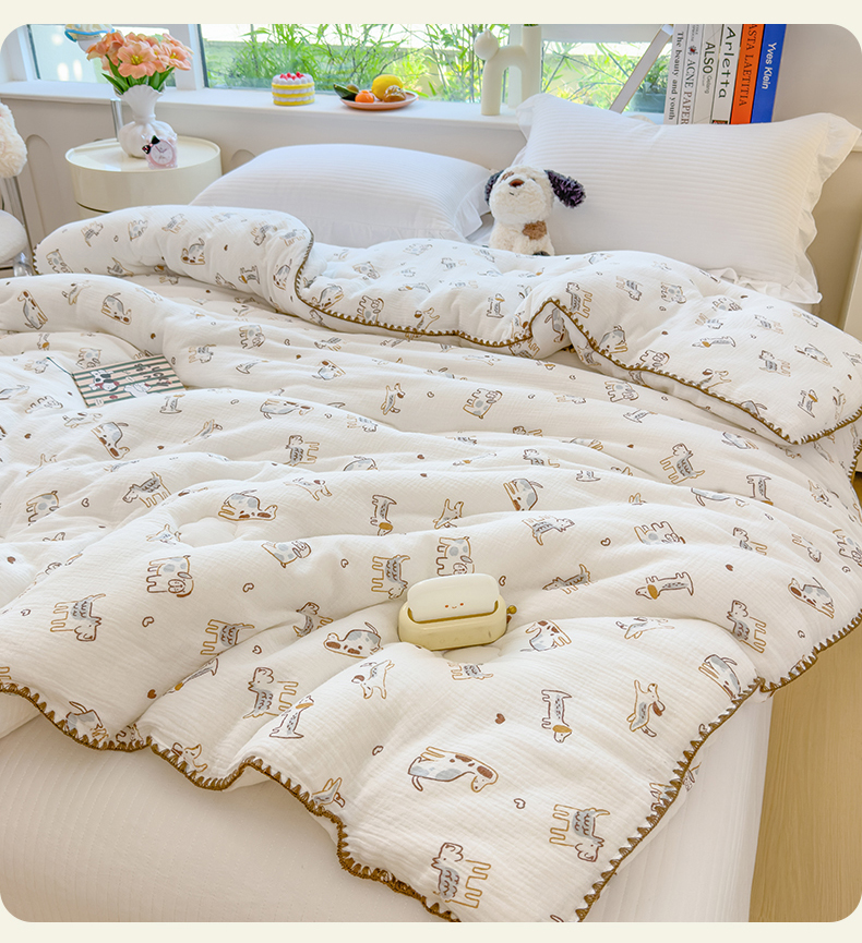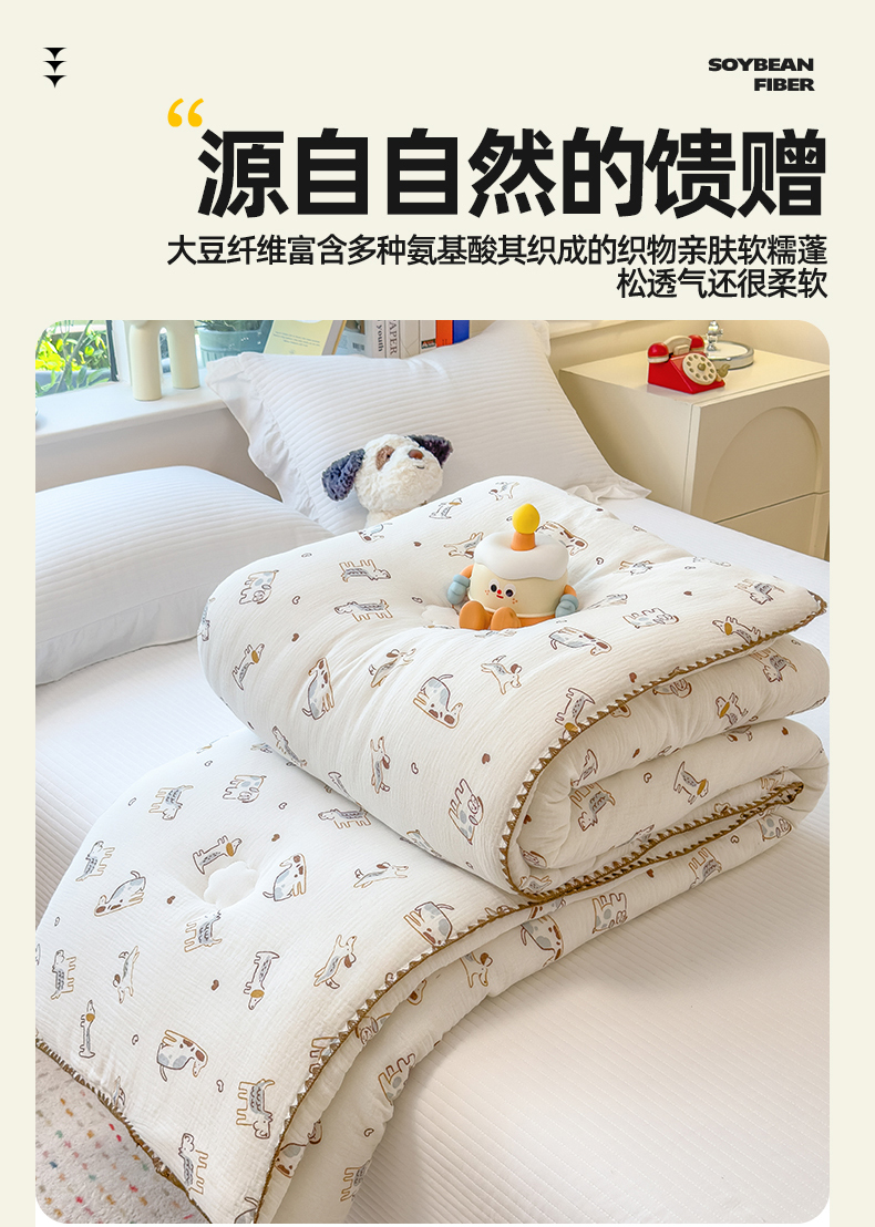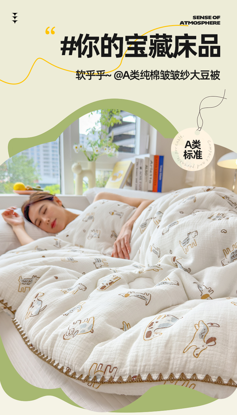 商品名称:(总)五月家纺 2025新款A类纯棉皱皱纱大豆被冬被春秋被 被子被芯(10%大豆纤维包检测)