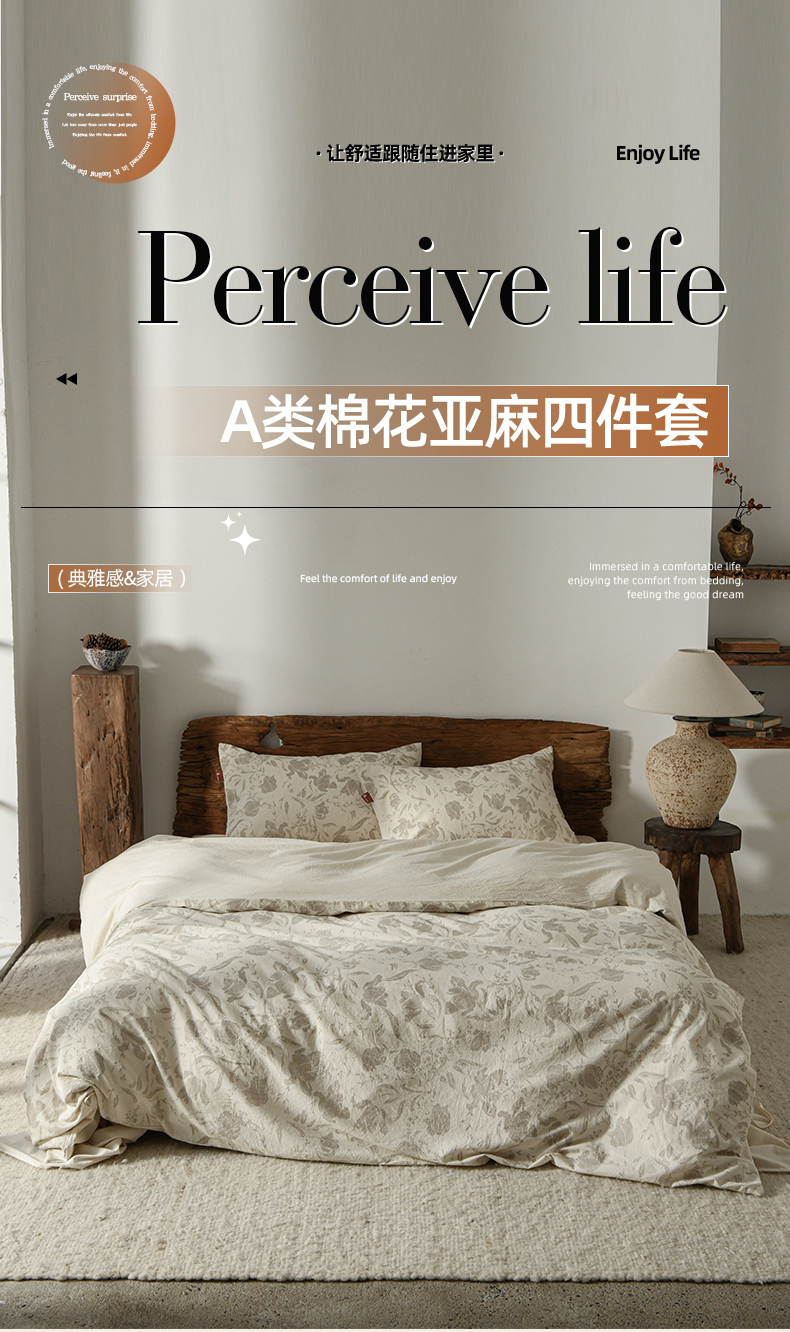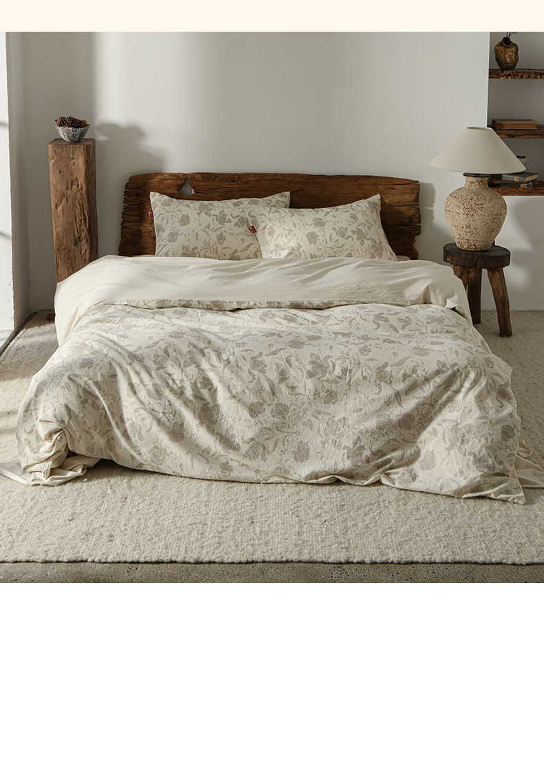 当前位置: 91家纺网 > 商品网购 > 床品套件 > 四件套 > 其它四件套 > 羚羊语家纺 2025新款A类棉麻高支密原生棉花亚麻四件套复古色织数码印花文艺风绉绉汉麻亚麻自 空谷集