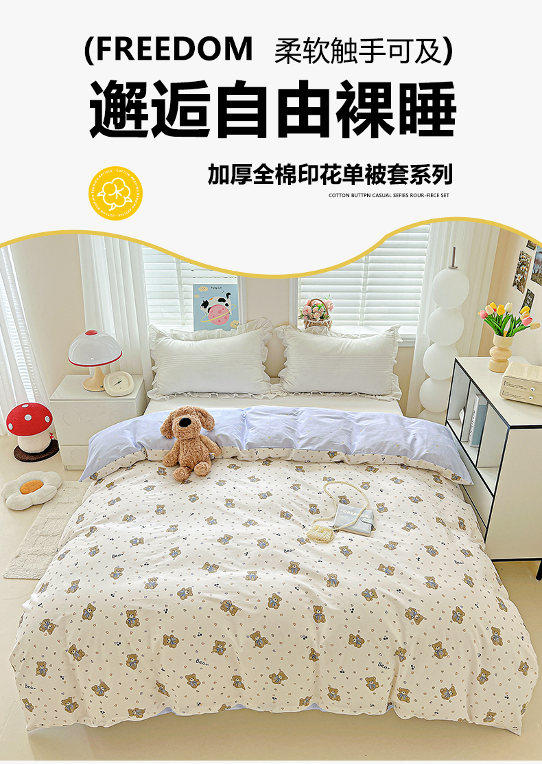 (总)2024新款ins风全棉印花单品被套,爱心小熊,安心宝贝,盎然春色,白桃公主,北极星,波波熊,布朗熊,草莓小恐龙,宠物派对,出水芙蓉,冬日嘉年华,豆蔻年华,多米熊咖,法风小香,国宝联盟,嗨皮熊,海底派对,海底世界,花都丽影,花香馥郁,花语嫣然,皇家学院 灰,几何旋律,橘色心情,可比乐园,蓝色心情,玛格丽,漫步时光,玫瑰佳人,萌萌兔,梦人花香,喵喵派对,莫兰迪,皮皮狗,浅浅花漾粉,浅浅花漾蓝,思维空间,天真小熊,心动熊仔,星光条纹,许愿精灵咖,音乐小熊,郁金香兔兔,遇见心情,月下花夕,紫霞,安逸胖哒,斑点小狗,碧城春泥,芳华,菲颂,橘子狗,罗利,米洛,偏爱,清风絮语,小黑猫,摇曳花开,游蝶戏梦,春的色彩