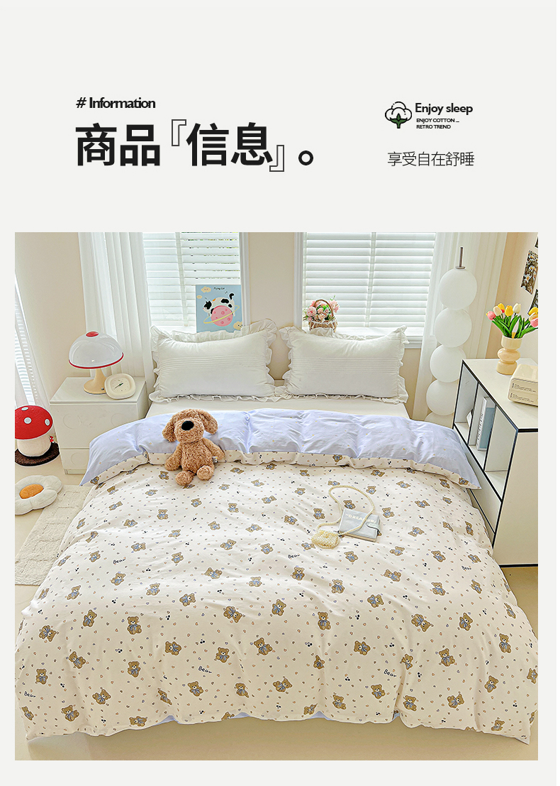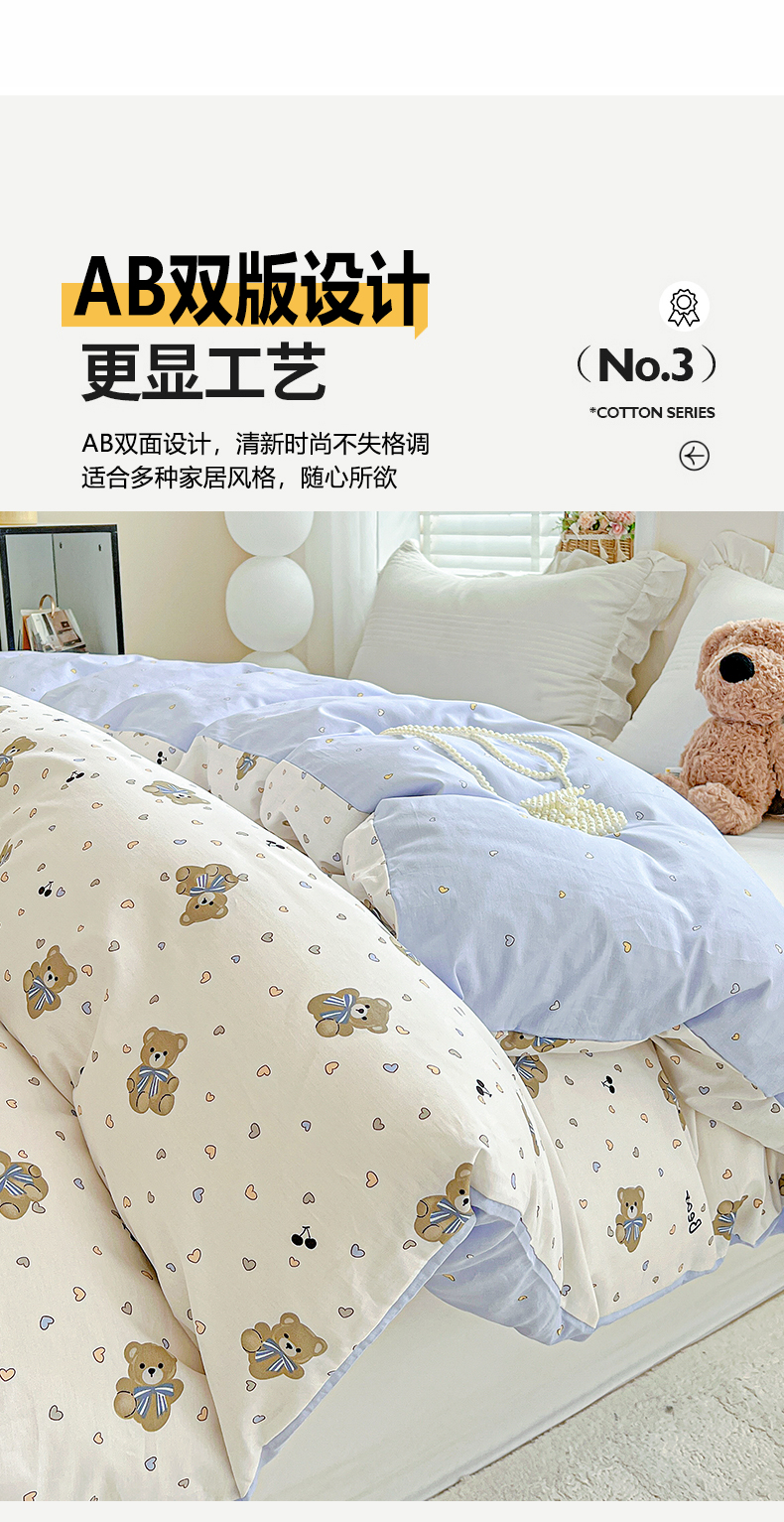 商品名称:恩泽家纺 2025新款加厚全棉纯棉印花系列被套单件-单被套 天使熊