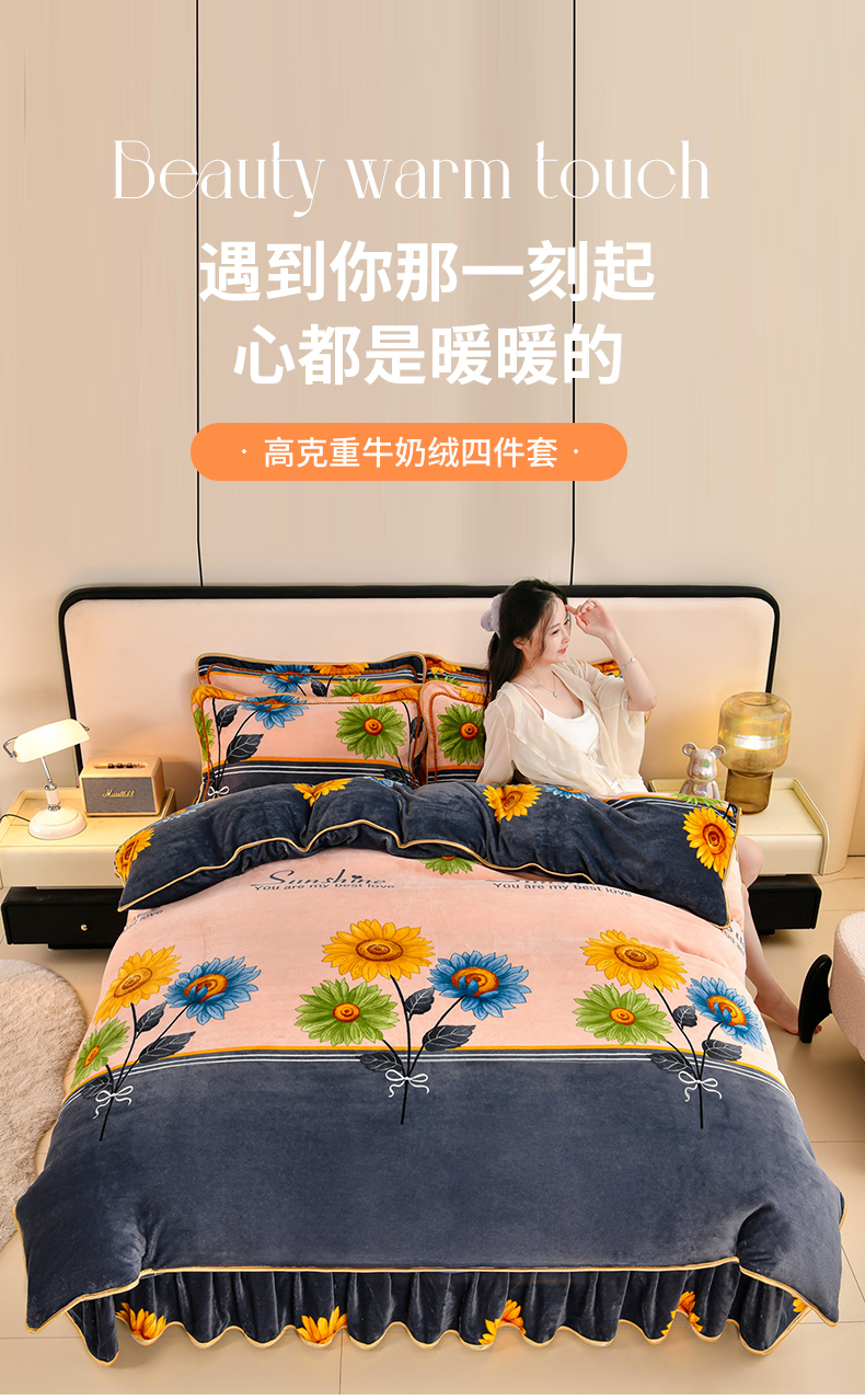 当前位置: 91家纺网 > 商品网购 > 床品套件 > 四件套 > 牛奶绒四件套 > 2025直播爆款印花牛奶绒四件套8斤法莱绒印花四件套 向日葵