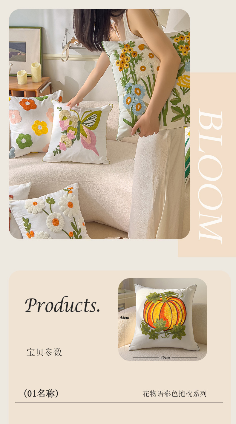(总)诺可 2025新款全棉毛巾绣抱枕跨境花物语系列,组合,模特图,彩色石,蝶影,繁华拾光,粉蝴蝶,禾穗,花环,花卉-橙,花卉-粉,花雾,花盏,岚山,林礼,绿蝴蝶,蔓藤,木瑾花,南瓜,霓虹,柠檬叶,山奈,石榴蓝,石榴紫,树叶,禧朵,夏日铃兰,向阳花,星葵,叶坊,雨棠,枝瑾,紫蝴蝶,紫蕊,磨毛布单抱枕芯
