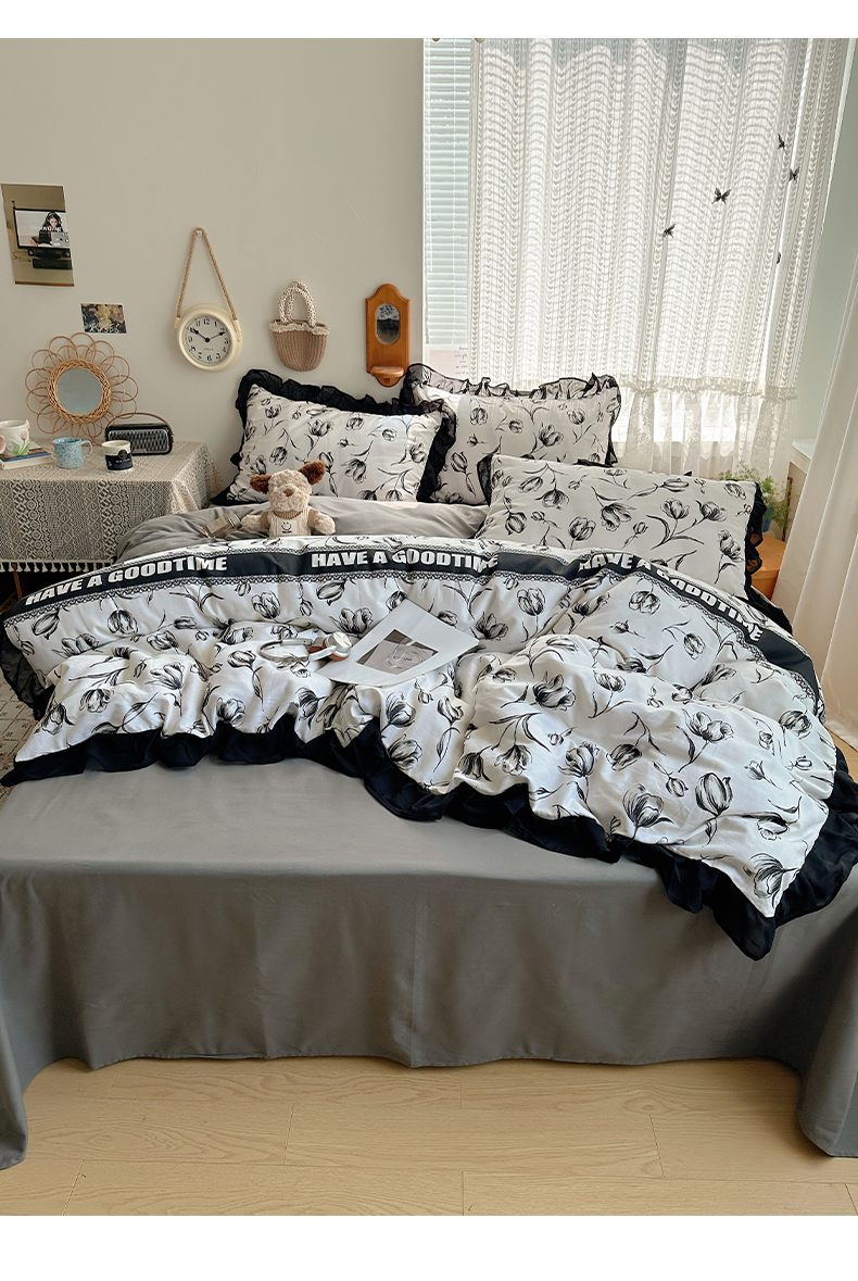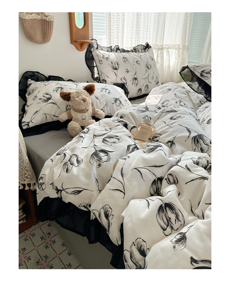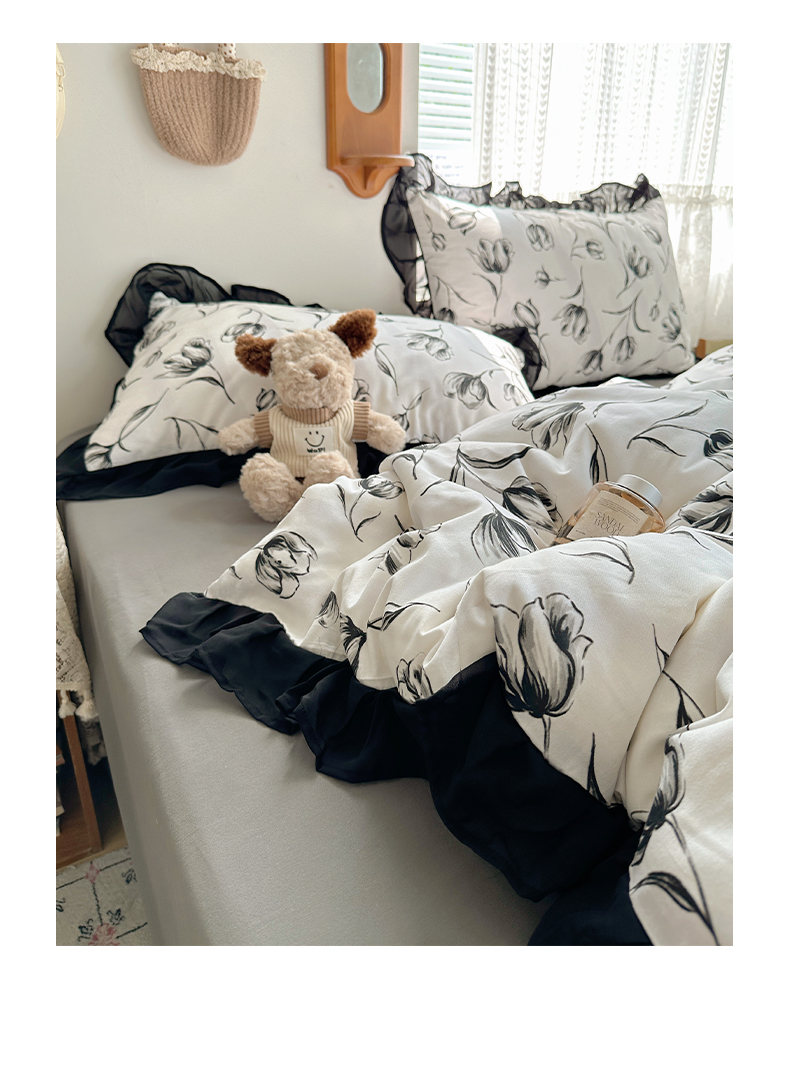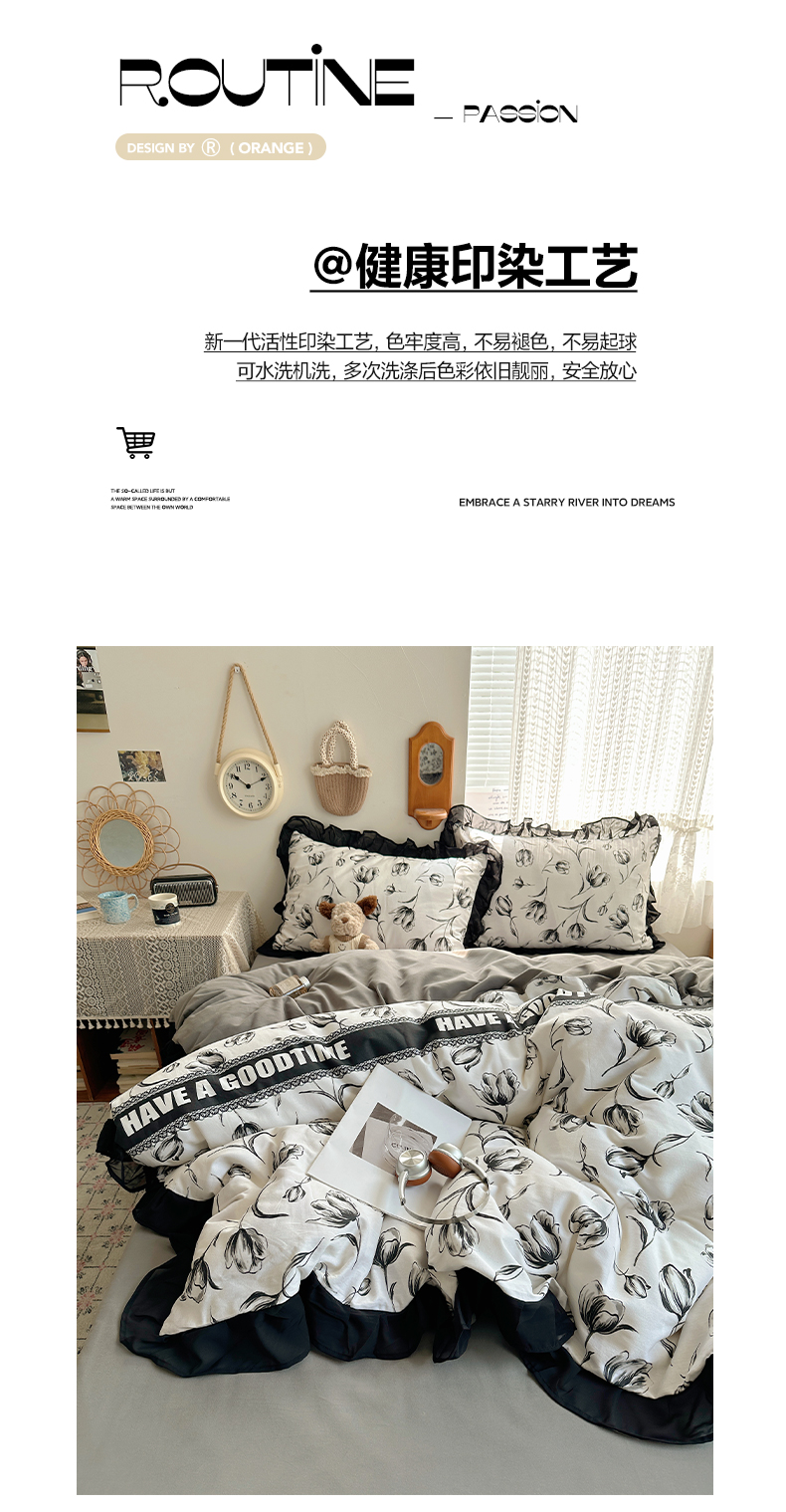 当前位置: 91家纺网 > 商品网购 > 床品套件 > 四件套 > 全棉普通四件套 > 雅居纺家纺 2025新款全棉纯棉赫本风磨毛蕾丝花边四件套-风格一 梦幻郁金香