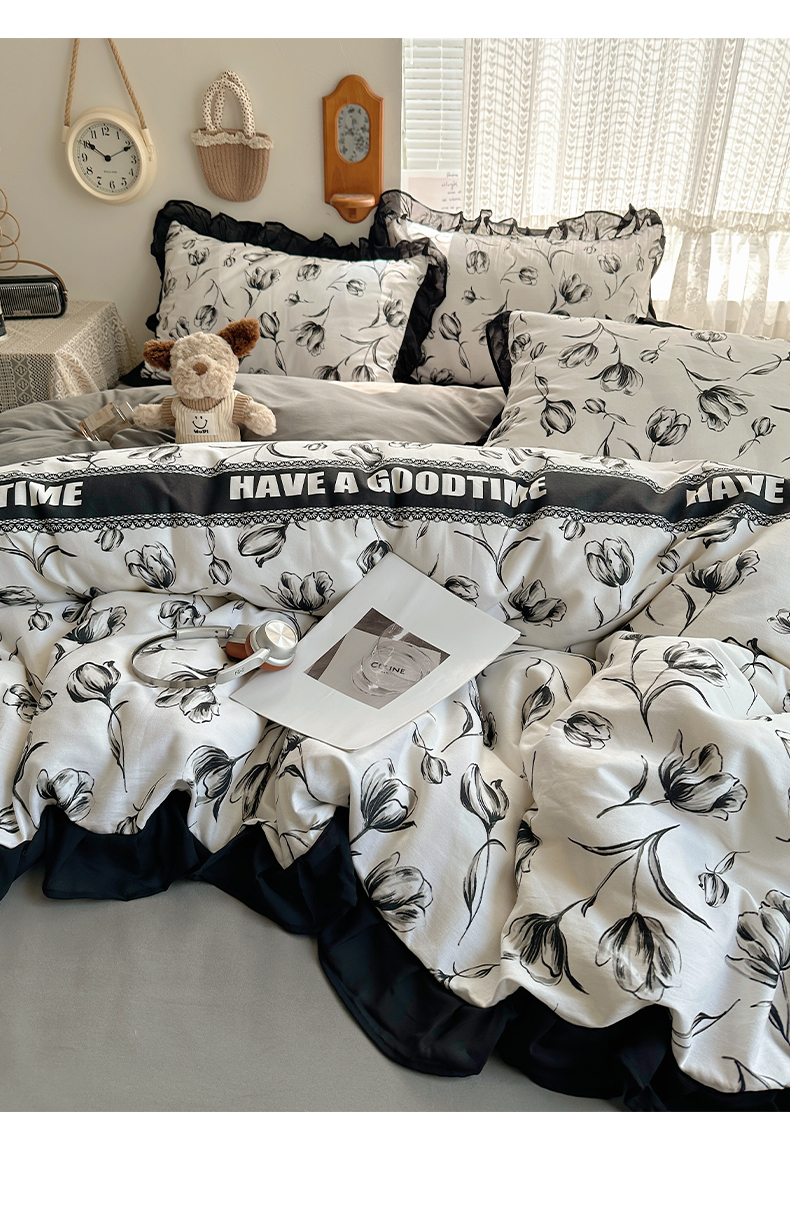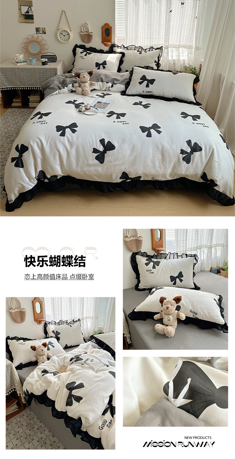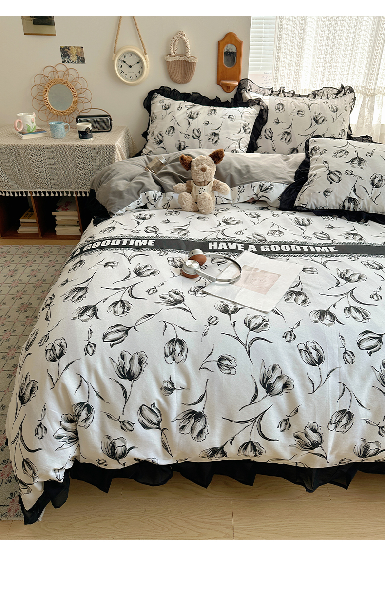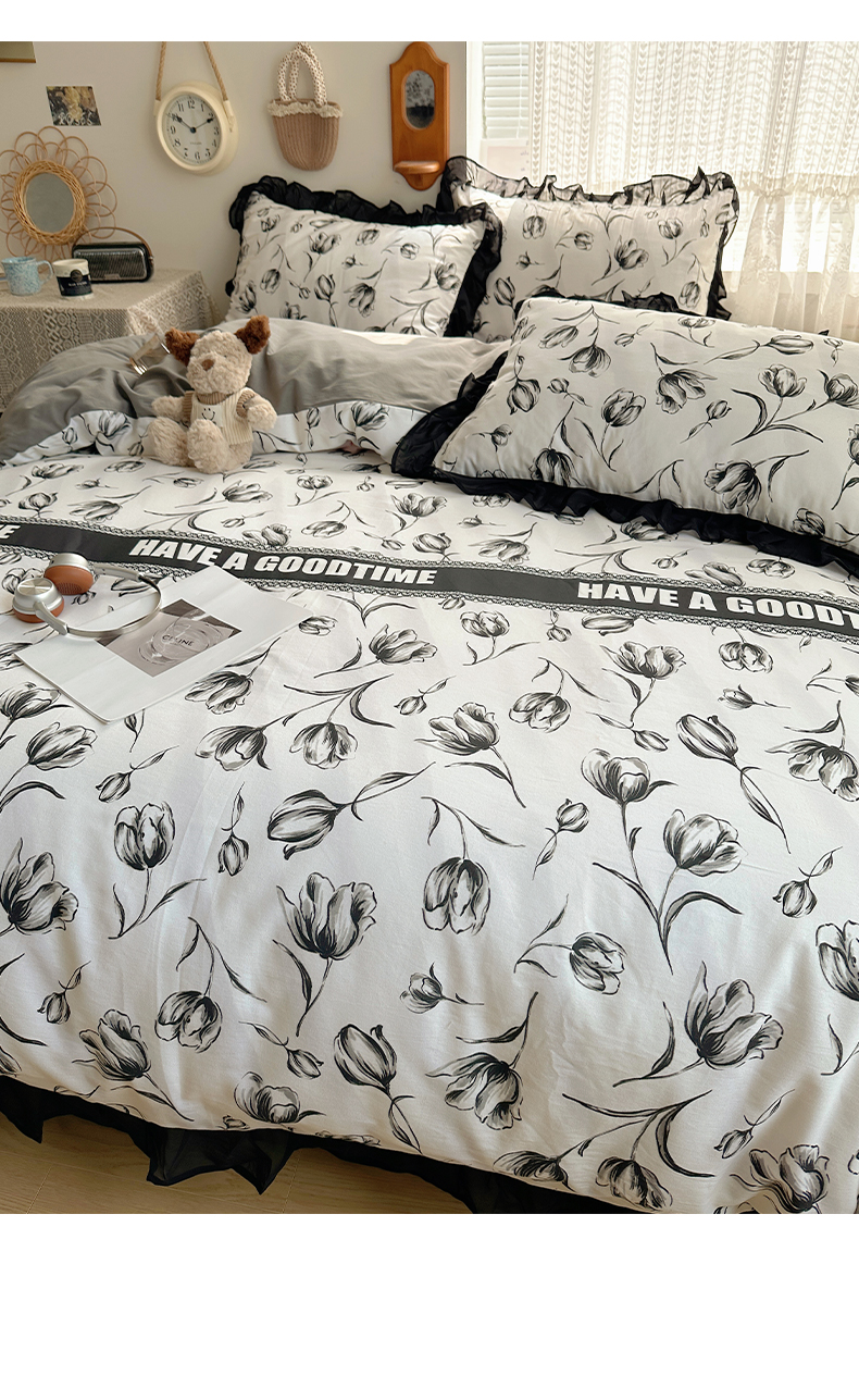 当前位置: 91家纺网 > 商品网购 > 床品套件 > 四件套 > 全棉普通四件套 > 雅居纺家纺 2025新款全棉纯棉赫本风磨毛蕾丝花边四件套-风格一 梦幻郁金香