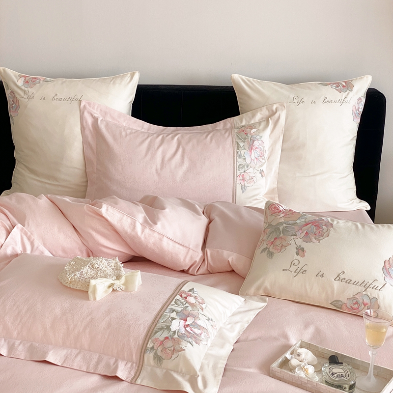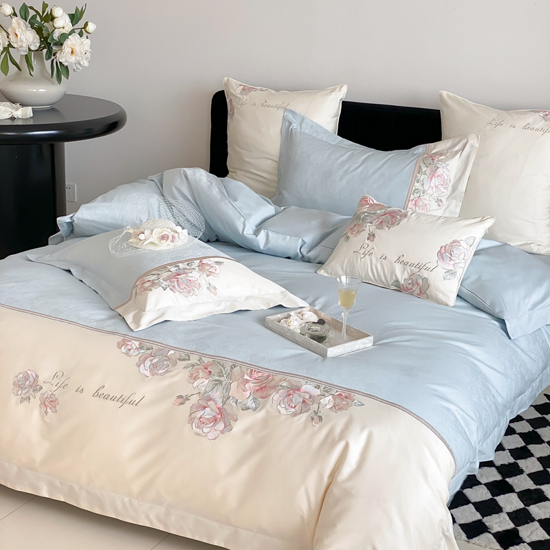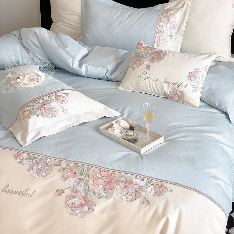 (总)初拾 2025新款100s双股澳棉刺绣四件套-赫拉公主(棉),棉 赫拉公主-海边蓝,棉 赫拉公主-奶油粉