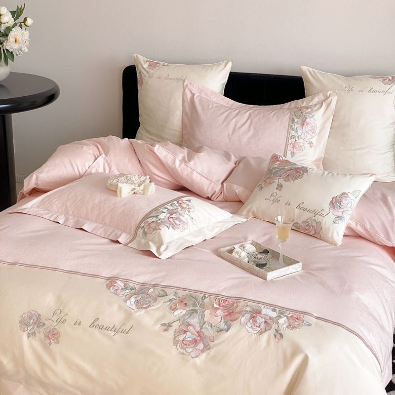 (总)初拾 2025新款230g牛奶绒“高级感“绣花四件套—曼岛邂逅,曼岛邂逅-奶油粉,曼岛邂逅-气质灰,曼岛邂逅-香槟
