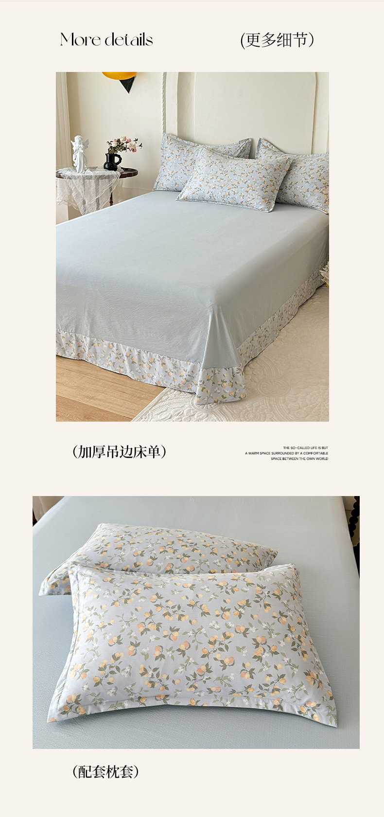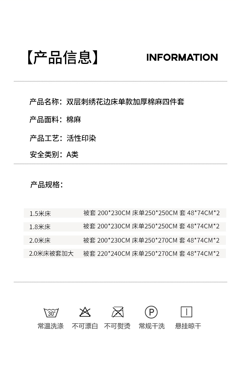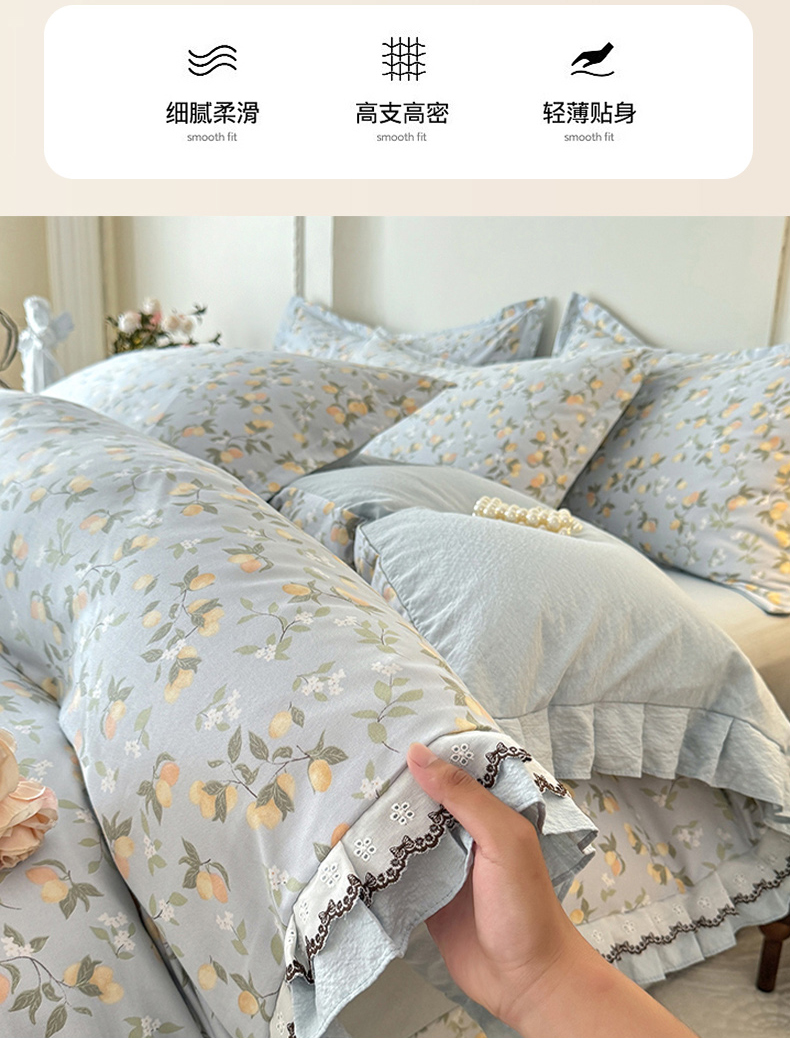商品名称:韩约家纺 2025秋冬加厚1双层刺绣花边床单款棉麻四件套 花盏