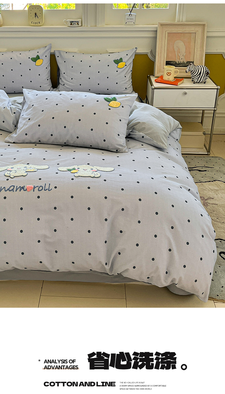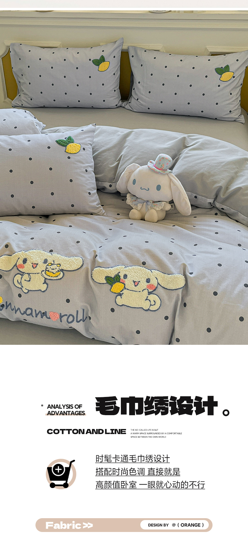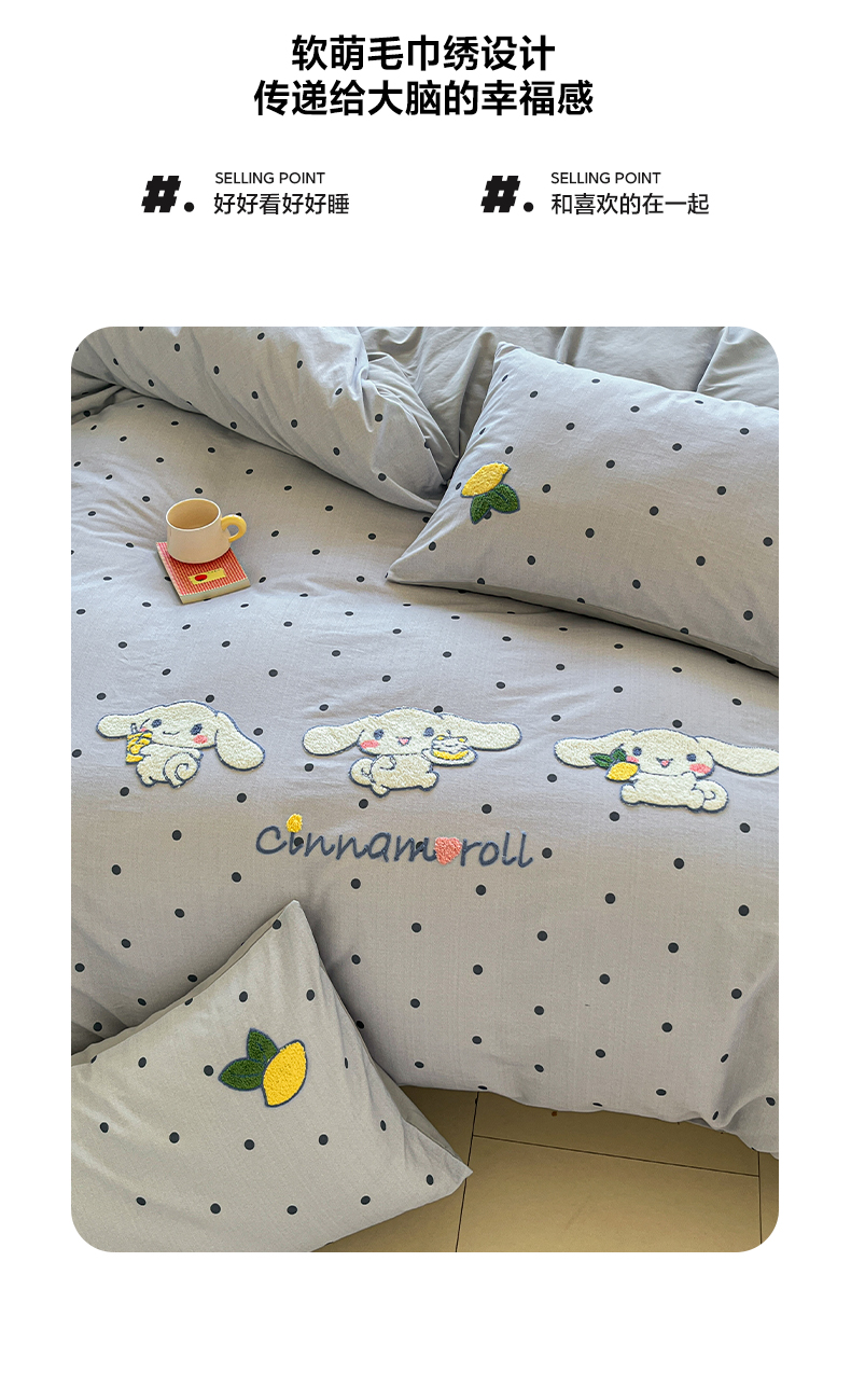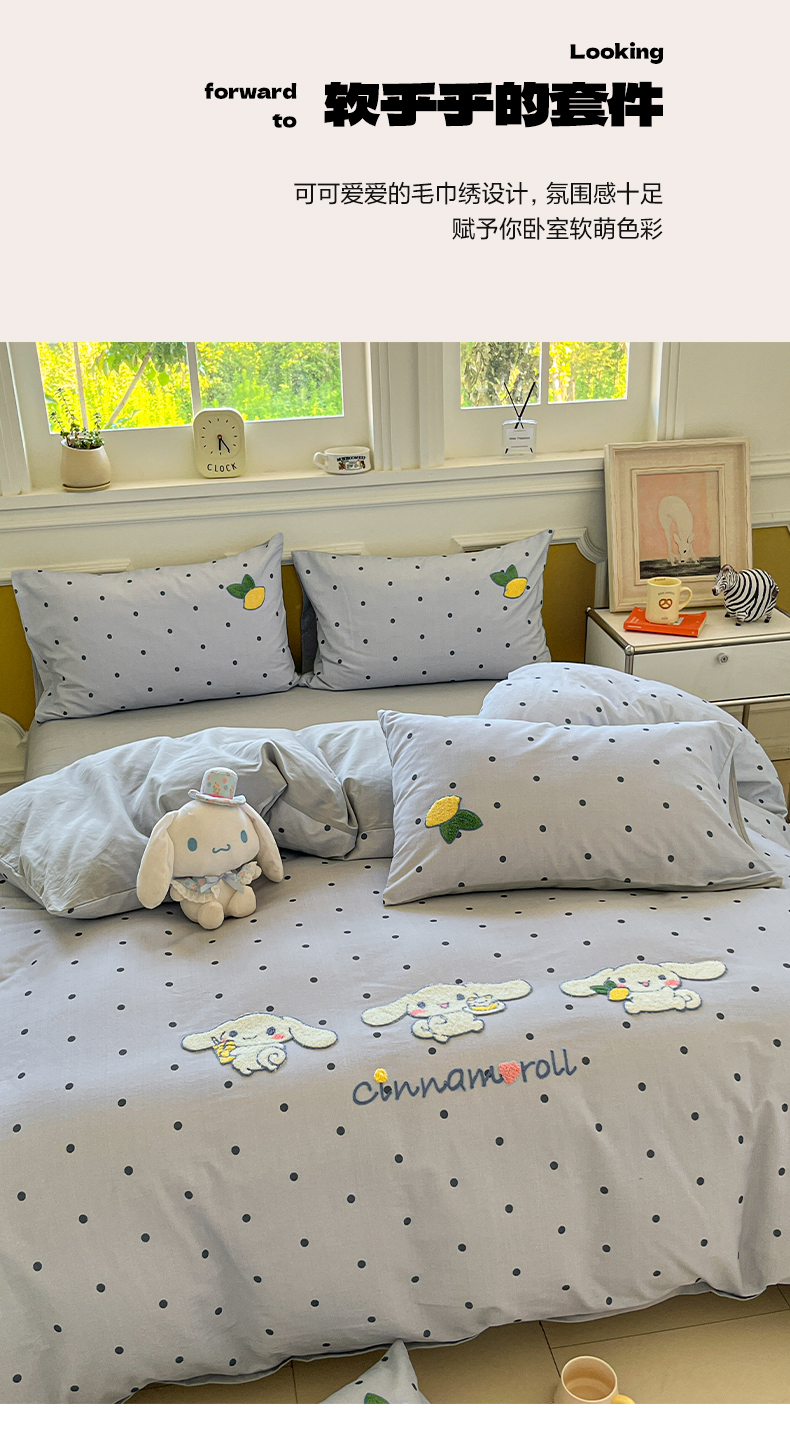 当前位置: 91家纺网 > 商品网购 > 床品套件 > 四件套 > 全棉普通四件套 > 雅居纺家纺 2025新款全棉纯棉磨毛三丽鸥毛巾绣四件套 波点玉桂狗