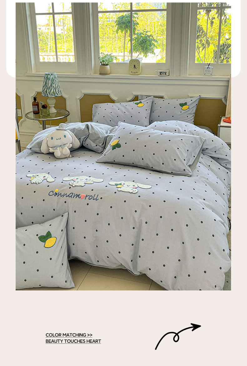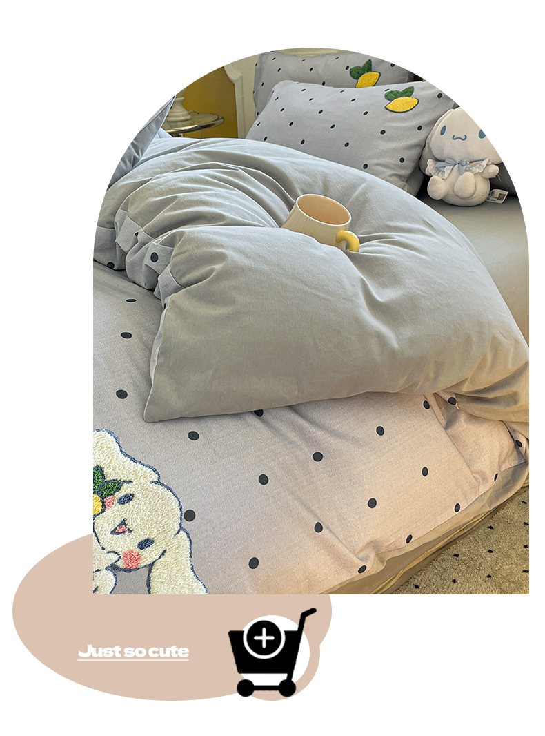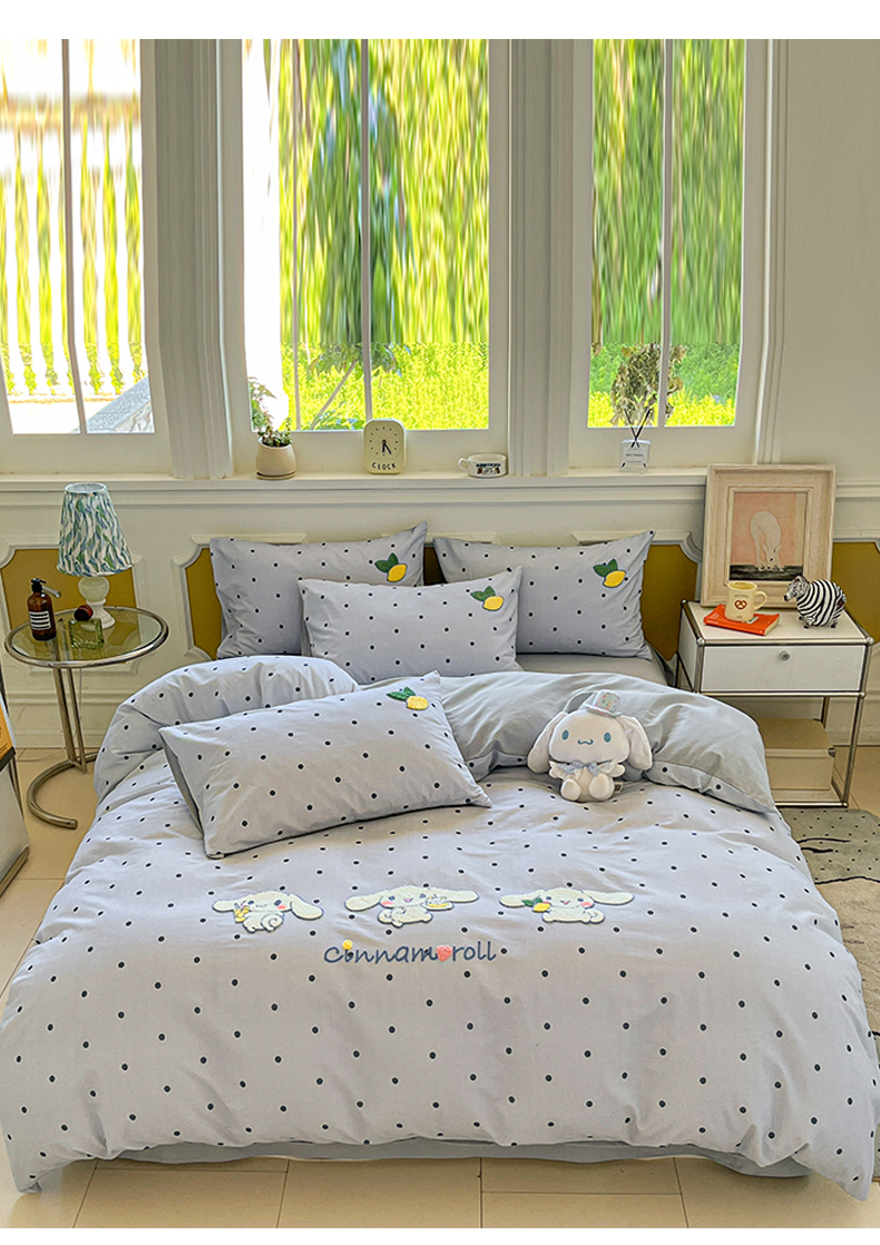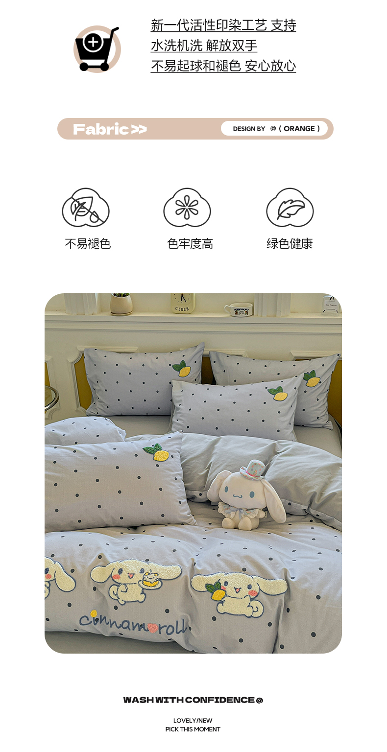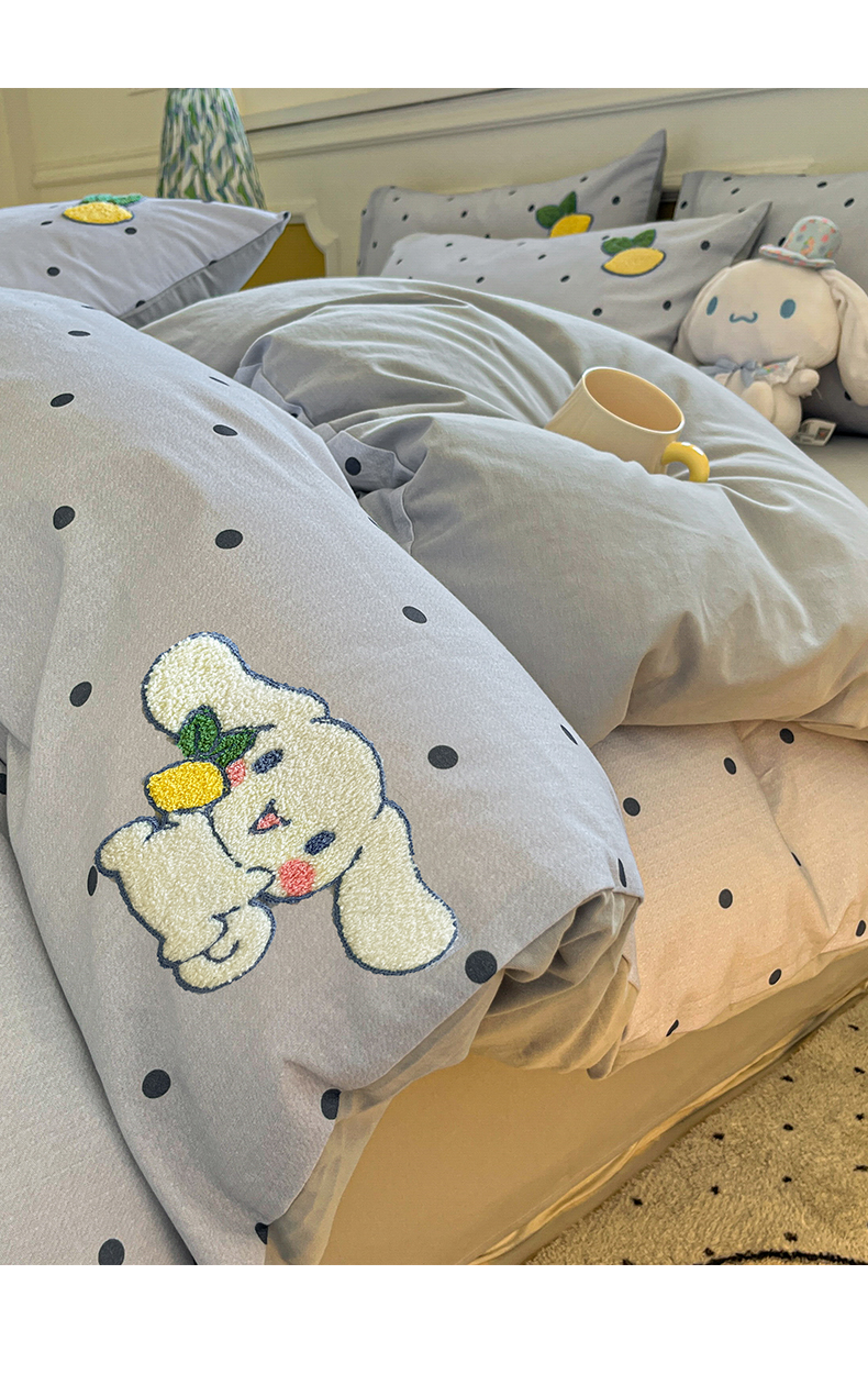 当前位置: 91家纺网 > 商品网购 > 床品套件 > 四件套 > 全棉普通四件套 > 雅居纺家纺 2025新款全棉纯棉磨毛三丽鸥毛巾绣四件套 波点玉桂狗