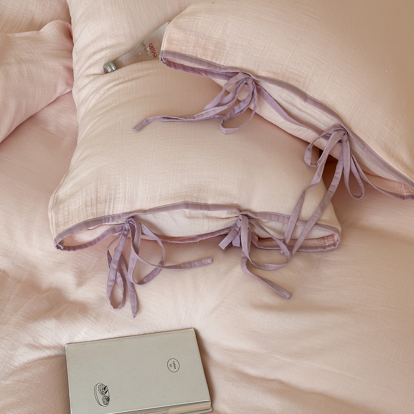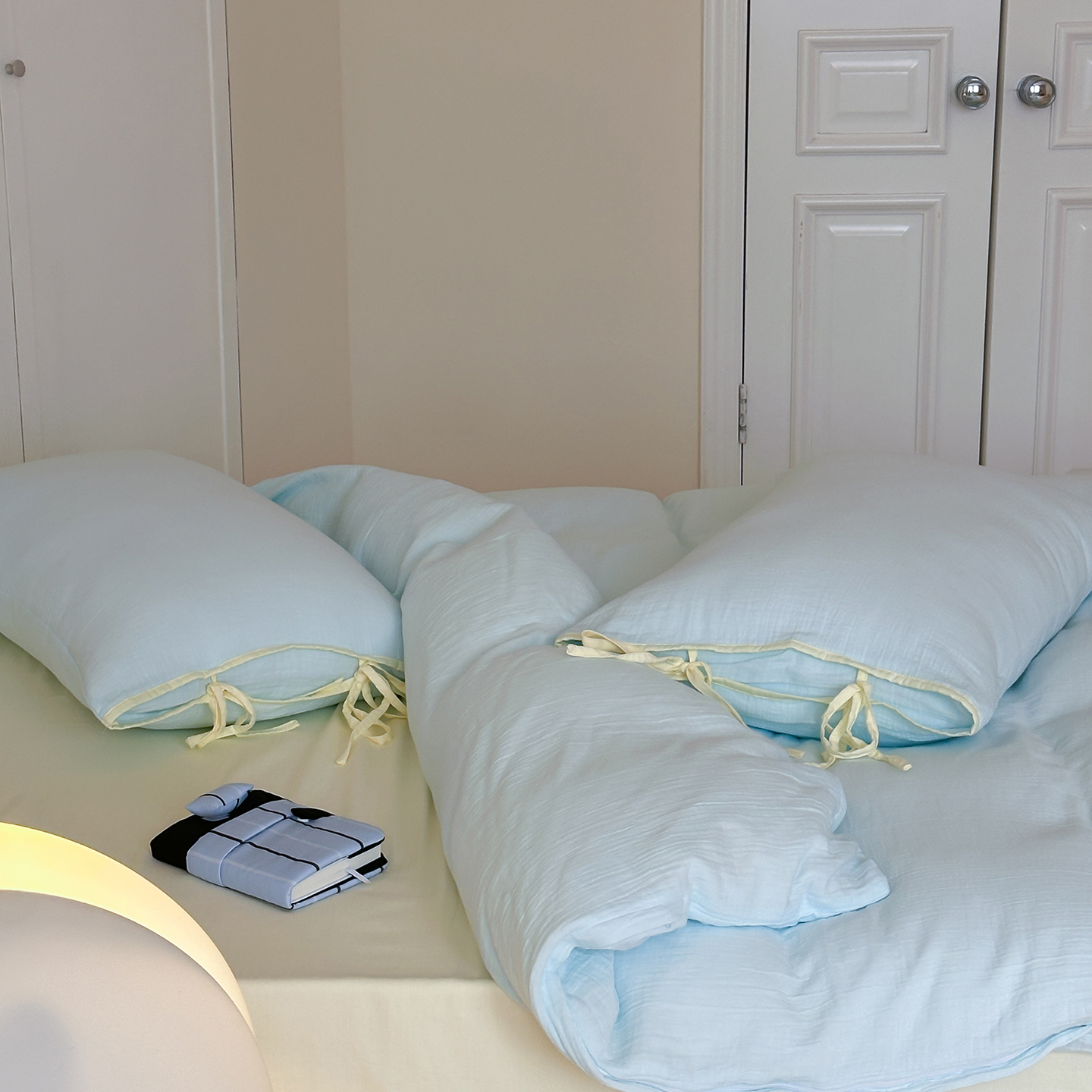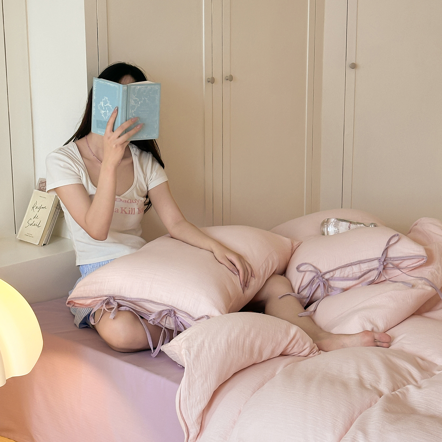 商品名称:小春日和 2025新款纯棉A类婴幼儿母婴纯色双层皱皱纱四件套 蜜桃乌龙