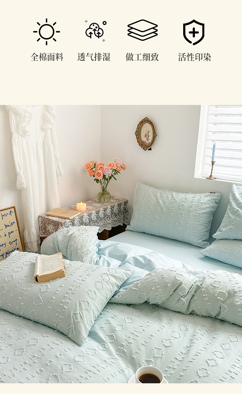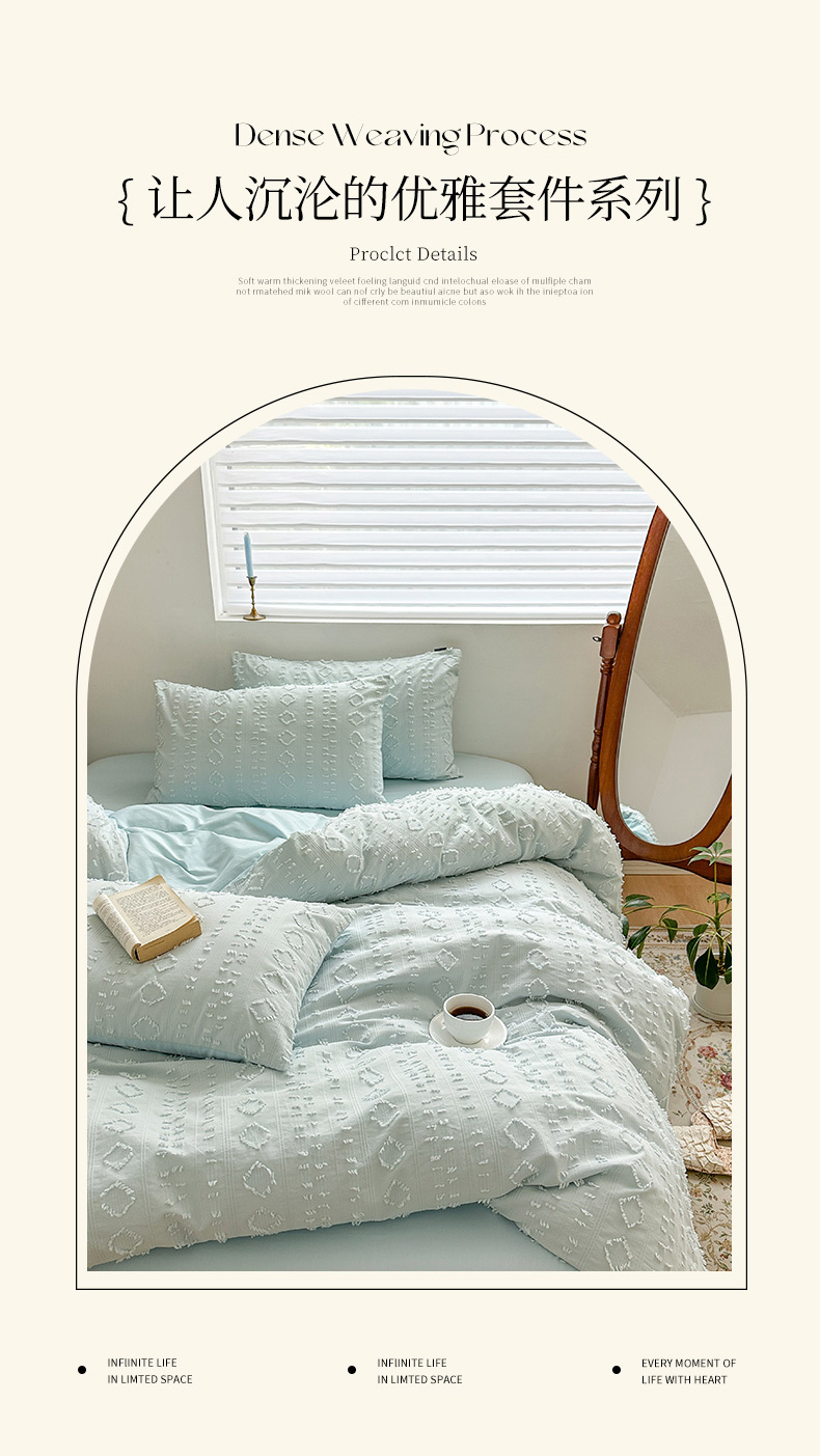 当前位置: 91家纺网 > 商品网购 > 床品套件 > 四件套 > 全棉普通四件套 > (总)贝尔 PELLHOME 车妮尔全棉剪花提花四件套外贸民宿小红书风格套件(可抖音代发)