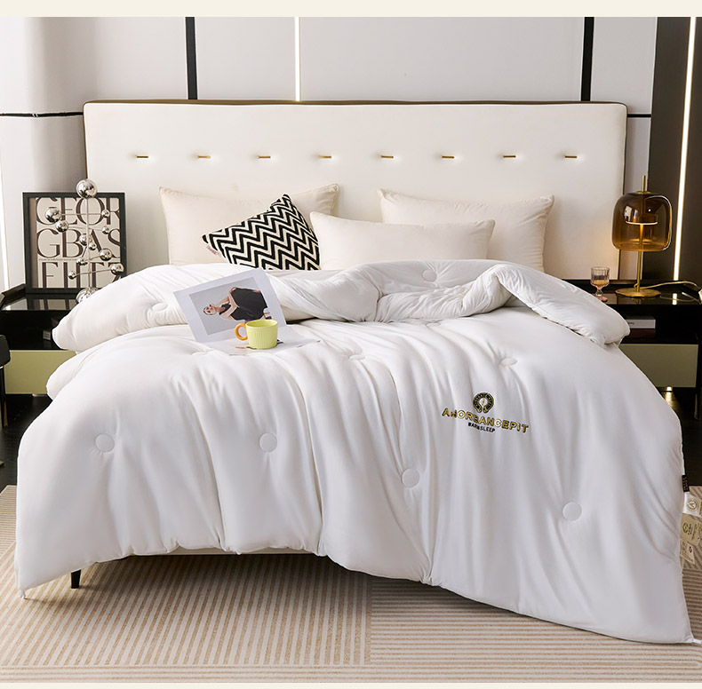 爱诗诺家纺 一件代发2025年新款牛奶丝3D立体烫画大豆被春秋被直播冬被跨境电商被芯学生宿舍被子被芯 牛奶丝-白