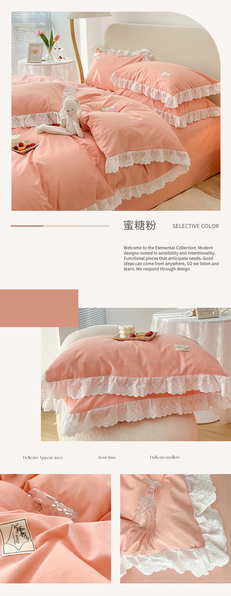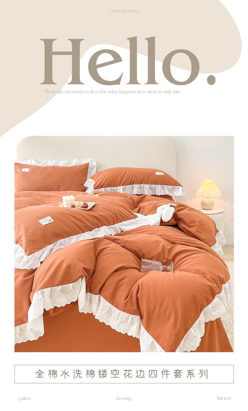 贝尔 PELLHOME 全棉水洗棉宽花边镂空刺绣四件套床单床笠场景一春节不打烊(可抖音代发) 焦糖桔