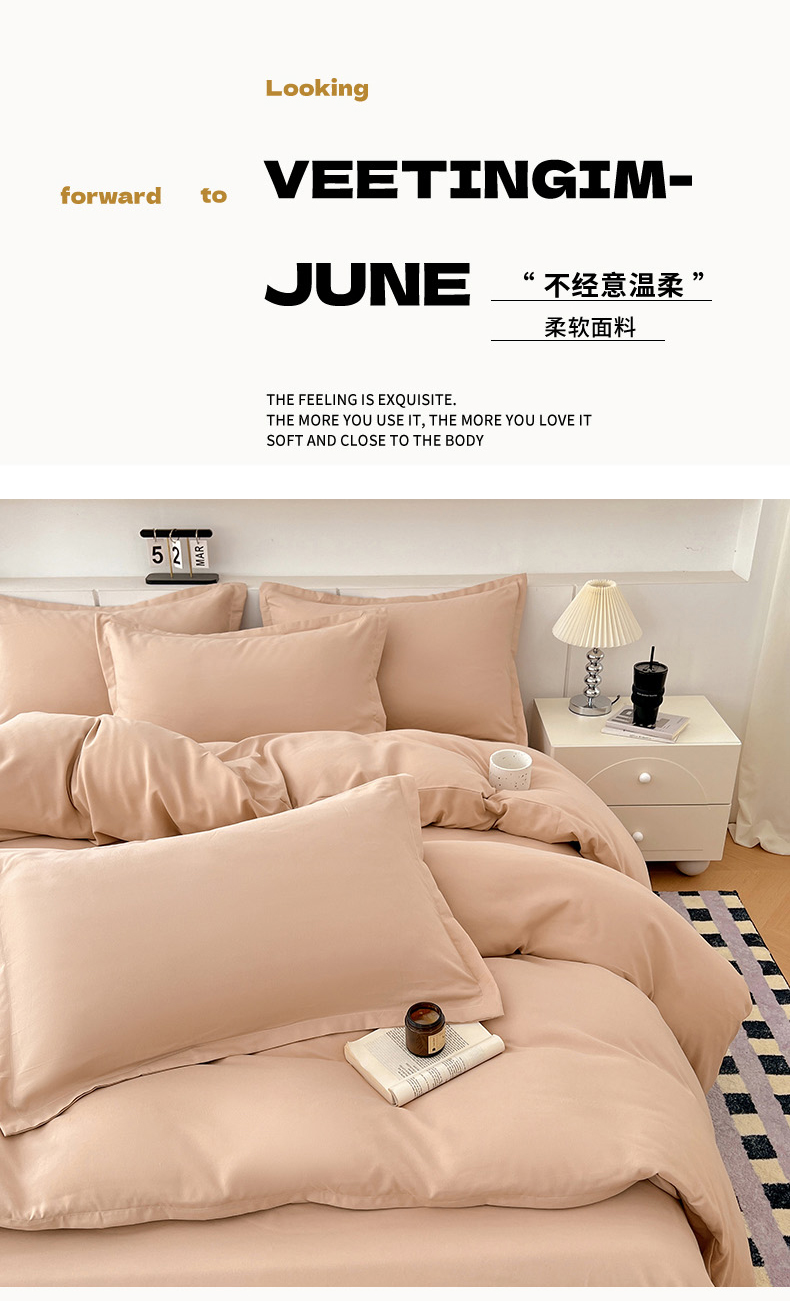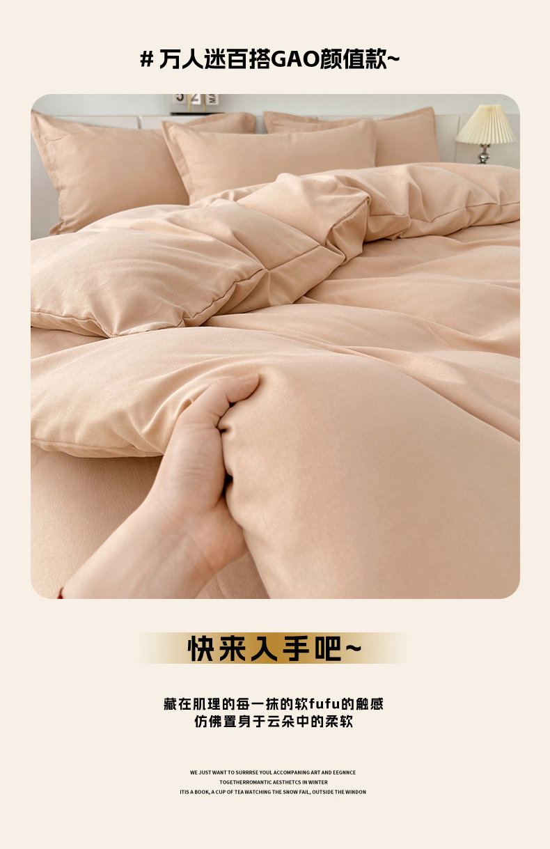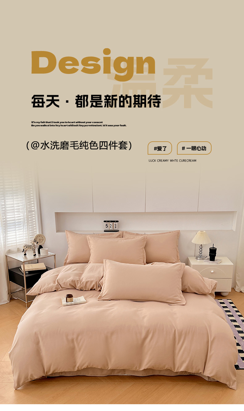 当前位置: 91家纺网 > 商品网购 > 床品套件 > 四件套 > 其它四件套 > 世爵 2025新款热款轻奢简约风高克重纯色140克水洗磨毛四件套 驼色
