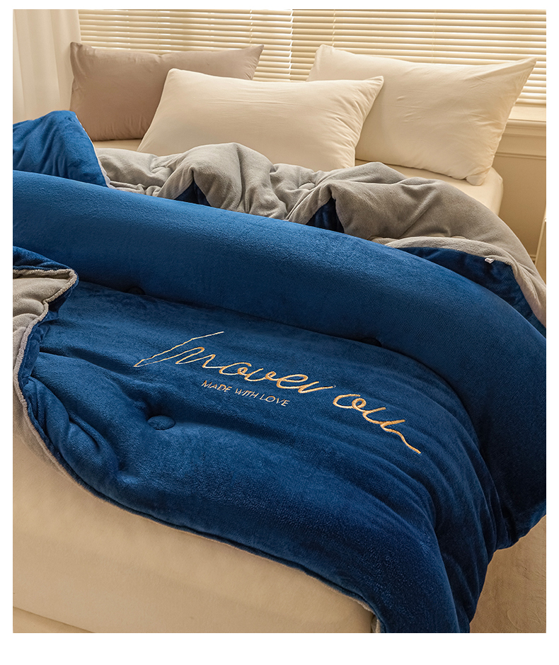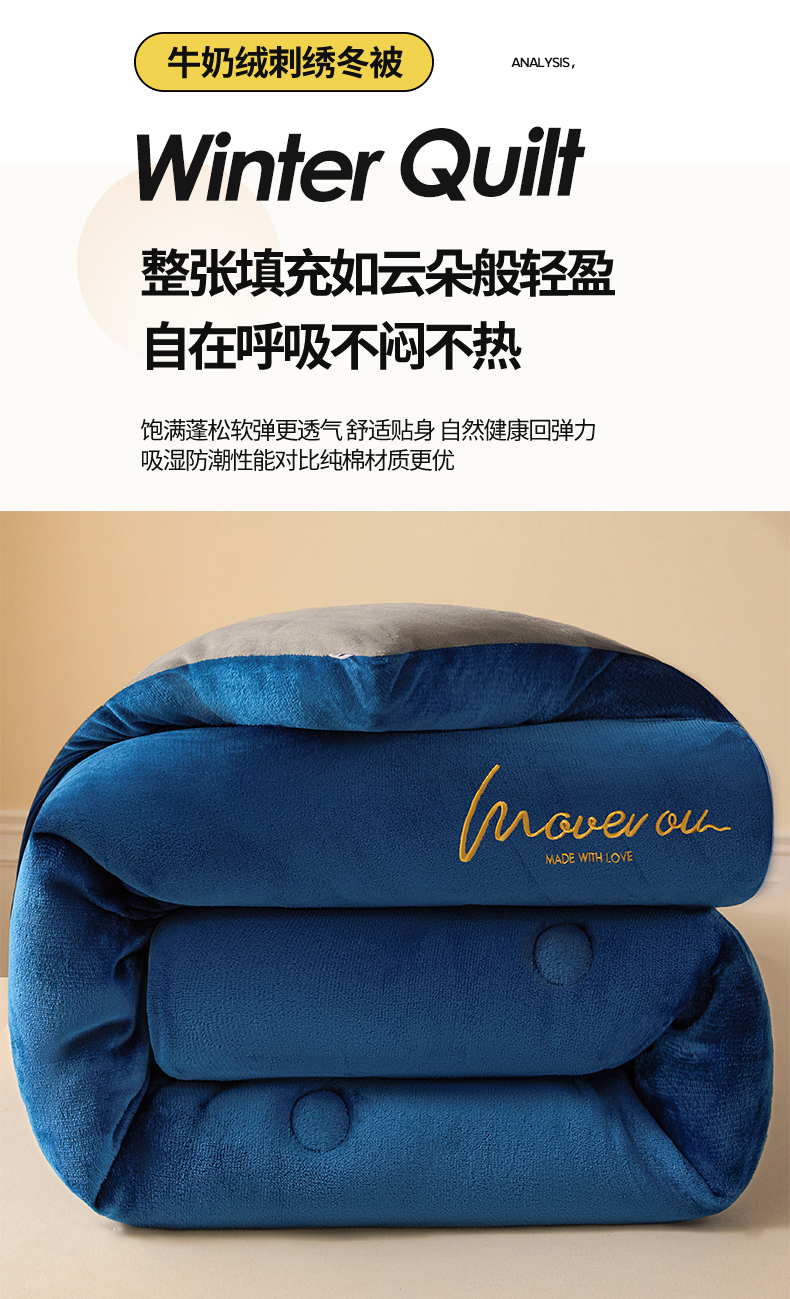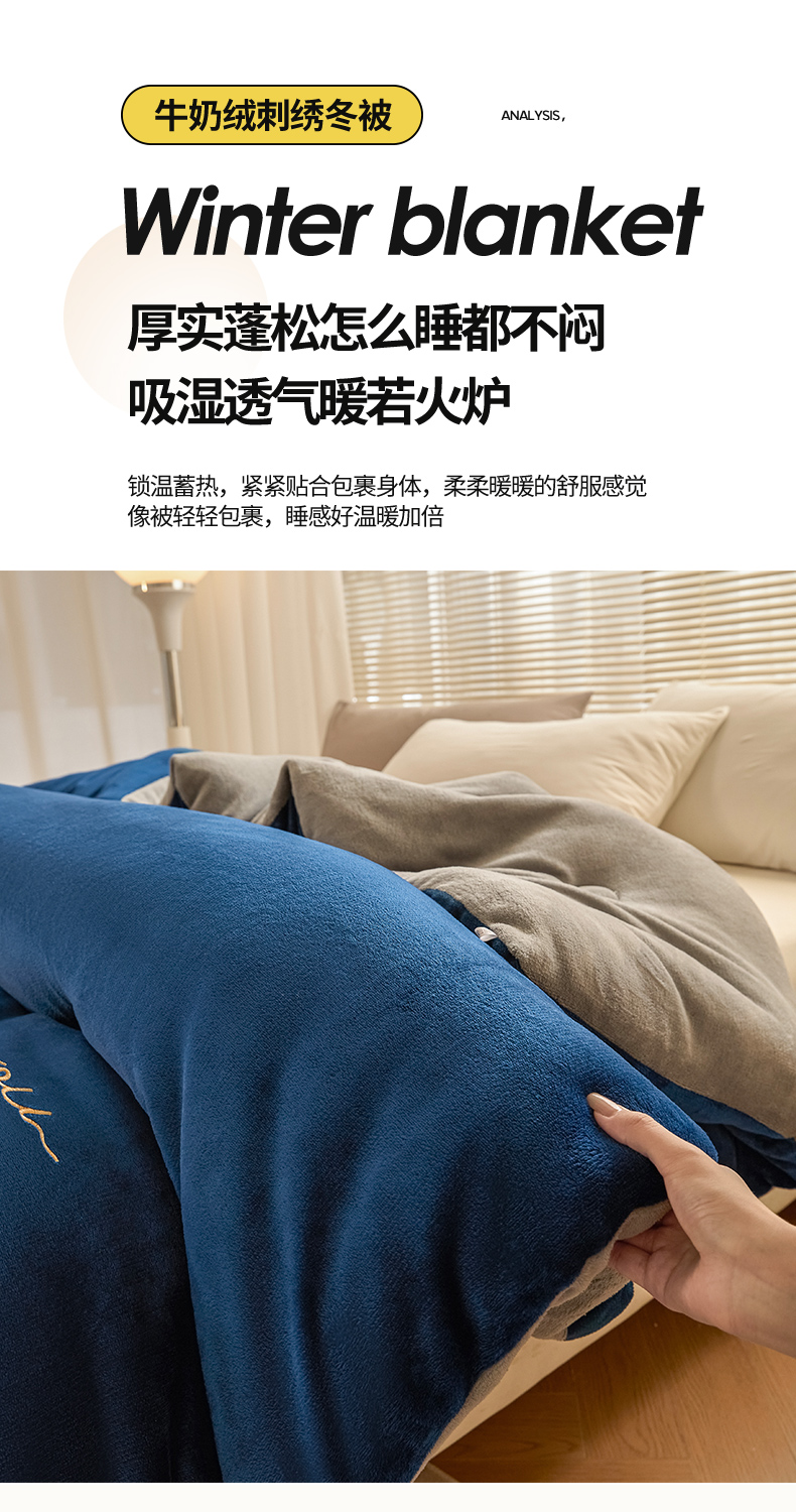 商品名称:暖芯家纺 2025新款双拼色绣花牛奶绒冬被被子被芯 宝石蓝