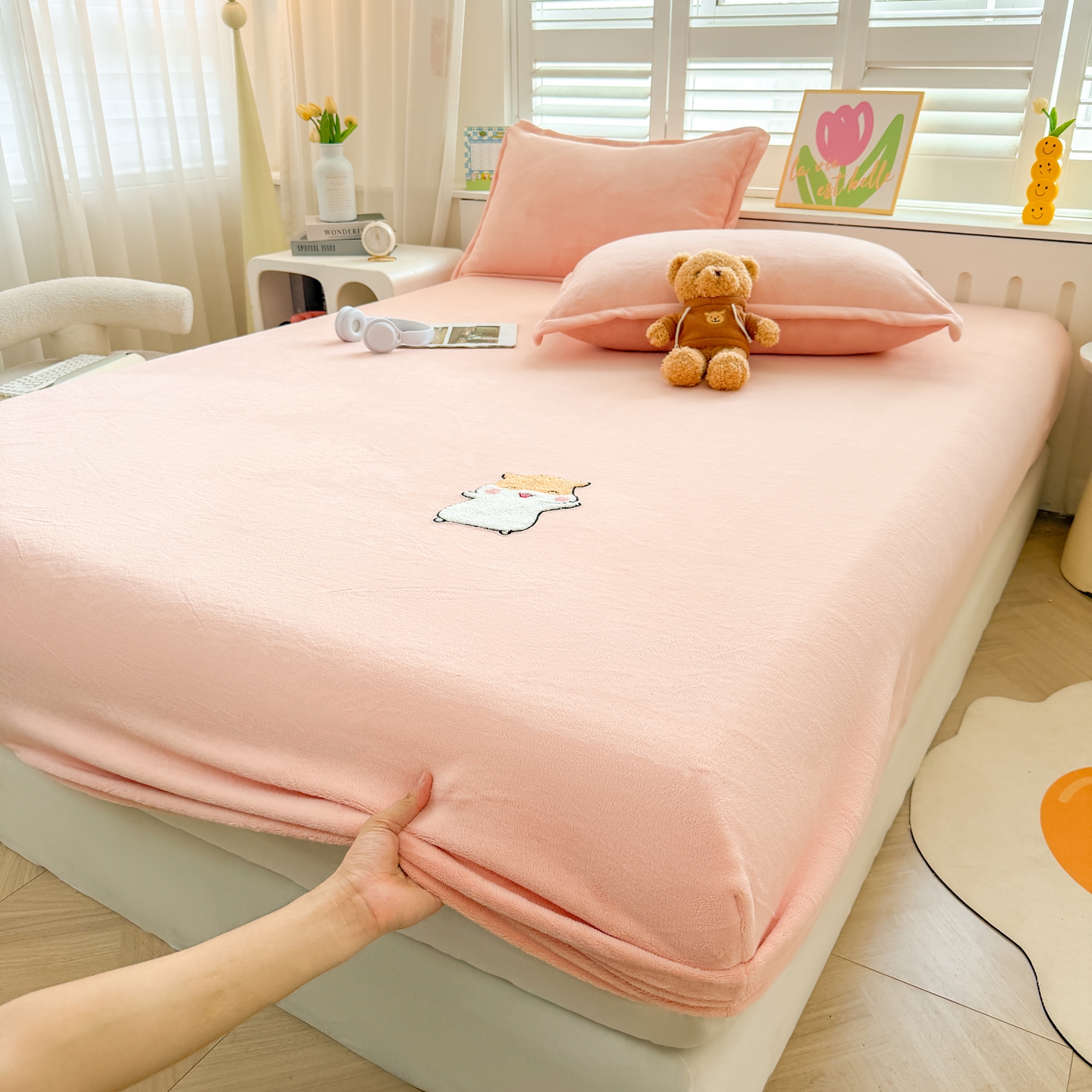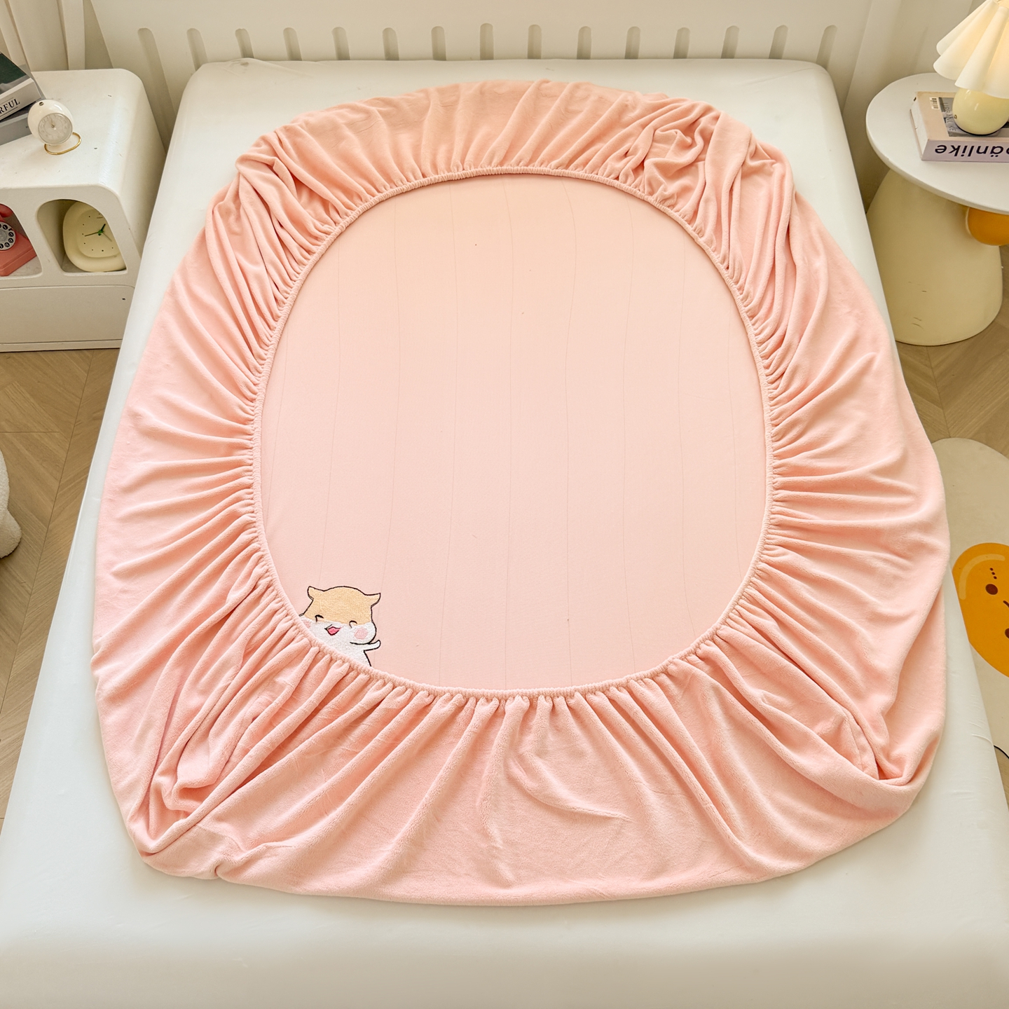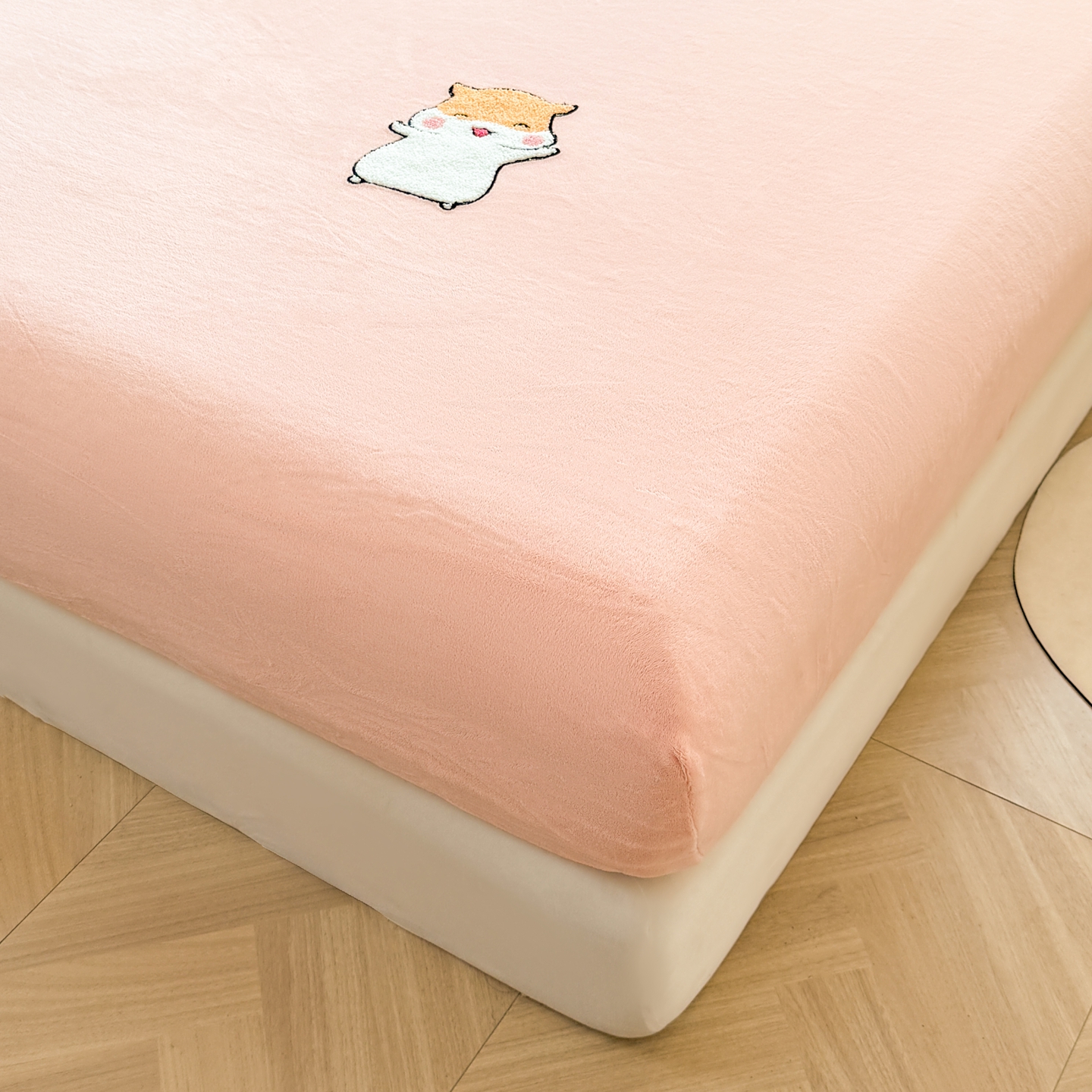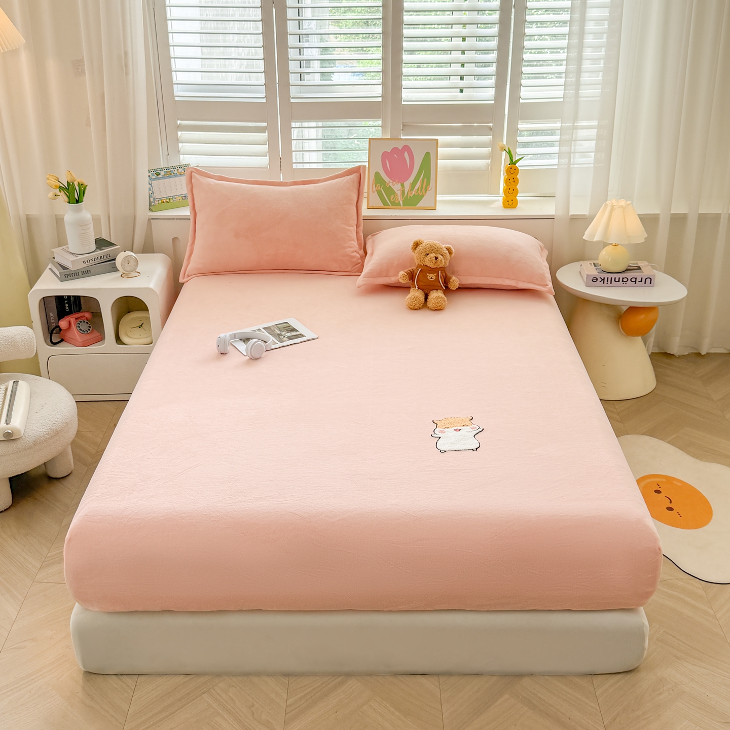 湘之帛 2025新款牛奶绒印花床笠 小松鼠-粉色