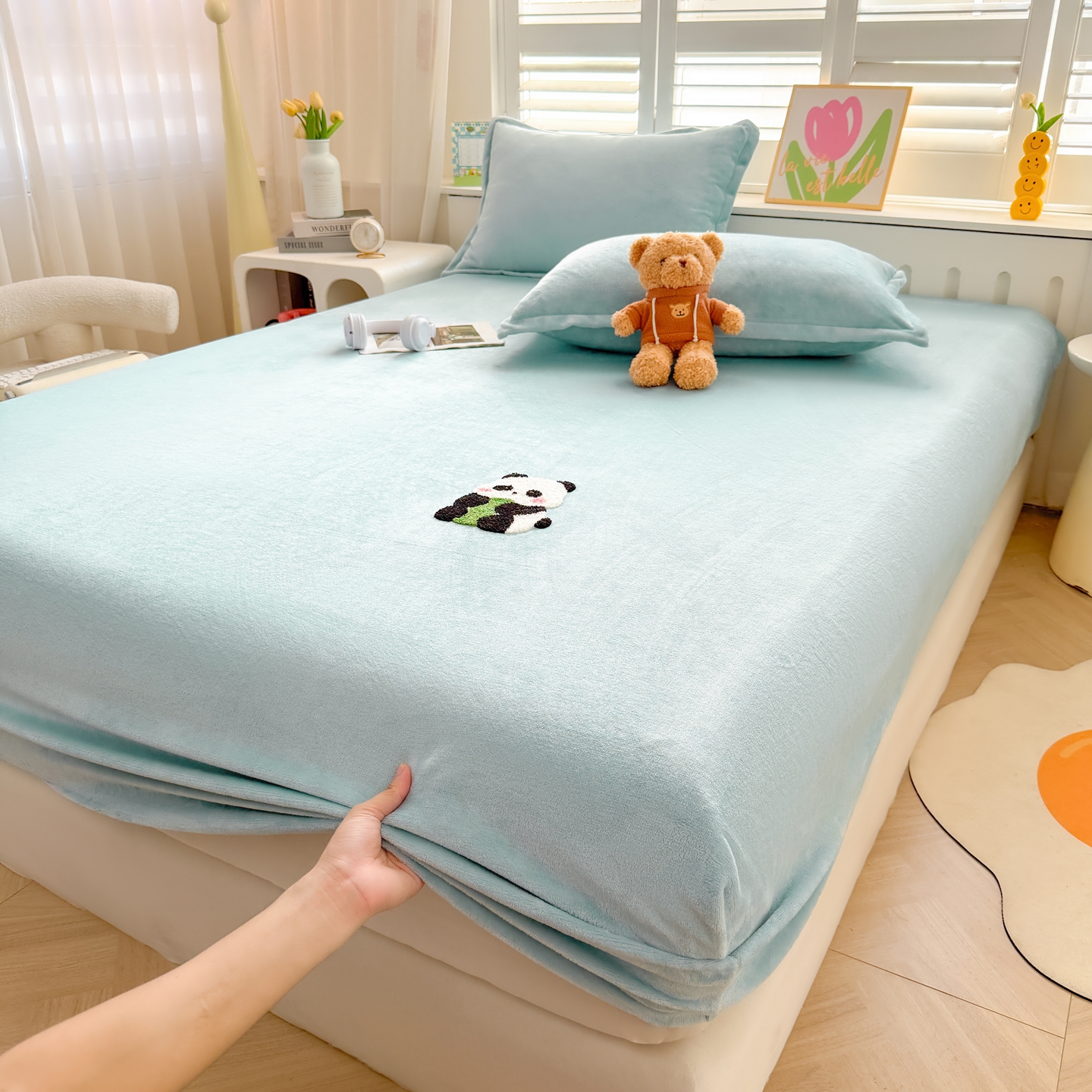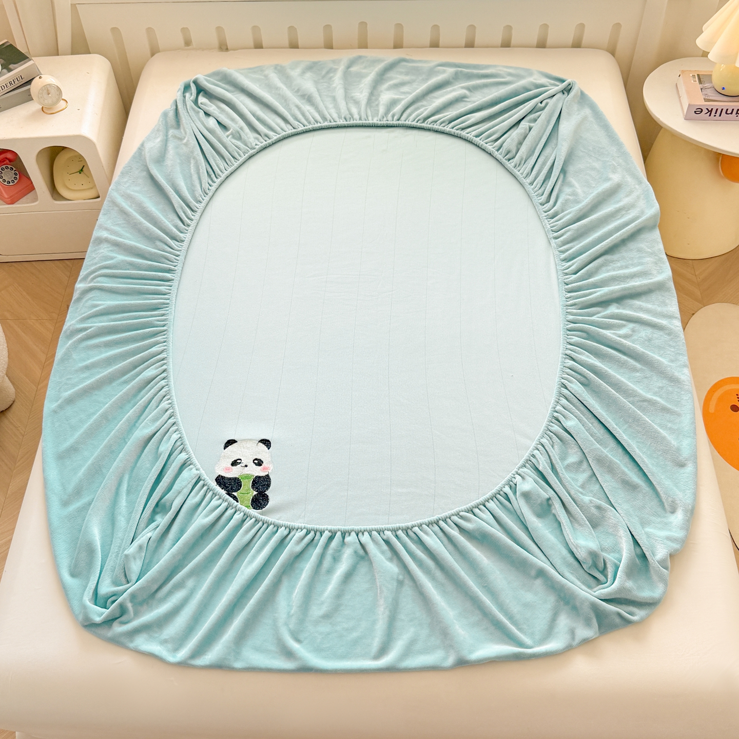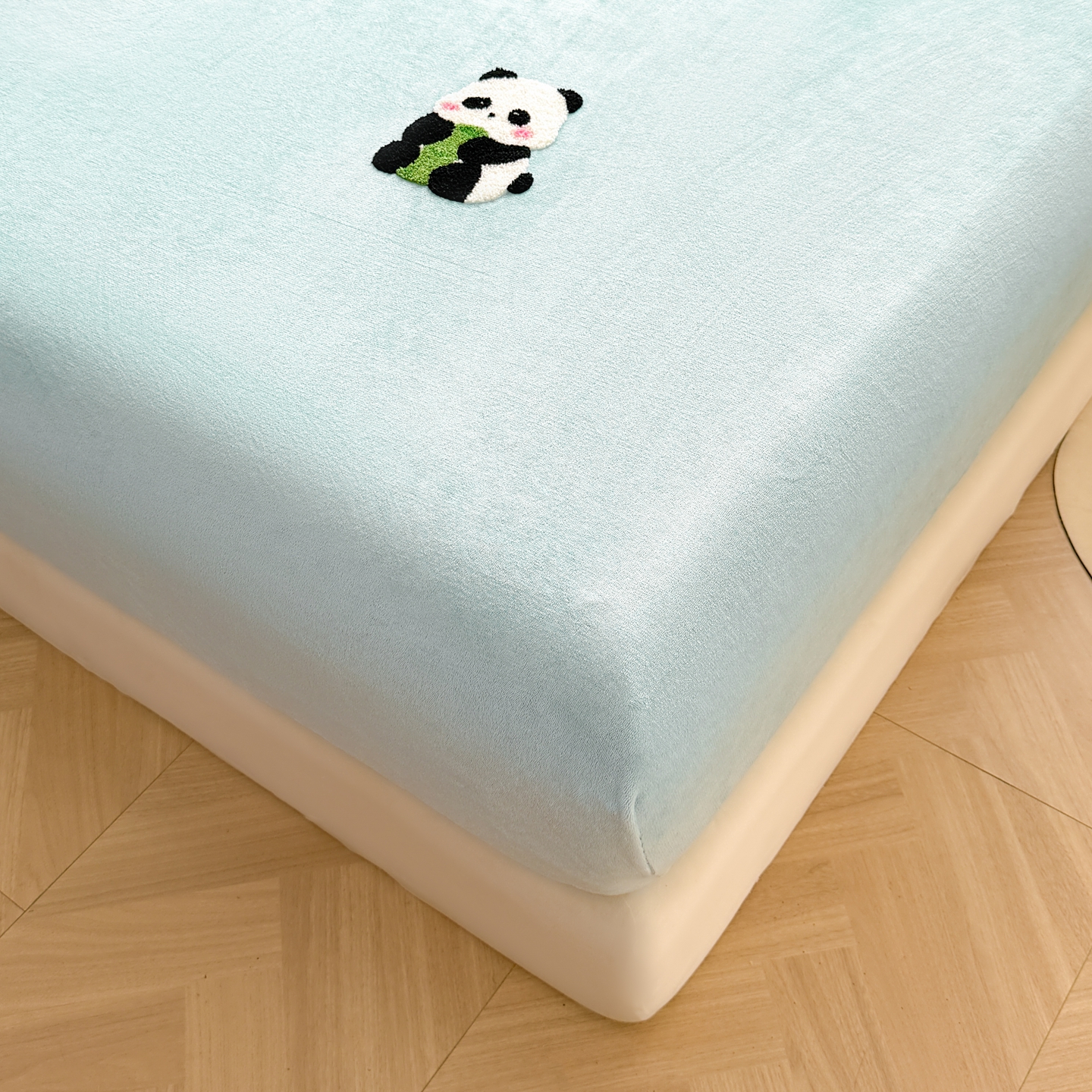 湘之帛 2025新款牛奶绒印花床笠 小熊猫-浅蓝