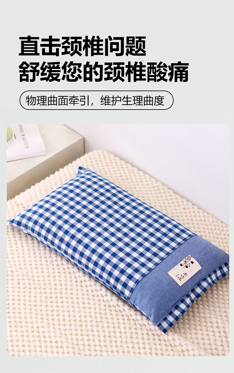商品名称:大熊枕芯 2025新款全棉纯棉水洗棉小方格荞麦枕枕头枕芯-水洗棉小方格 水洗棉小方格-深蓝
