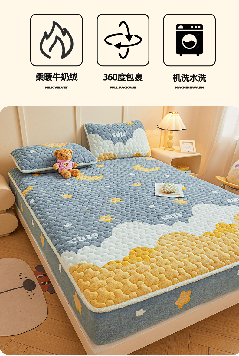 当前位置: 91家纺网 > 商品网购 > 床上用品 > 床垫套 > 雯豆家纺 2025新款牛奶绒夹棉床笠印花款床垫保护套秋冬保暖床罩 牛奶绒夹棉床笠-筑梦星空