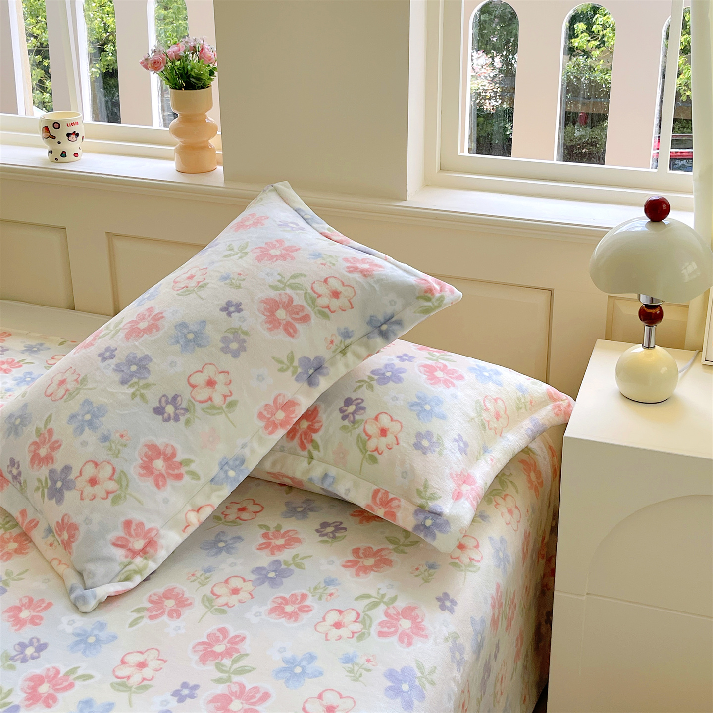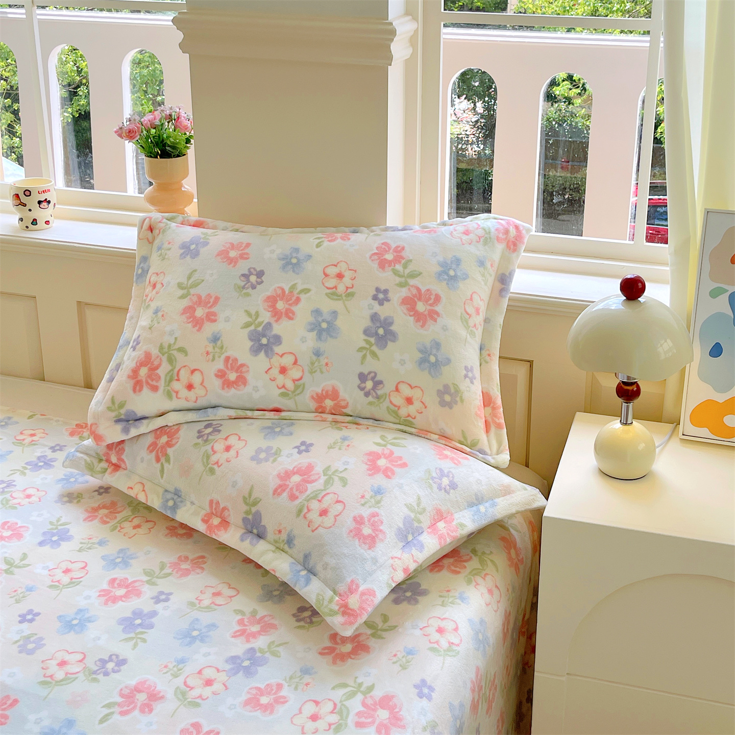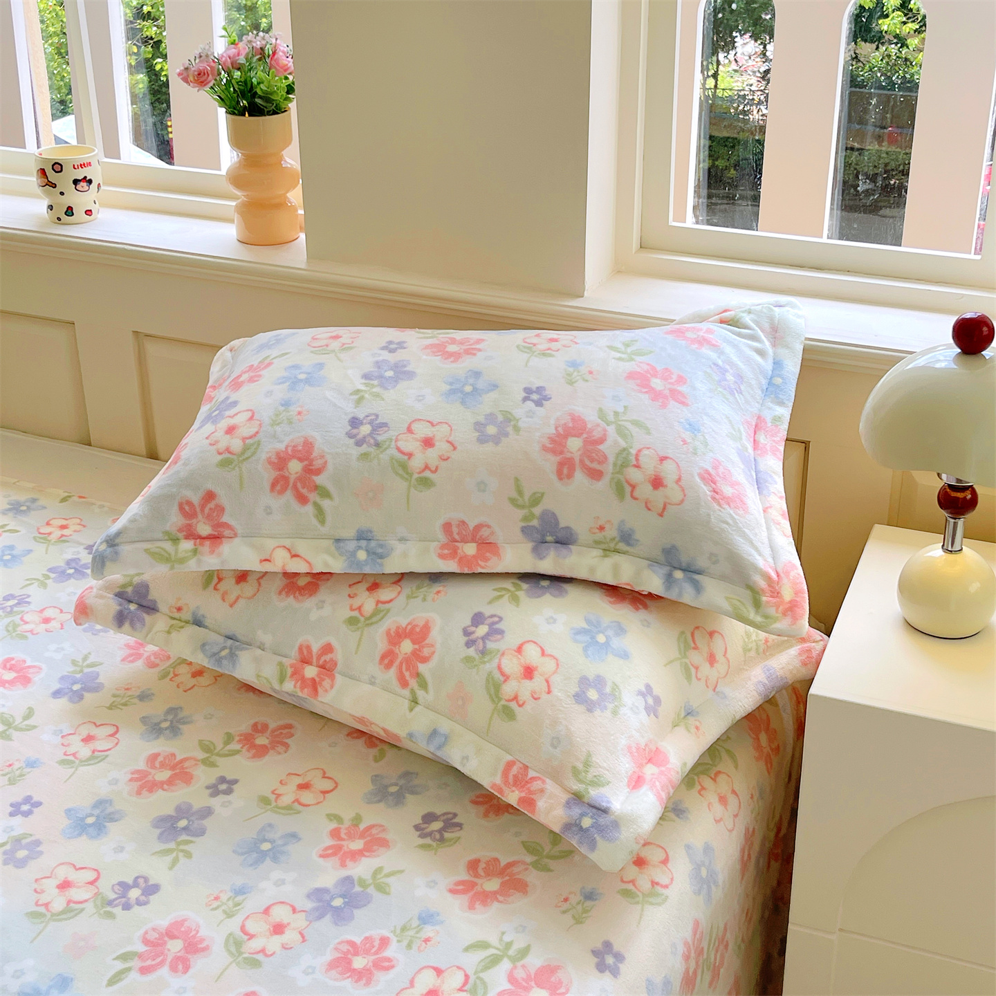 凯儿家纺 2025新款A类加厚高克重印花牛奶绒单枕套 花在云端