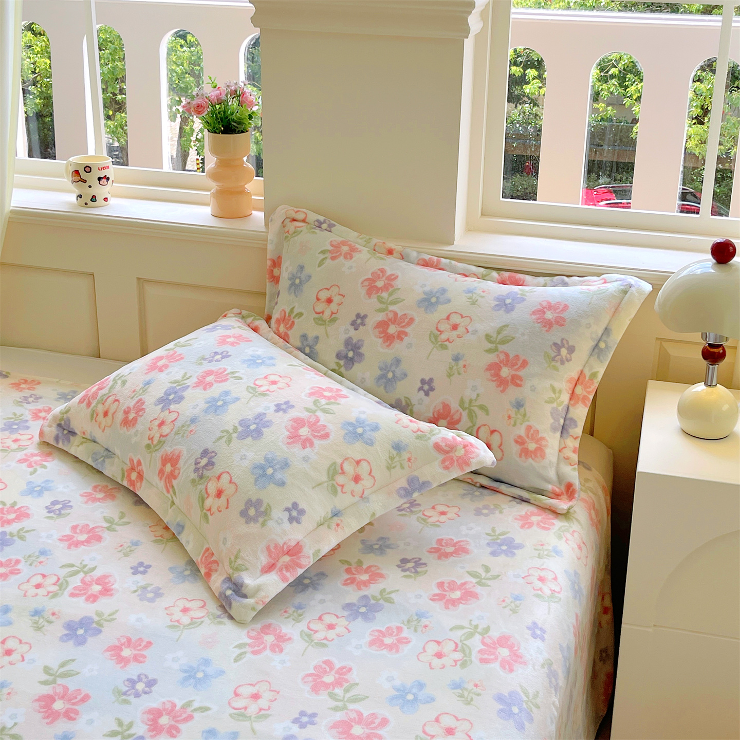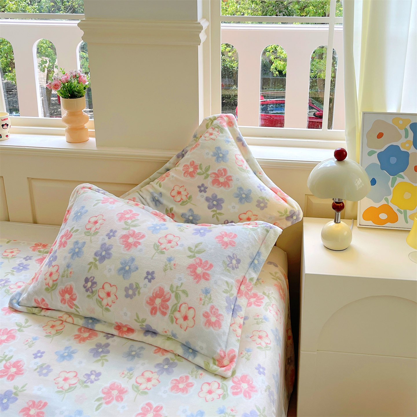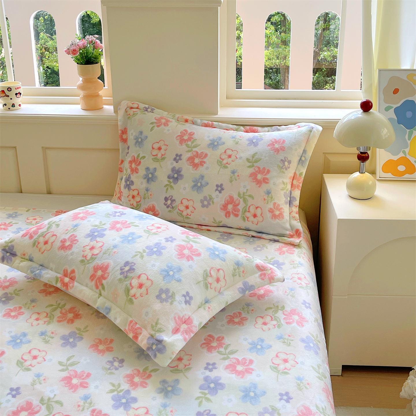 凯儿家纺 2025新款A类加厚高克重印花牛奶绒单枕套 花在云端