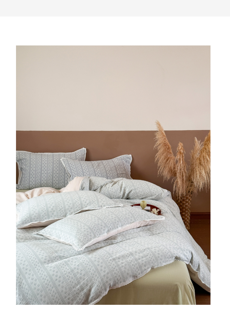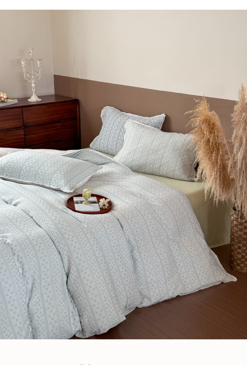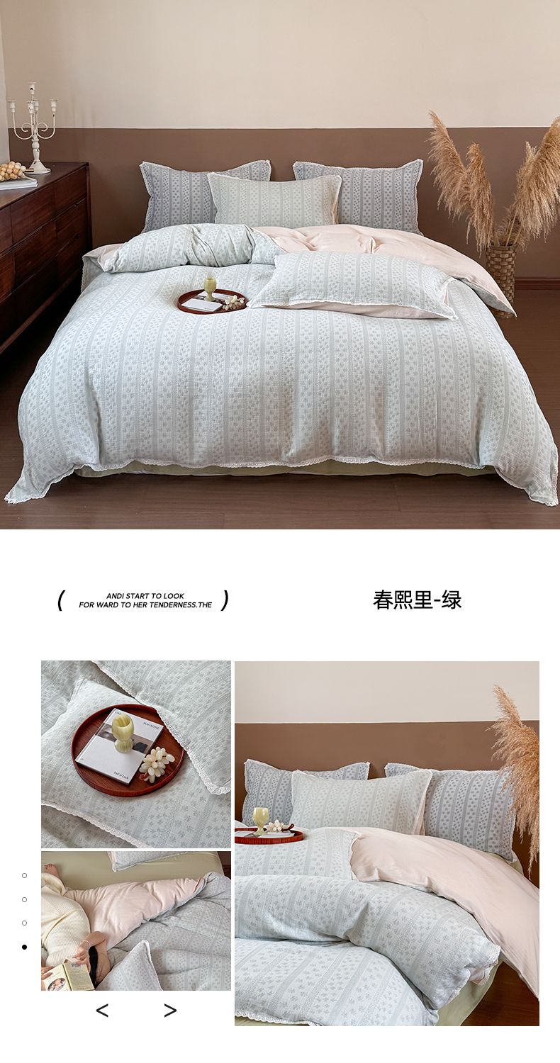 商品名称:玛奇朵 2025新品文艺清新色织双层皱皱纱四件套-春熙里系列 春熙里-绿