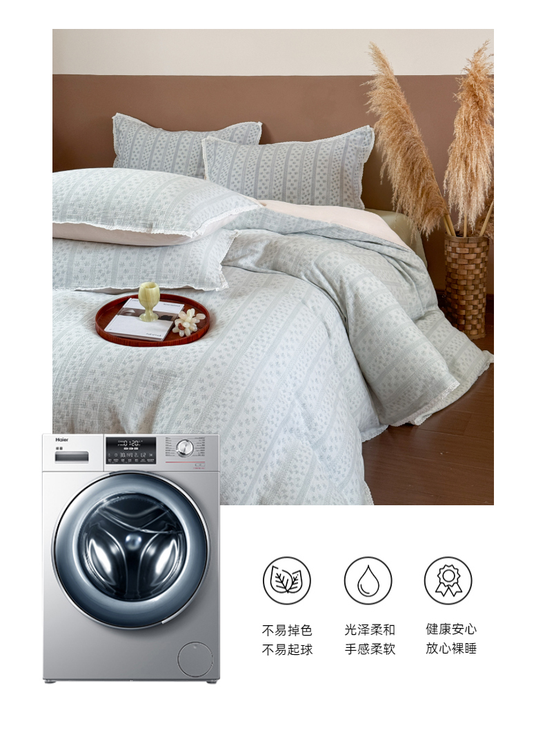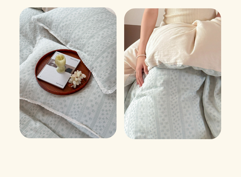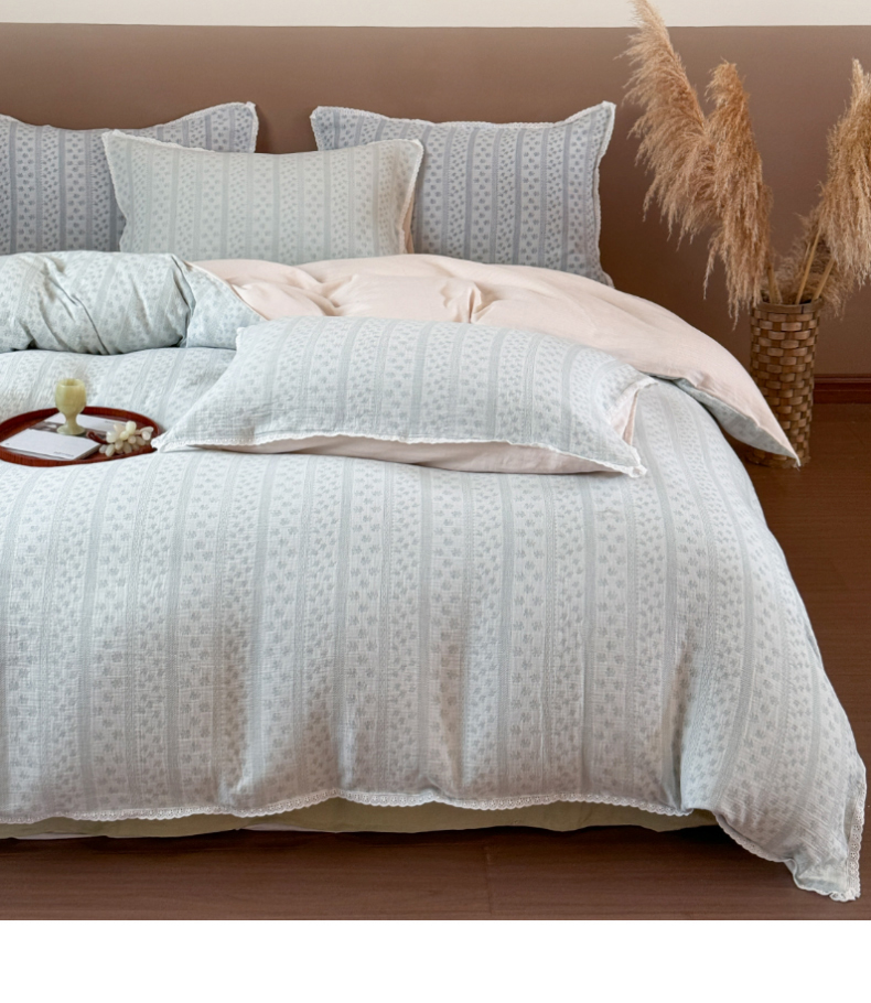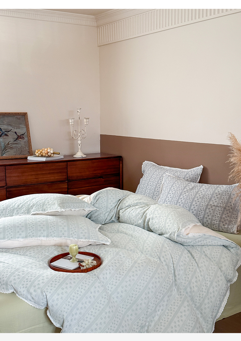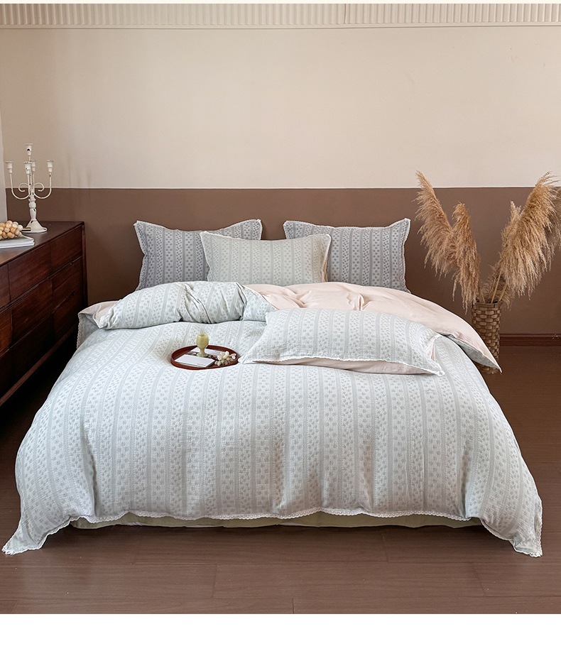 商品名称:玛奇朵 2025新品文艺清新色织双层皱皱纱四件套-春熙里系列 春熙里-绿