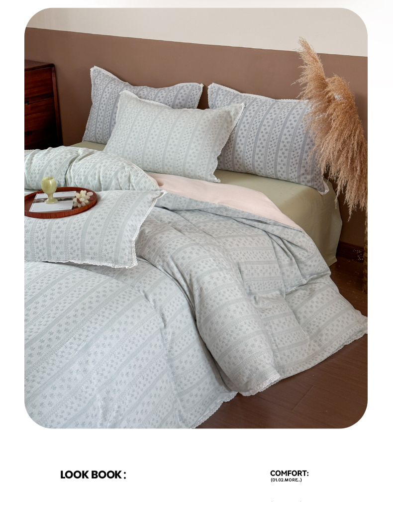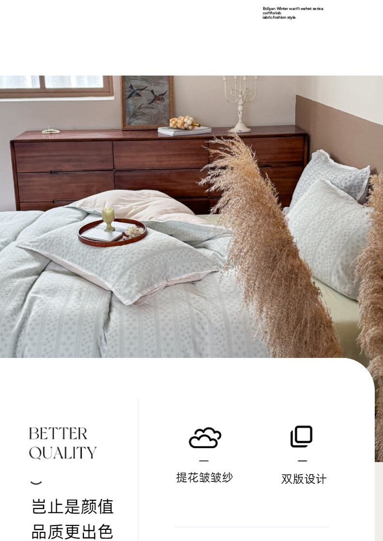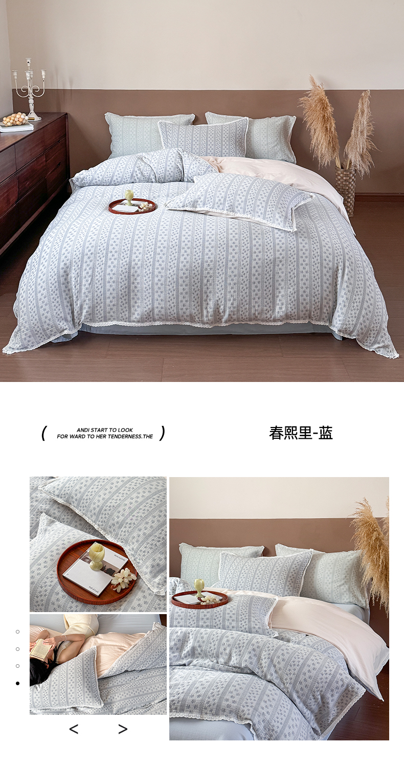 (总)玛奇朵 2025秋冬新品韩国色织A类三层皱皱纱系列四件套,山屿,时序,巷往