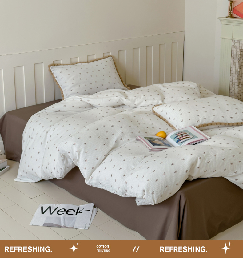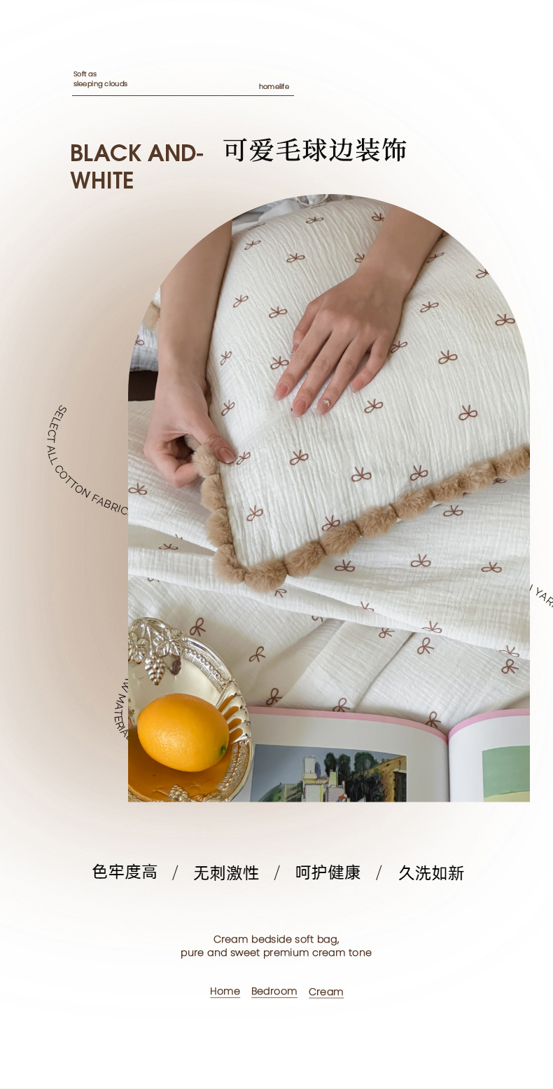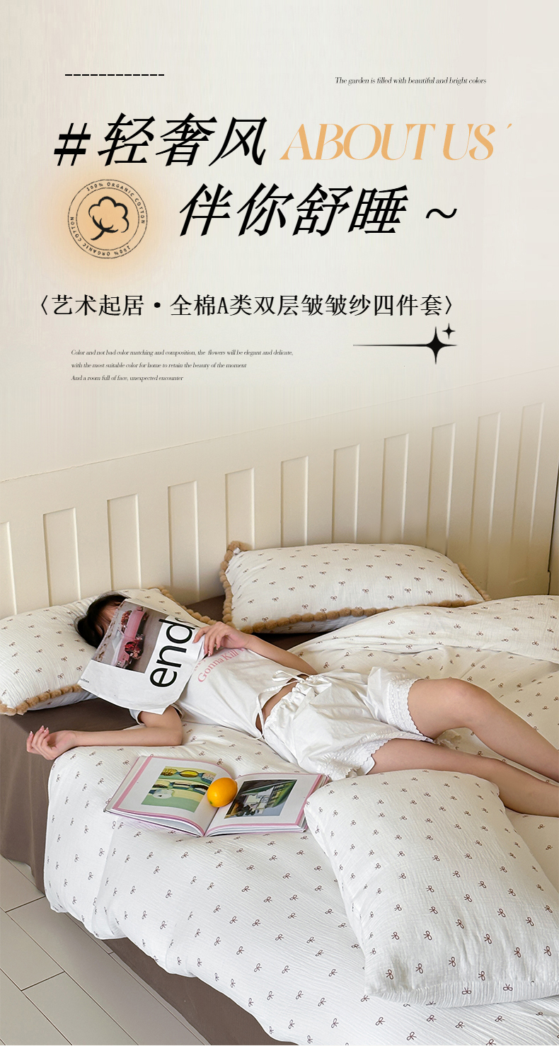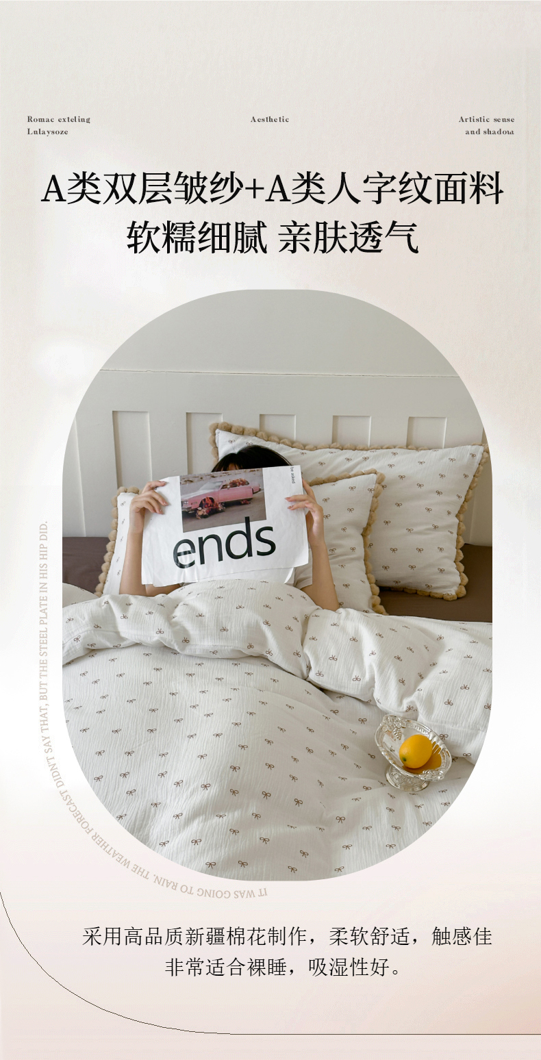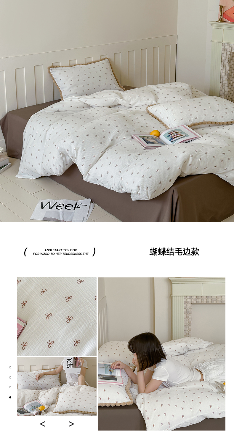 商品名称:玛奇朵 2025新品全棉A类双层皱皱纱四件套-蝴蝶结系列 蝴蝶结常规款