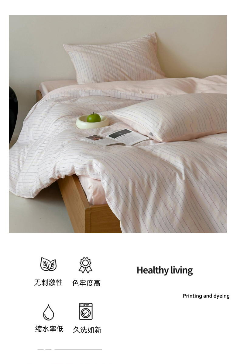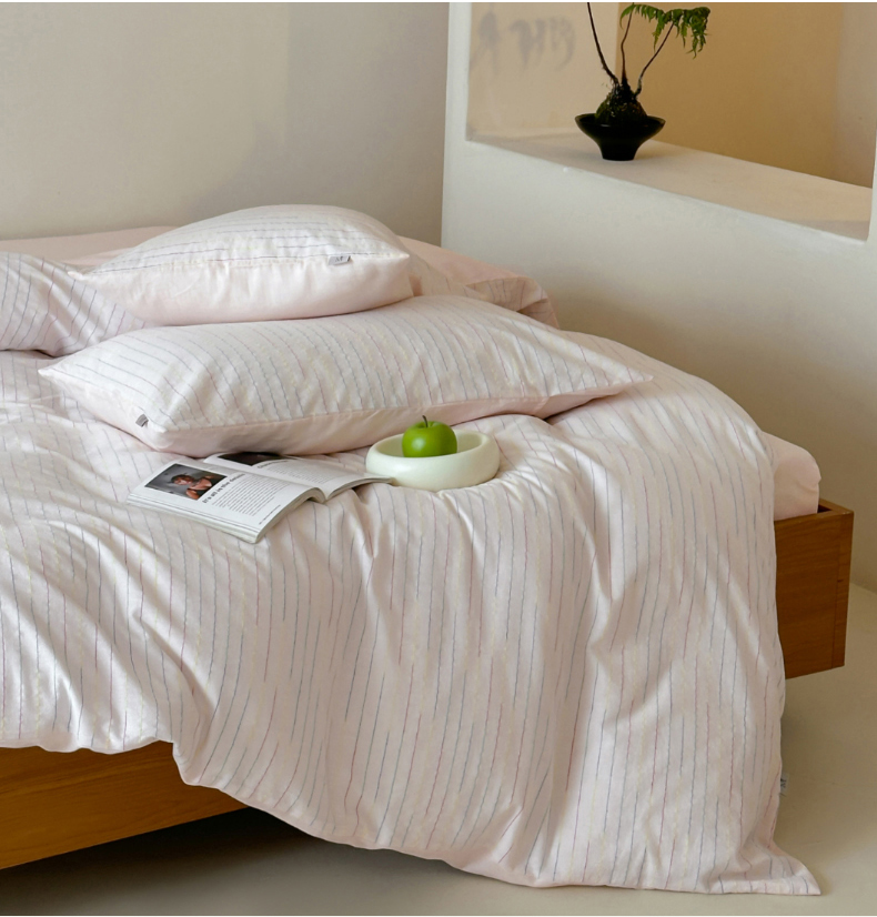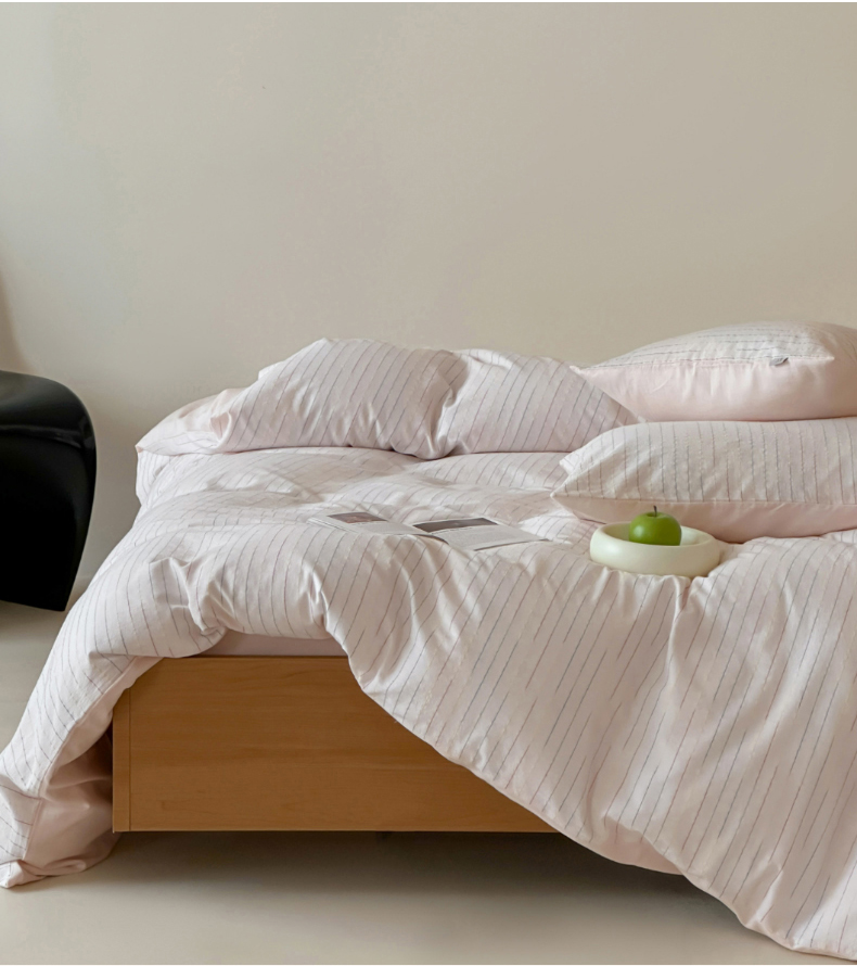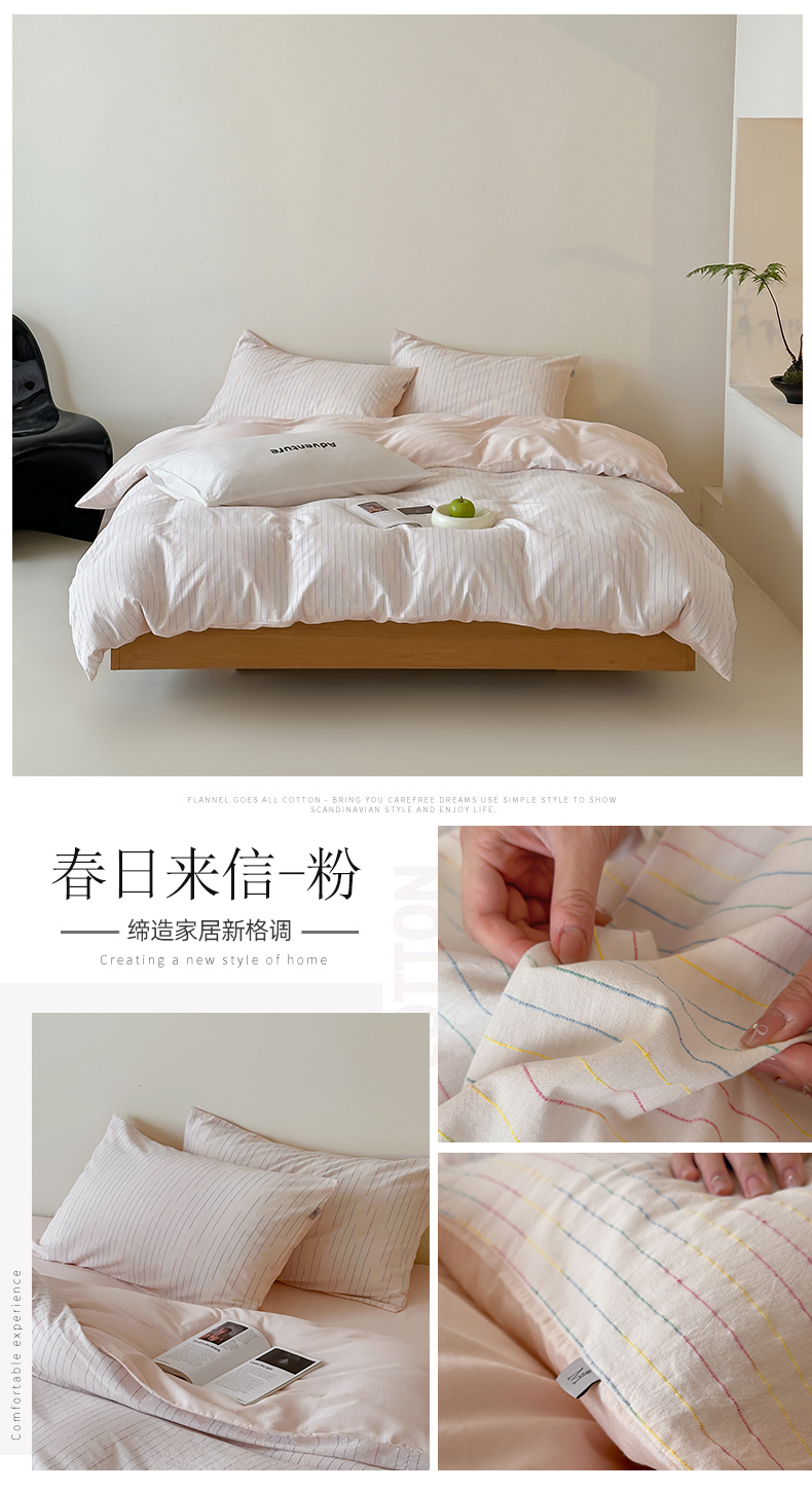 商品名称:玛奇朵 2025新品全棉水洗棉彩纱段染提花四件套-春日来信 春日来信-粉