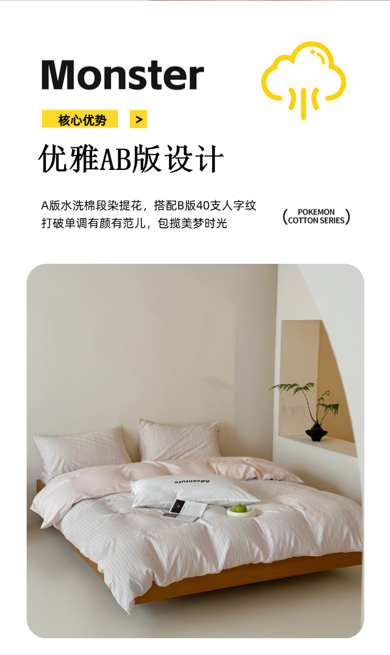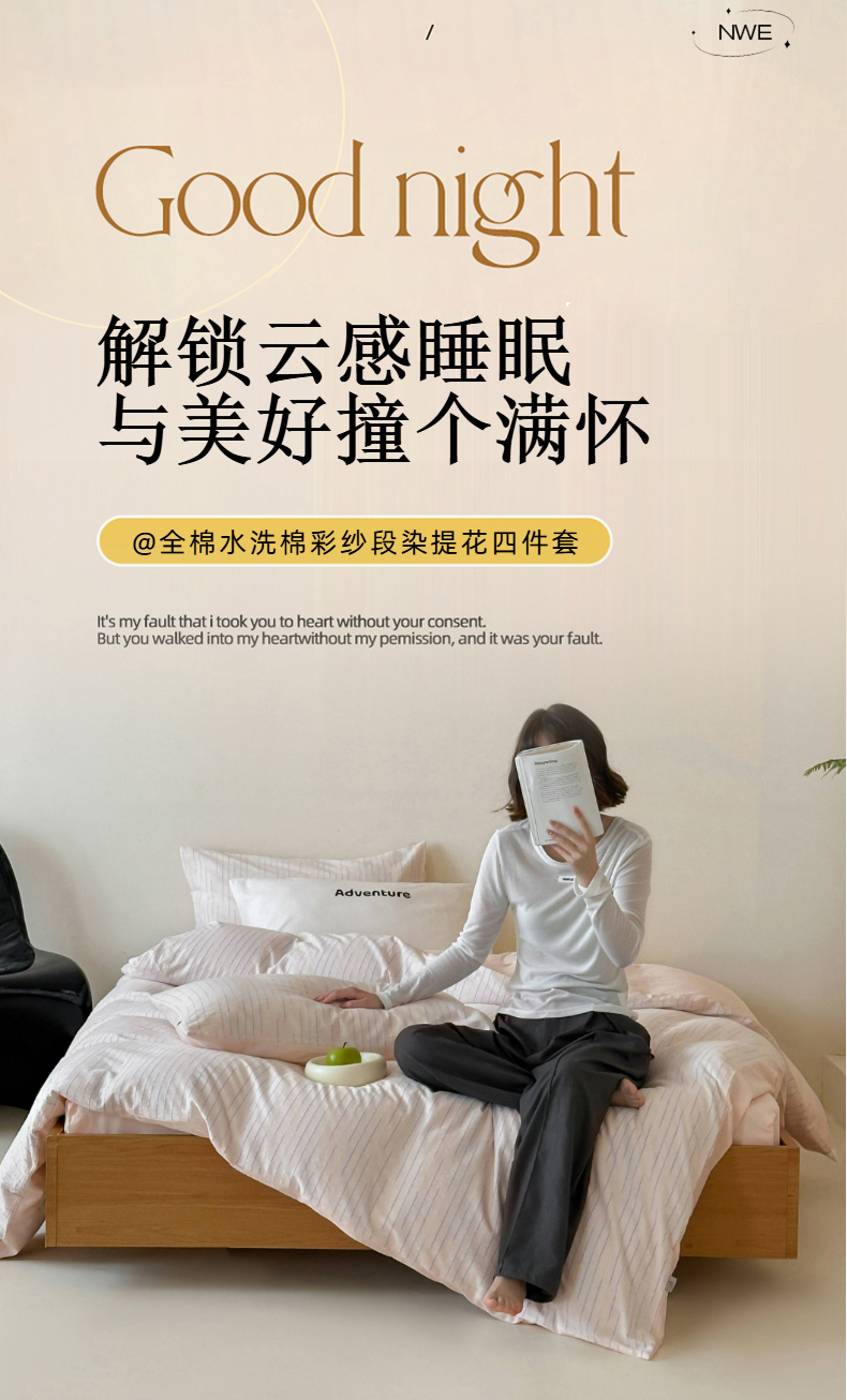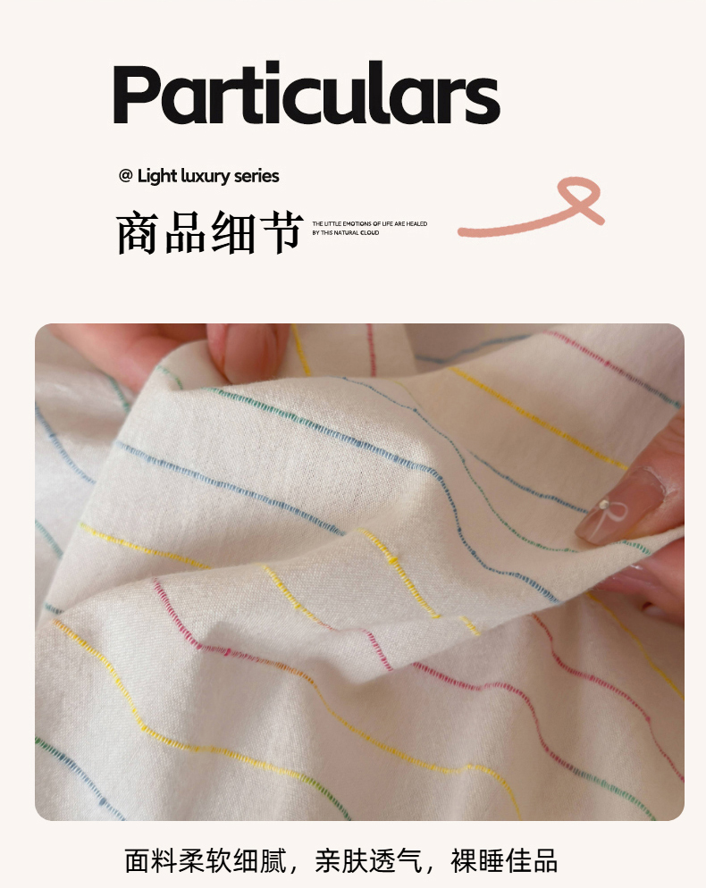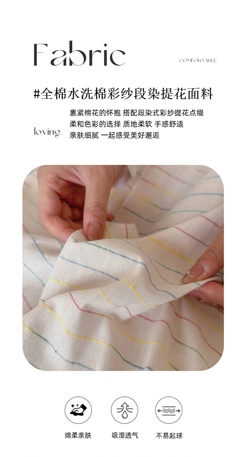 商品名称:玛奇朵 2025新品全棉水洗棉彩纱段染提花四件套-春日来信 春日来信-粉