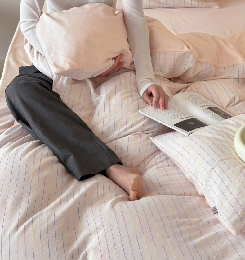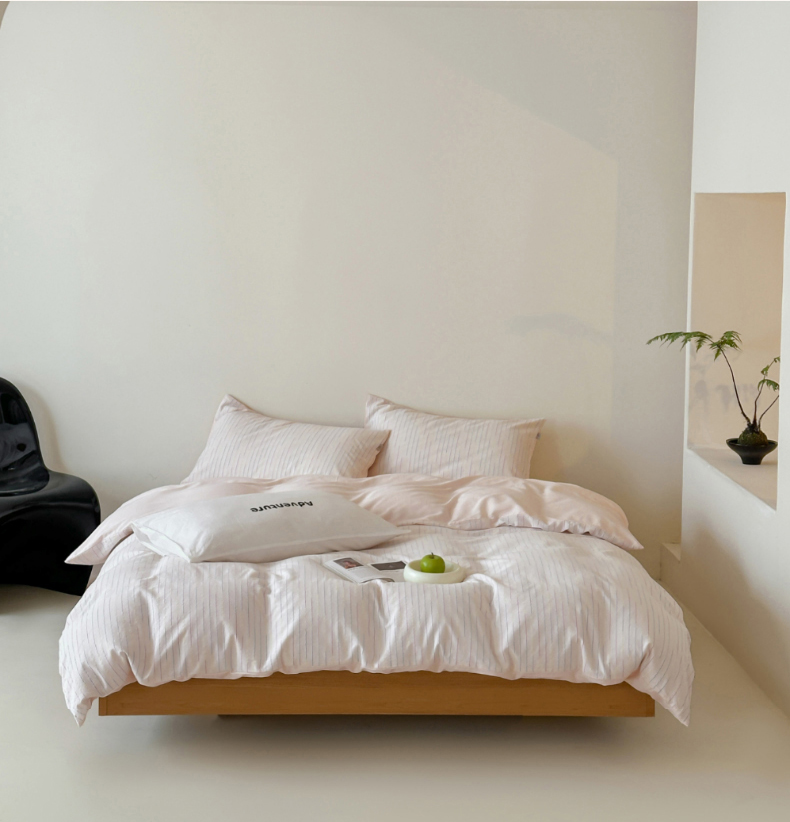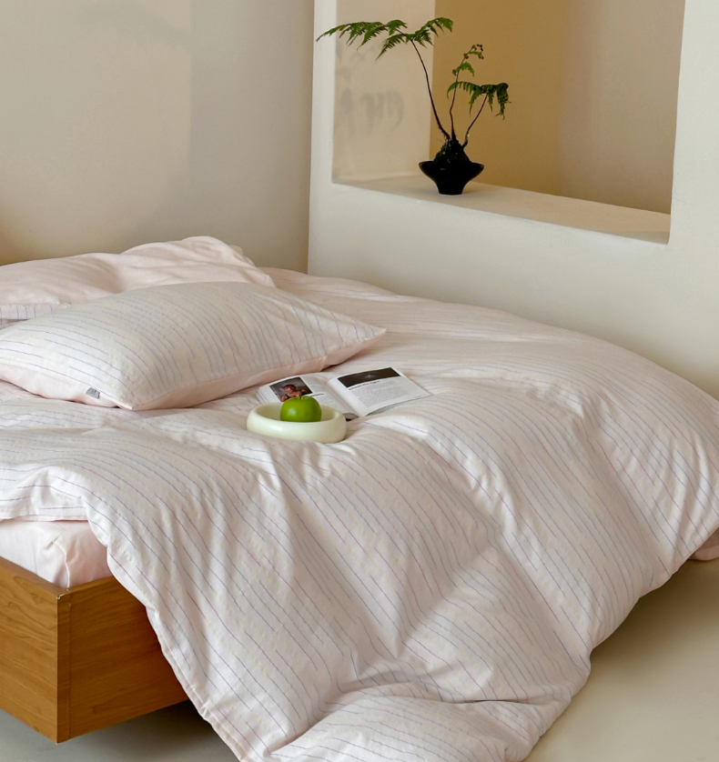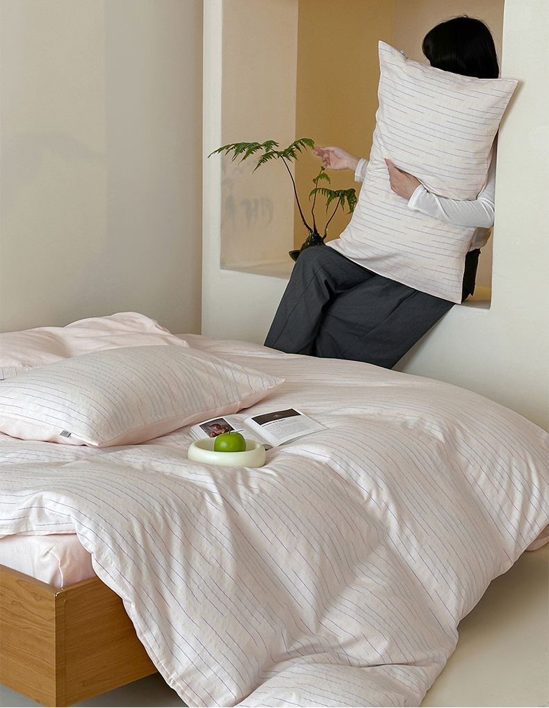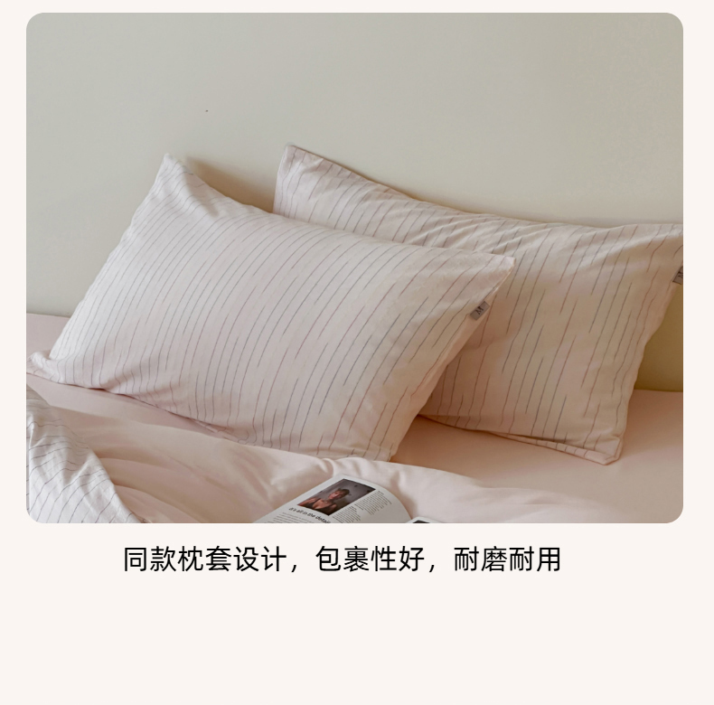 (总)玛奇朵 2025新款棉麻色织条纹系列四件套-南坪晚风,南坪晚风-粉色床单,南坪晚风-咖色床单