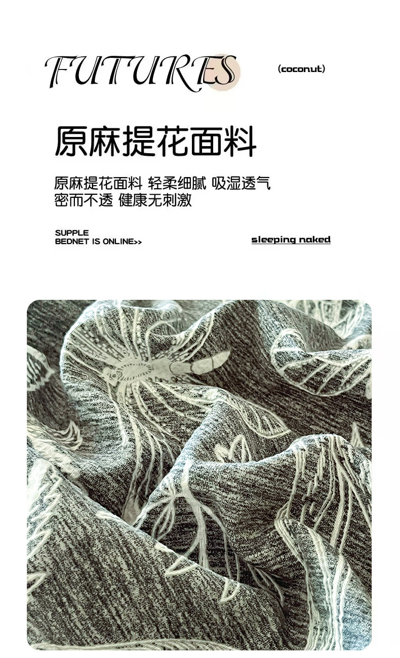 商品名称:斯卡诺家纺 2026新款原麻亚麻皱皱纱四件套水洗棉印花四件套 繁花似锦