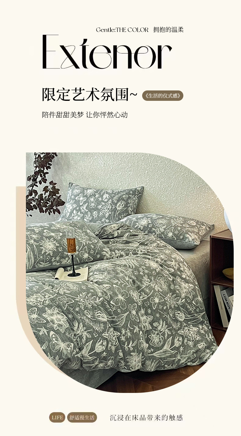 (总)2026春夏新款拼色提花双层纱古法水洗床盖四件套提花云感棉,啵啵熊,春暖花开,春暖花开粉,蝶梦成真,花开富贵,浪漫主义蓝,浪漫主义紫,蘑菇力,南瓜派灰,南瓜派咖,雅韵,雅韵紫