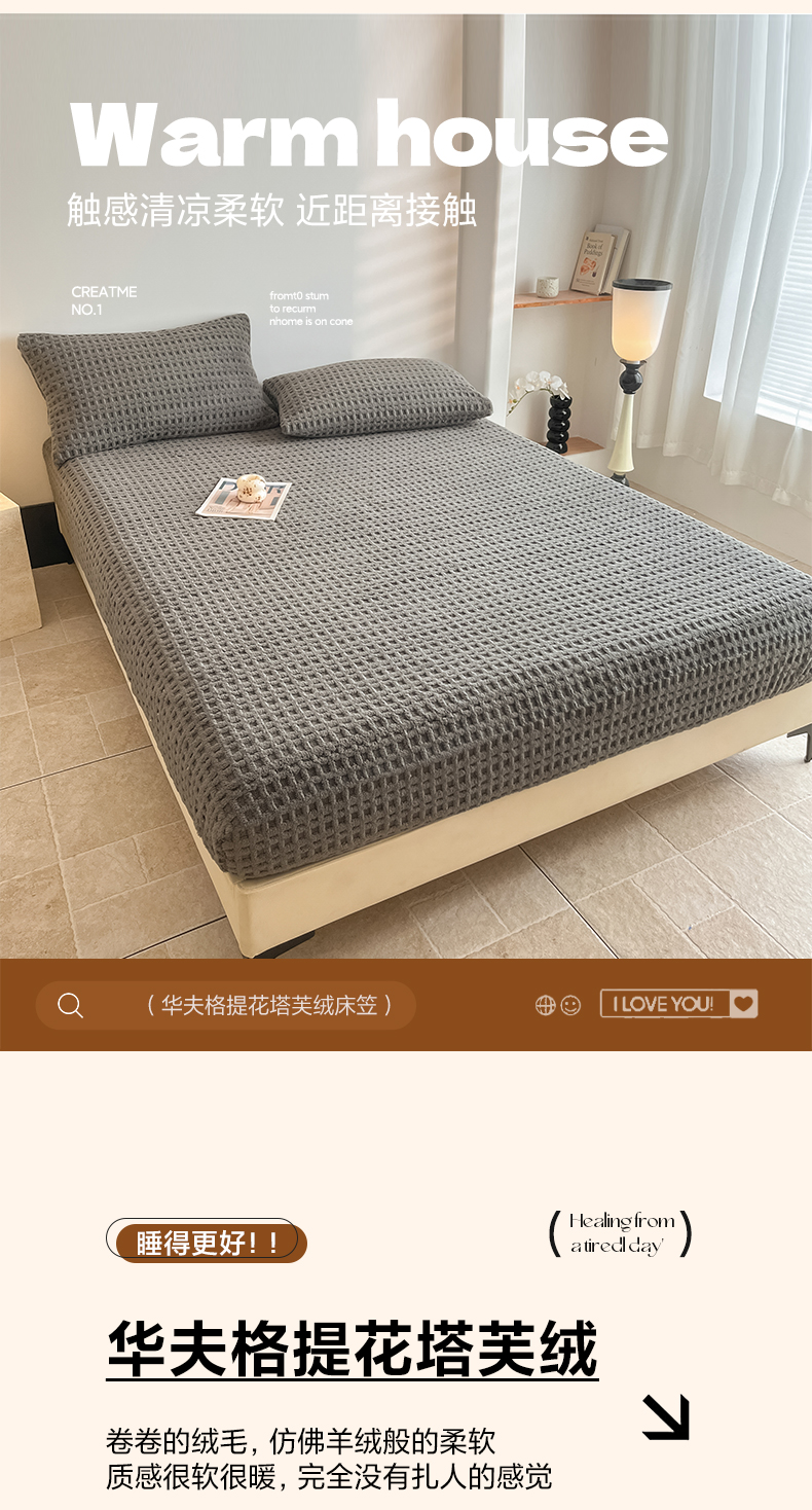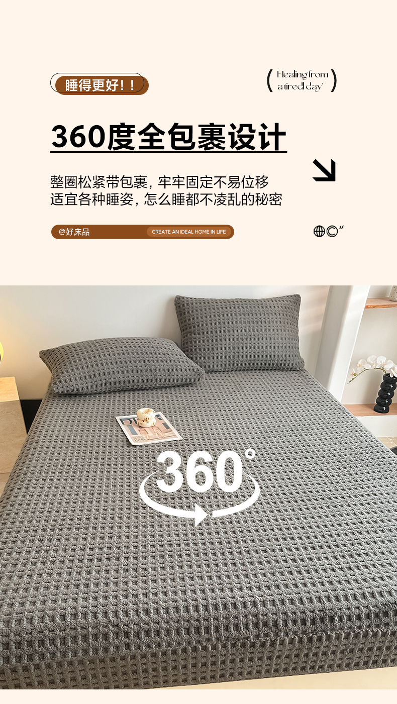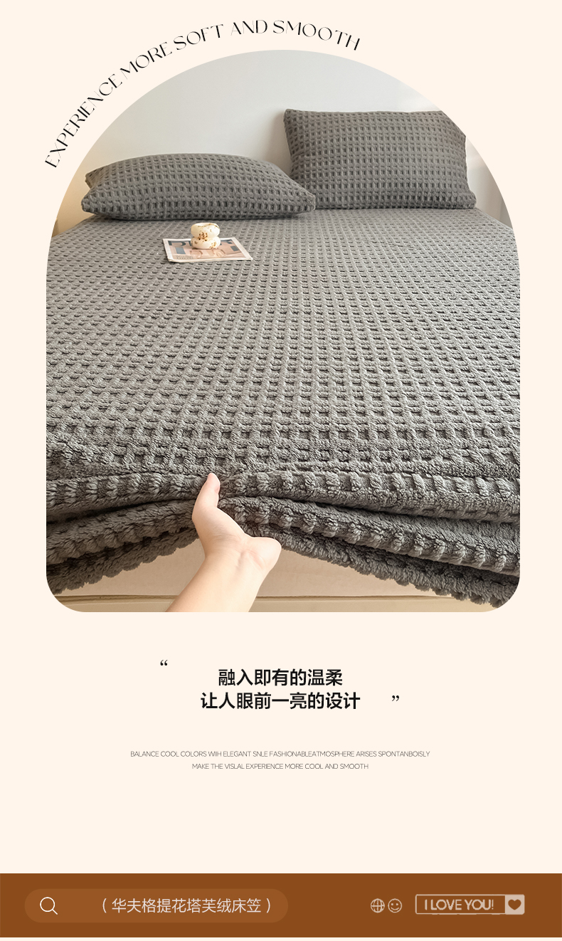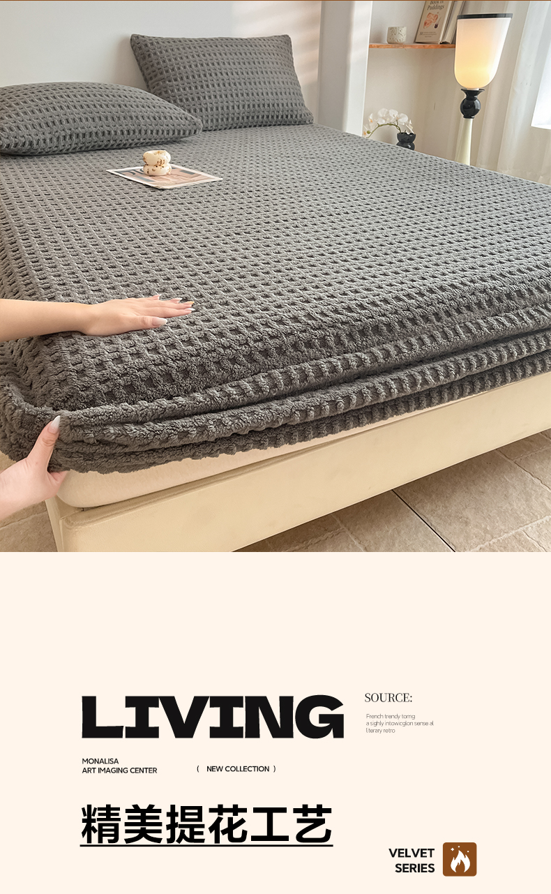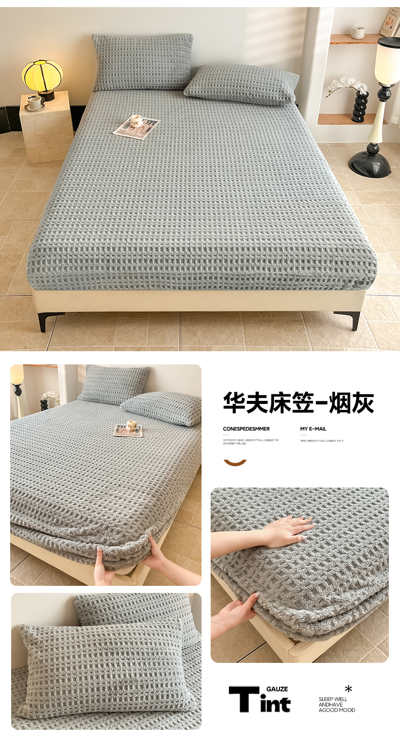 • 91家纺网 家纺一手货源 找家纺 欧邦 2025新款华夫格塔芙绒单床笠 床笠单件 华夫床笠-深灰