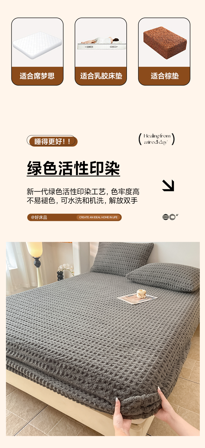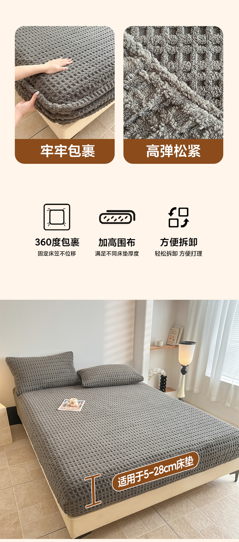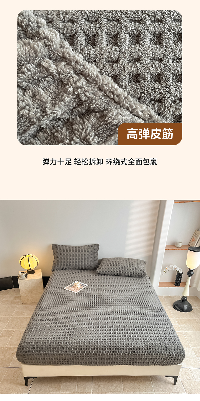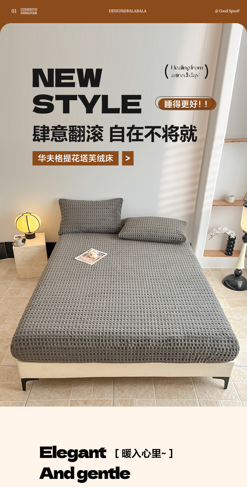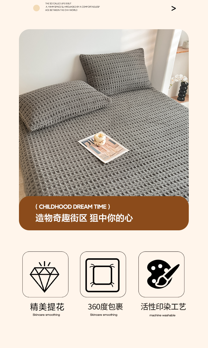 • 91家纺网 家纺一手货源 找家纺 欧邦 2025新款华夫格塔芙绒单床笠 床笠单件 华夫床笠-深灰