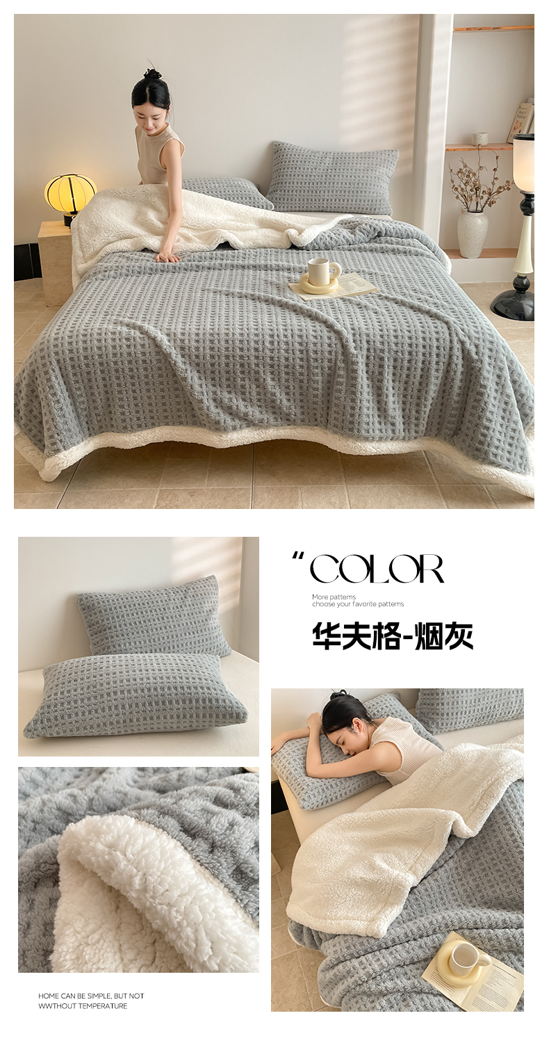 商品名称:欧邦 2025新款华夫格双层毯盖毯毯子-场景1 华夫格-雾蓝