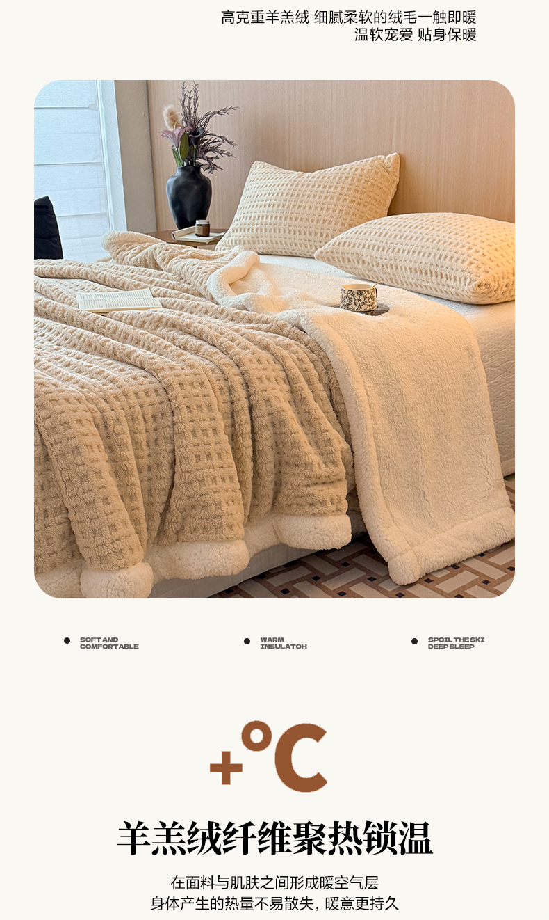 欧邦 2025新款华夫格羊羔绒双层毯盖毯毯子-场景2 华夫格-果绿